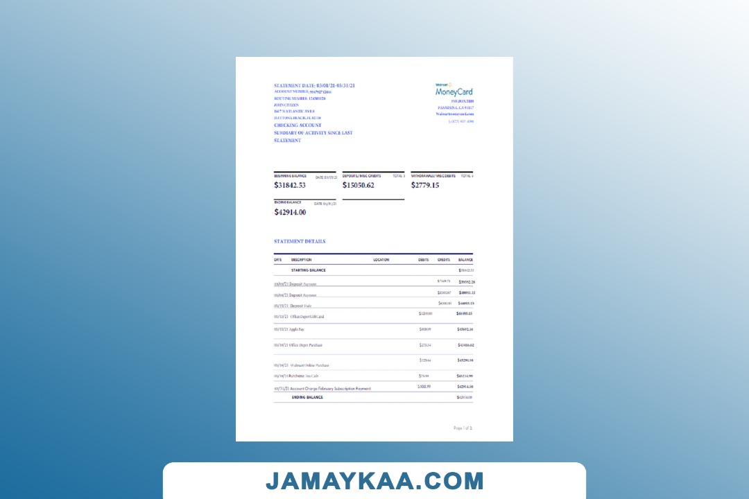USA WALMART MONEY CARD statement Word and PDF template, version 2