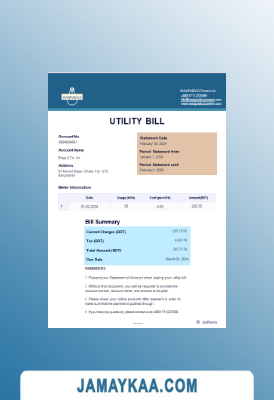 Dubai Natural Gas Company Limited (Dugas) business utility bill template