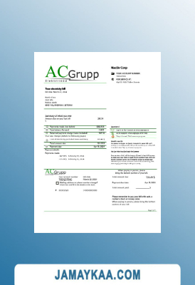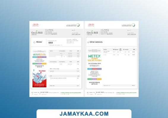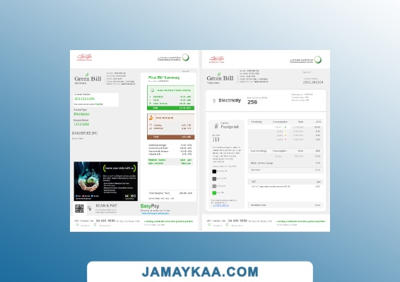 Arab Emirates Dubai Green business utility bill template in Word and PDF