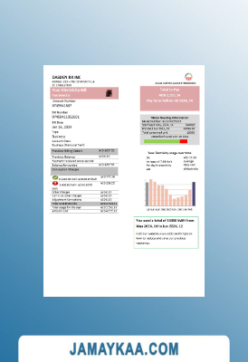 California PG&E (Pacific Gas and Electric Company) business utility bill