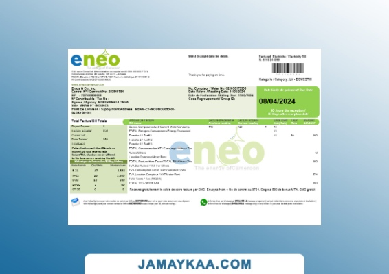 قالب فاتورة الكهرباء التجارية - ENEO الكاميرون (وورد)