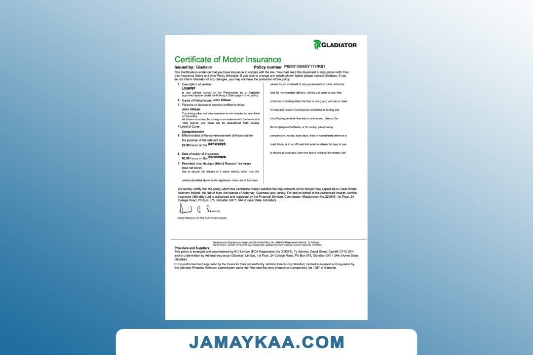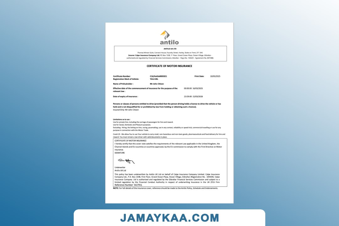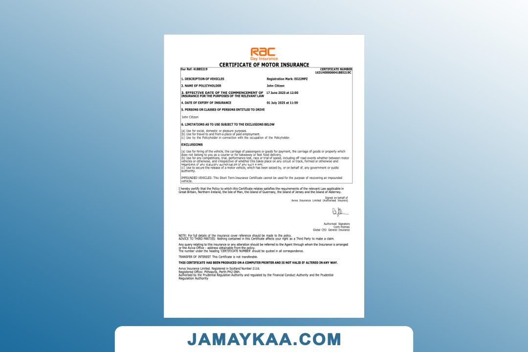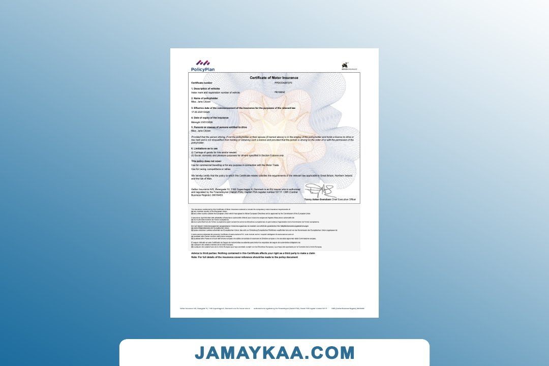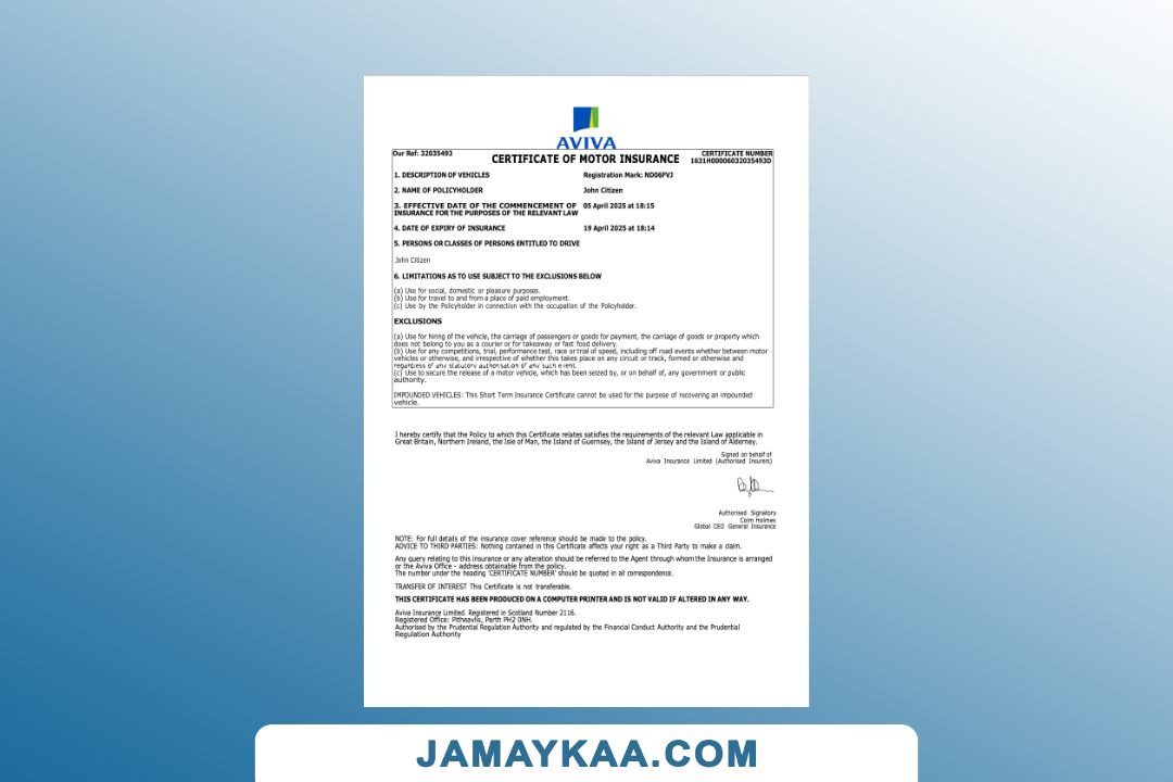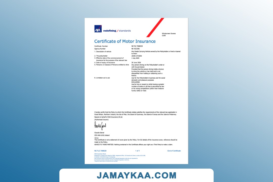 Insurance Company Europe Limited certificate of motor insurance Word and