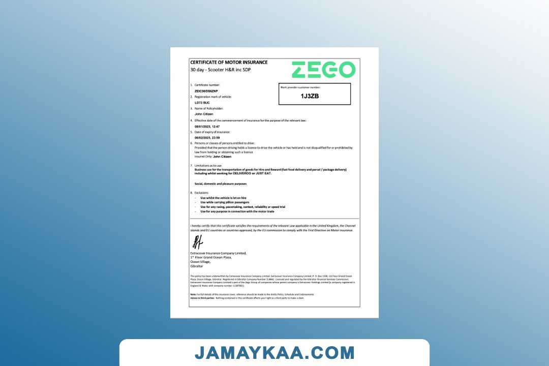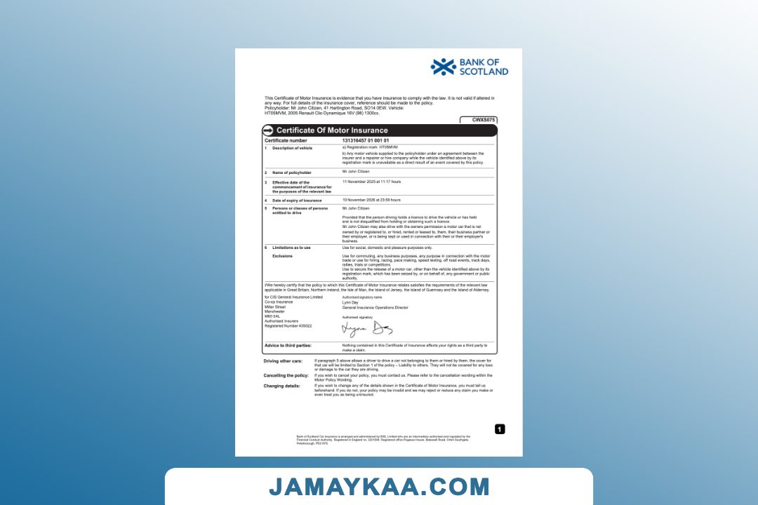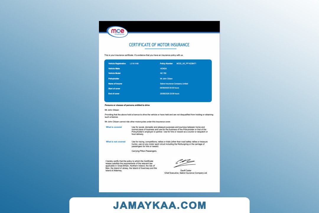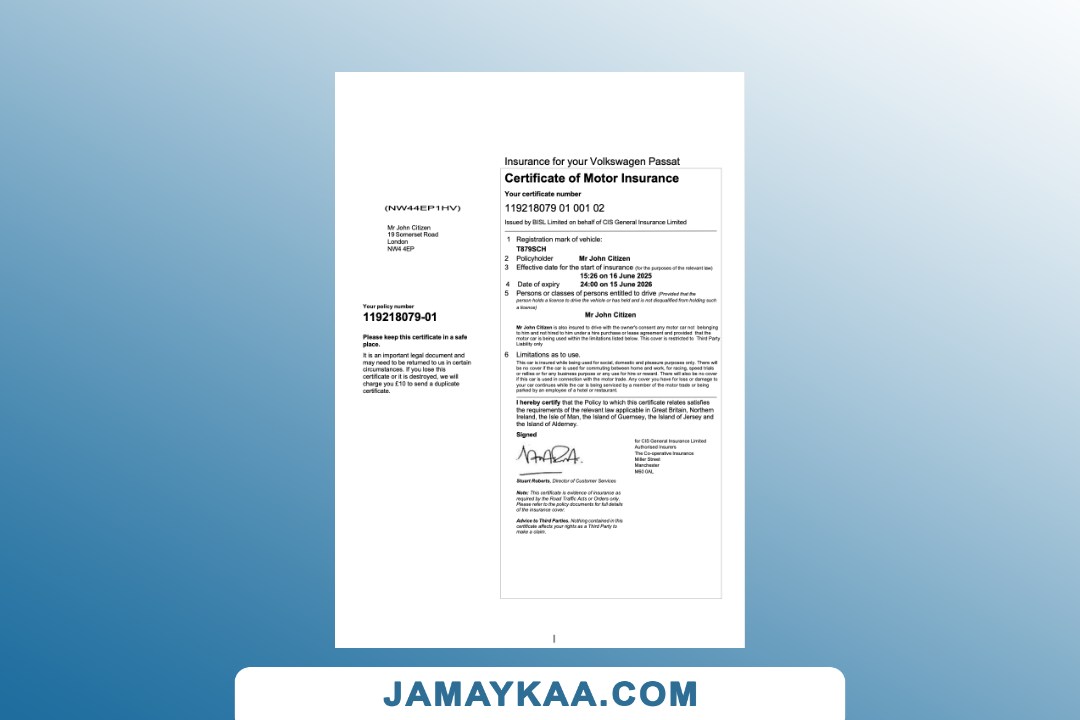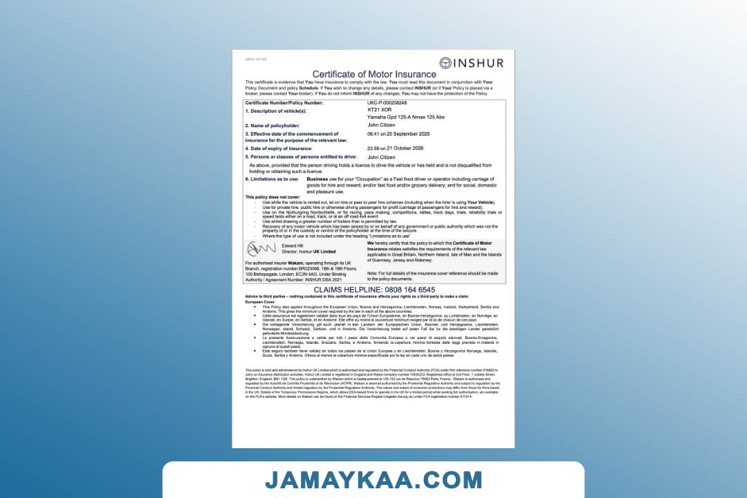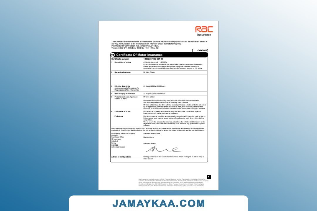 Insurance Company Europe Limited certificate of motor insurance Word and