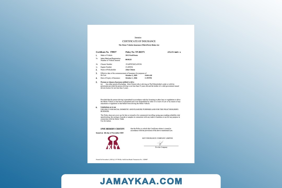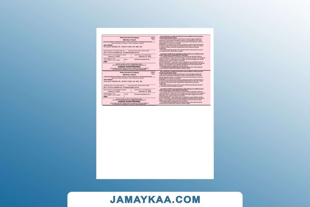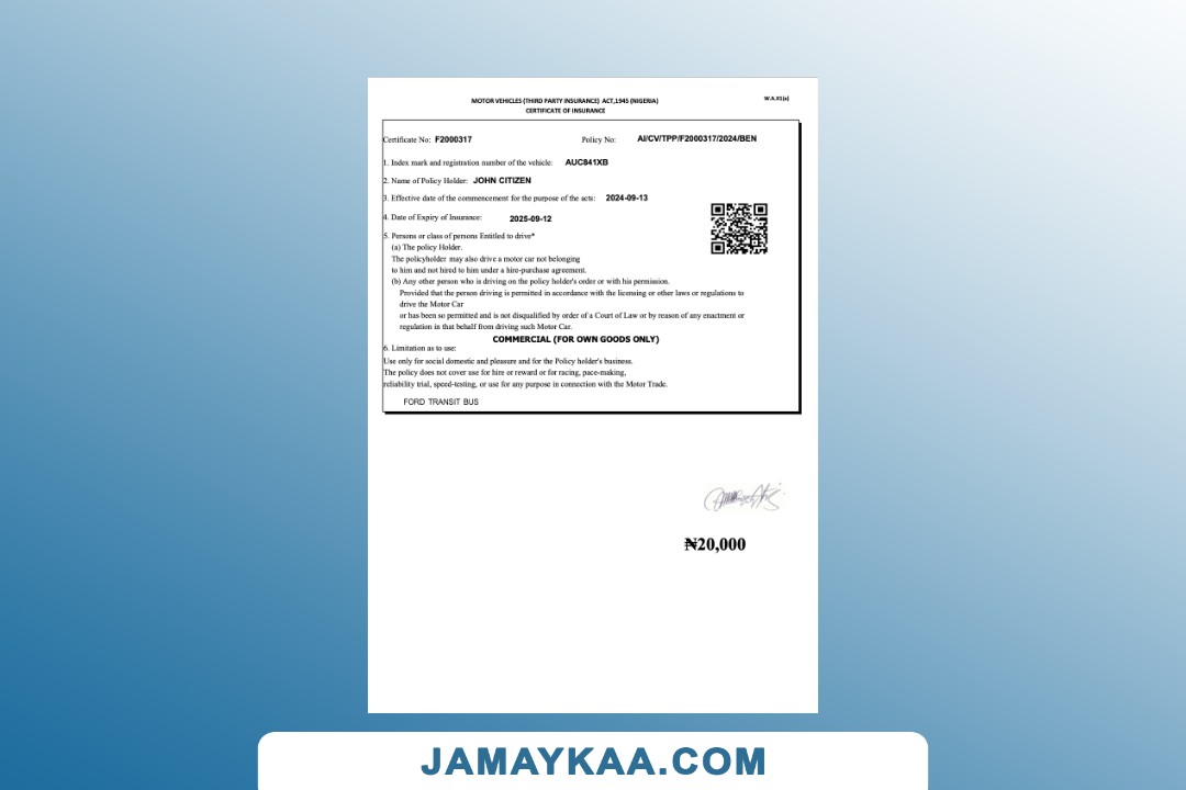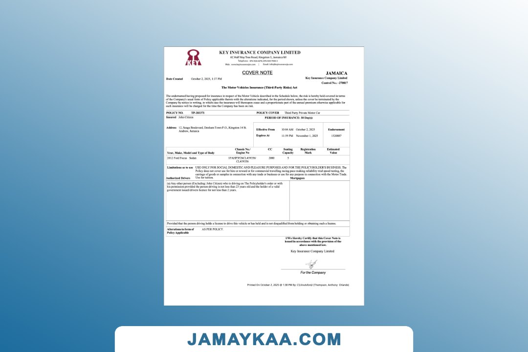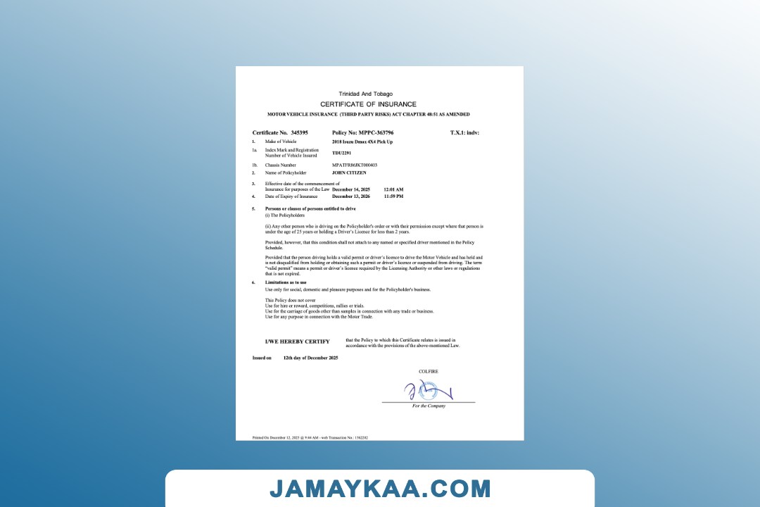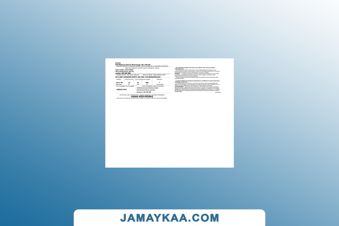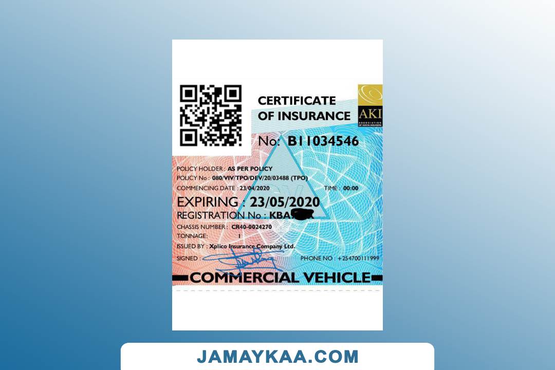 certification of insurance motor private car package policy Word and PDF