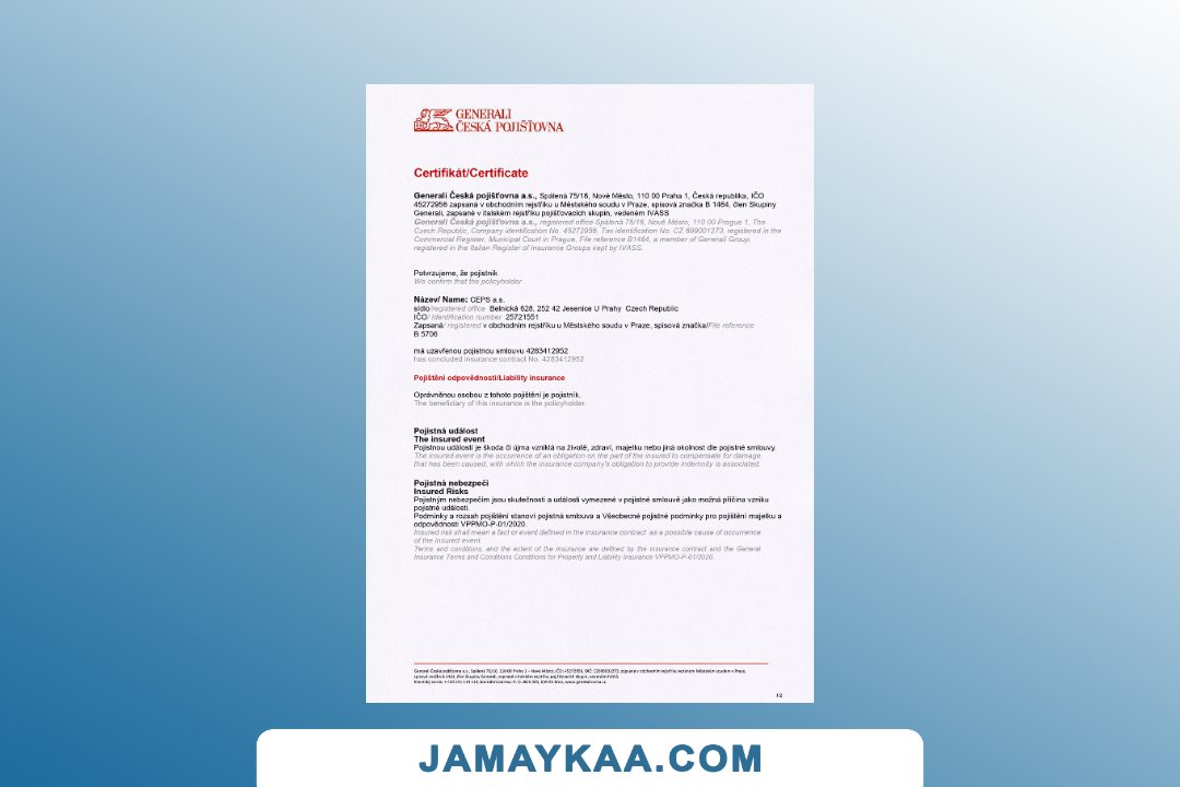 Certificate of Insurance Word and PDF template, version 2