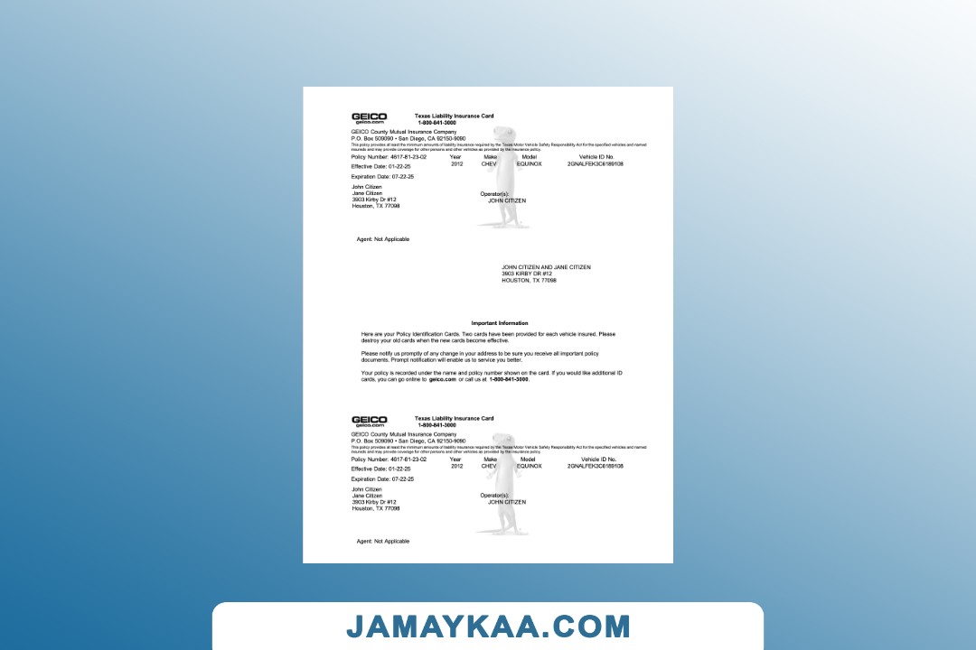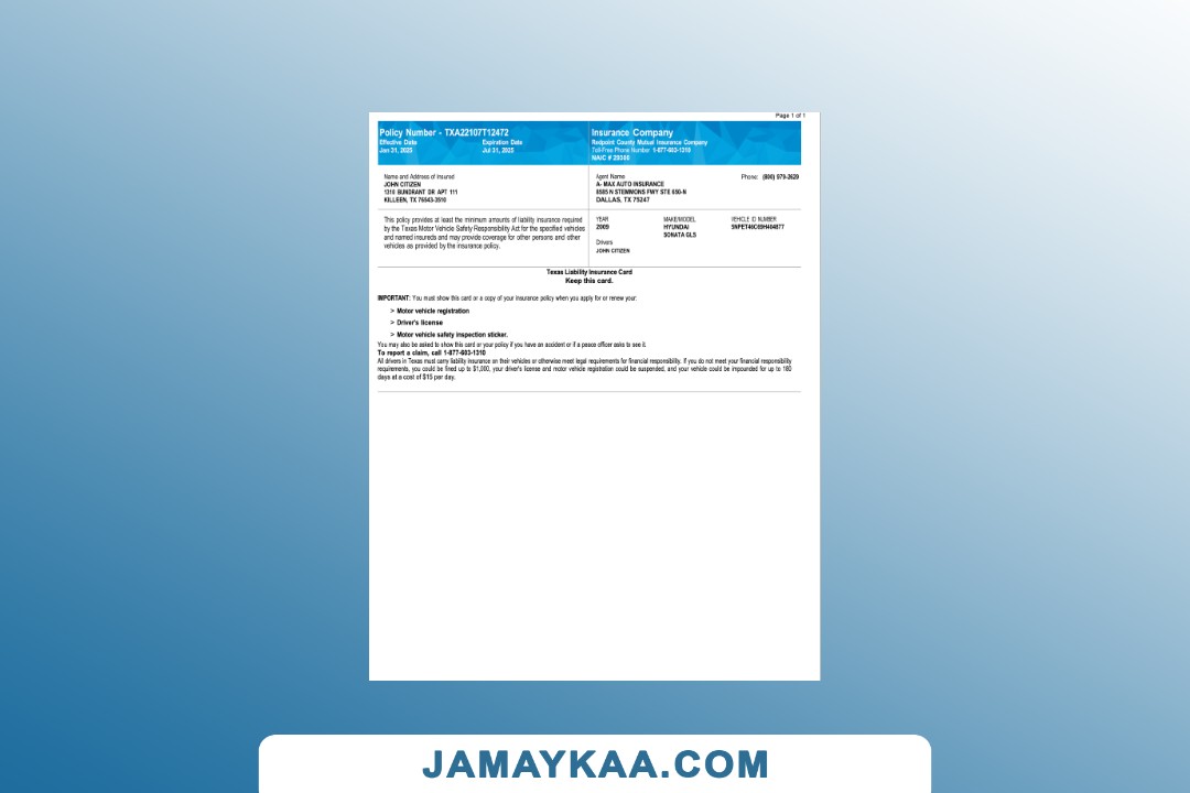 County Mutual Insurance Company Texas Liability Insurance card Word and