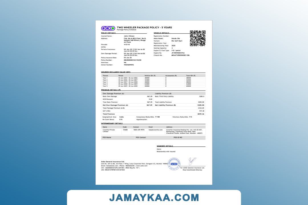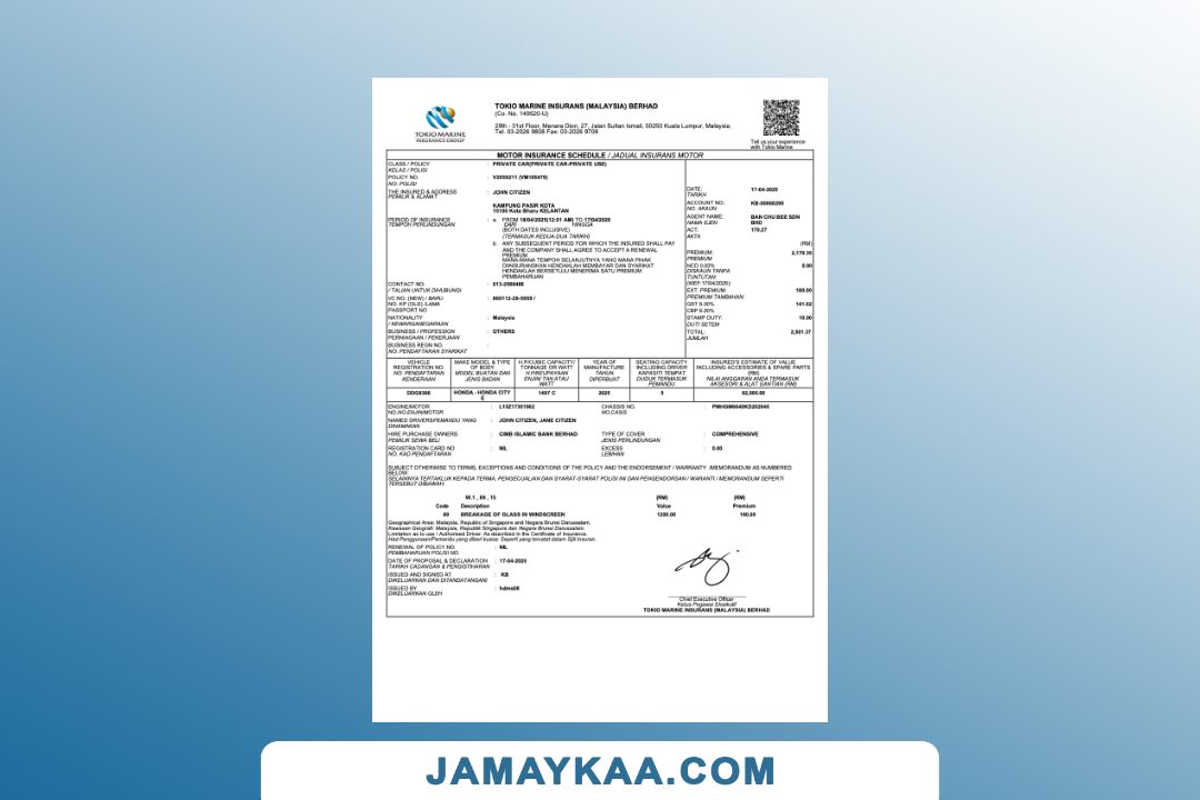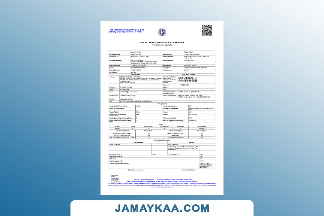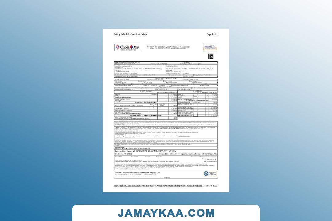 Cholamandalam MS General Insurance Company Limited Policy Schedule cum