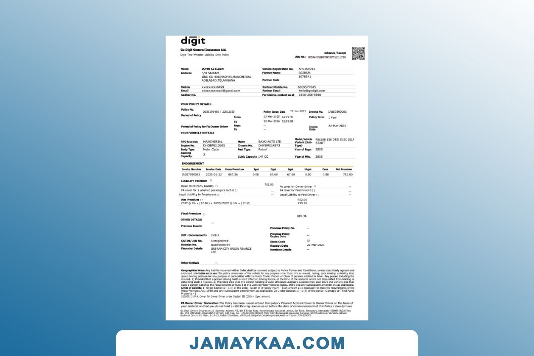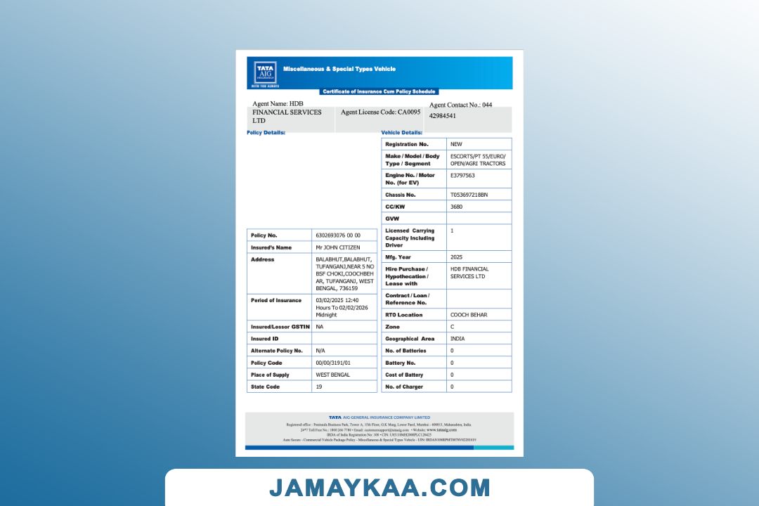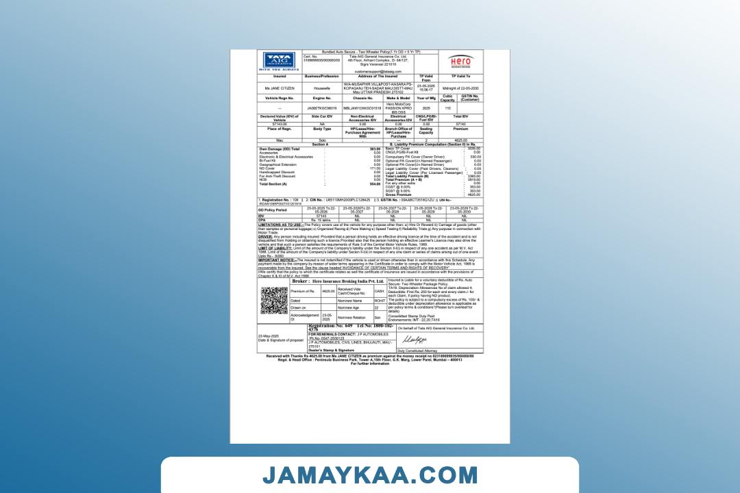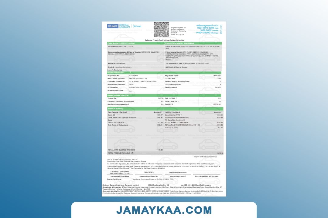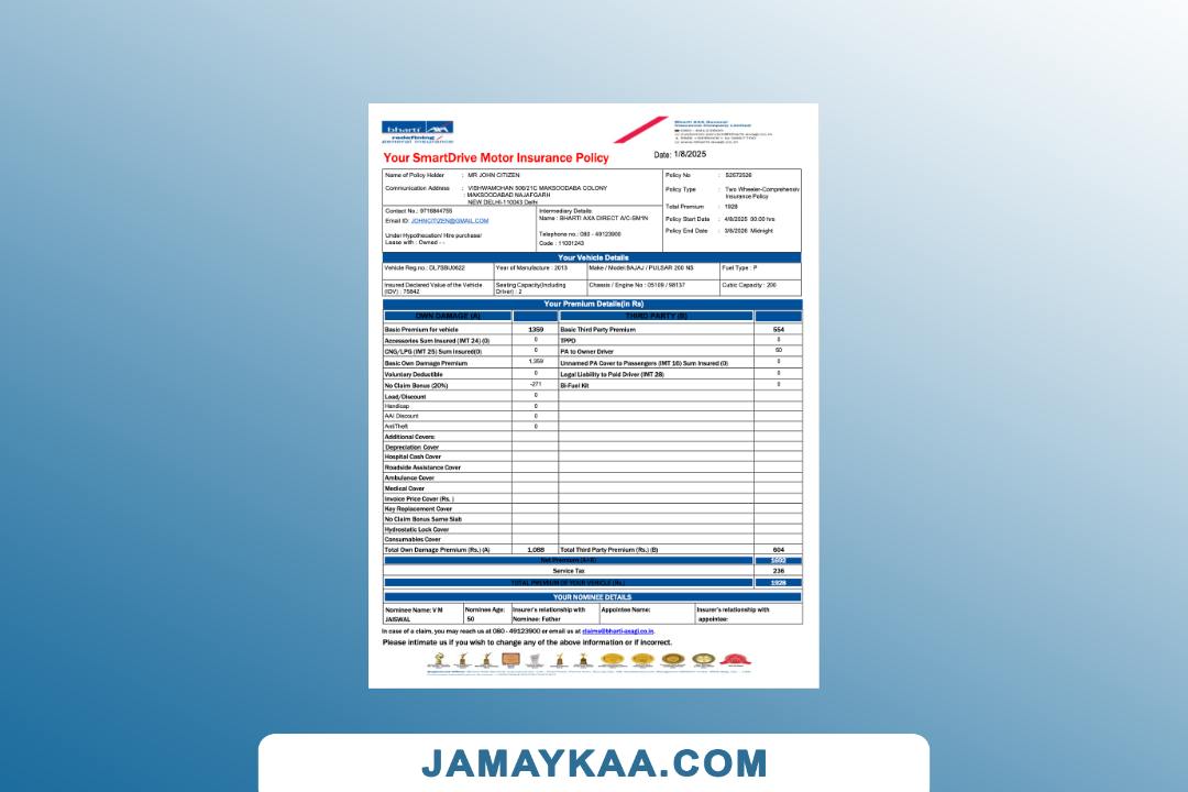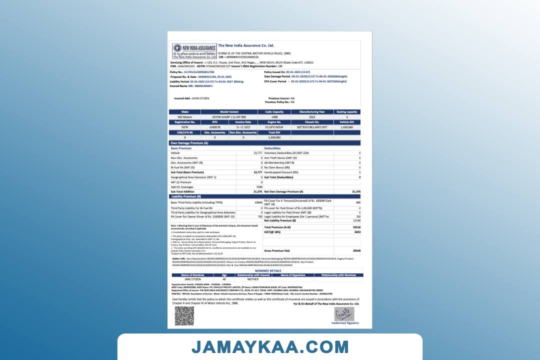 Bajaj Allianz General Insurance certificate of insurance cum policy