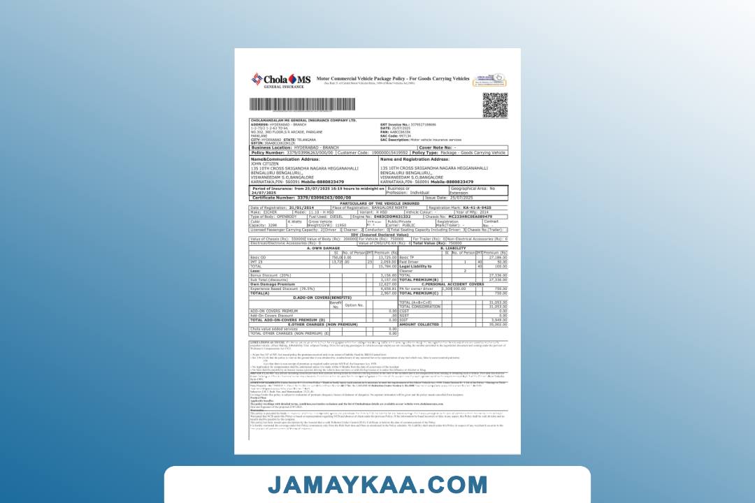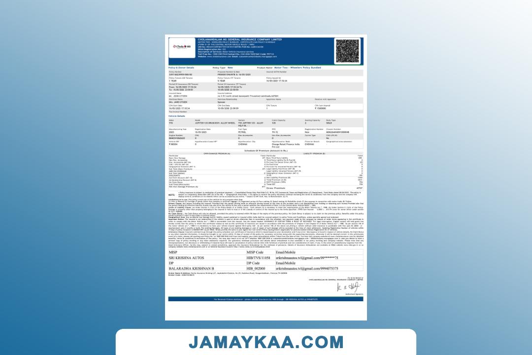 Cholamandalam Ms General Insurance Company certificate cum policy
