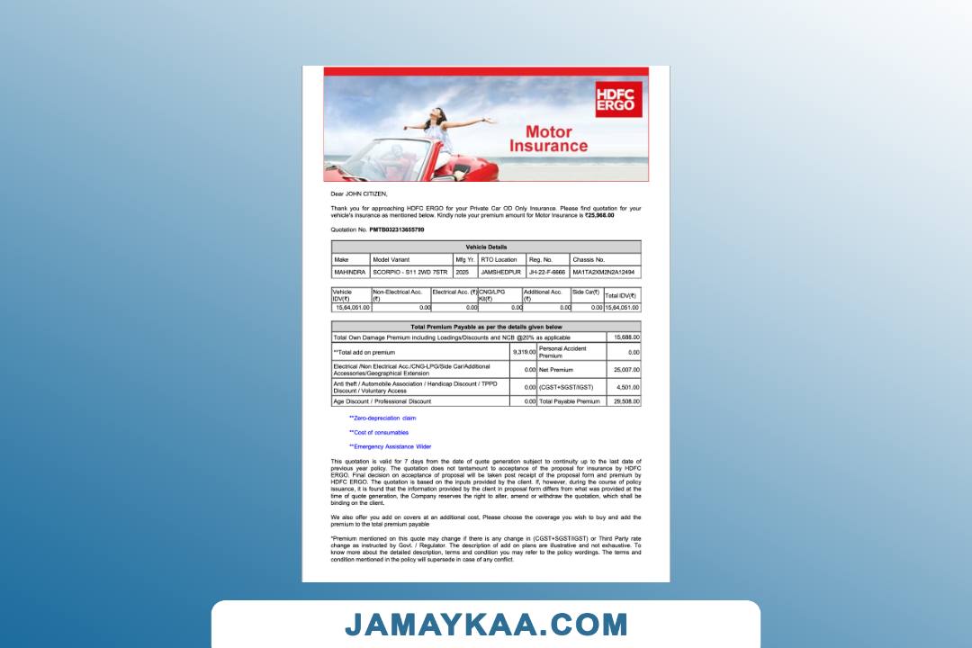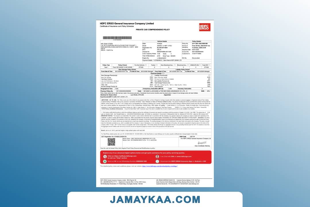HDFC ERGO General Insurance Company Certificate of Insurance cum Policy