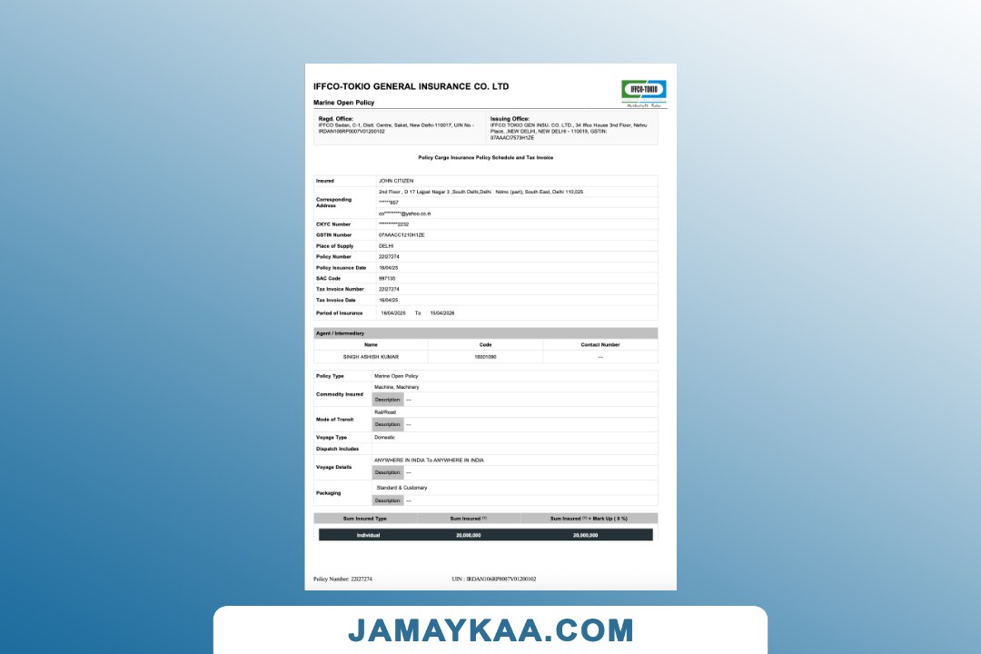 IFFCO-Tokio General Insurance policy cargo insurance, policy schedule