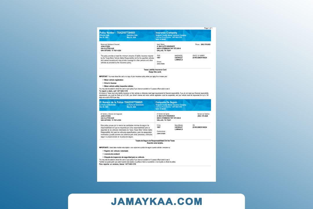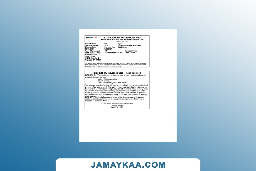 Texas County Mutual Insurance Company Liability Insurance card Word and