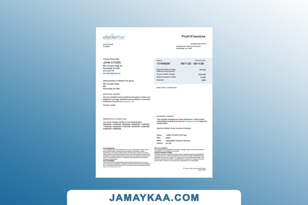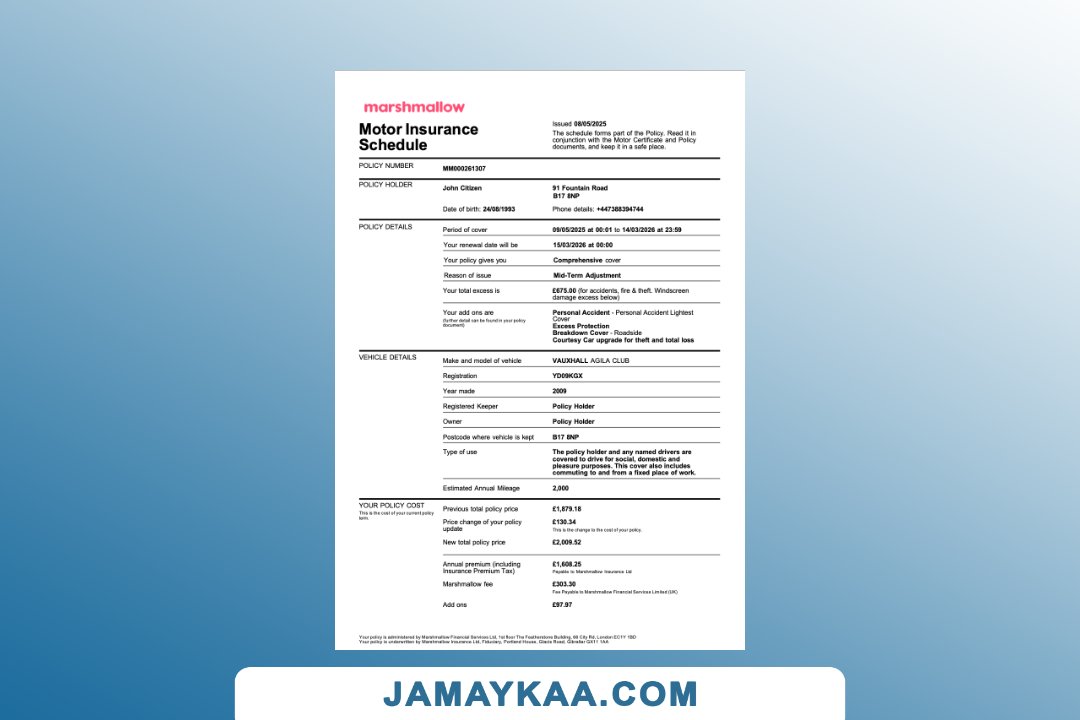 policy schedule Word and PDF template