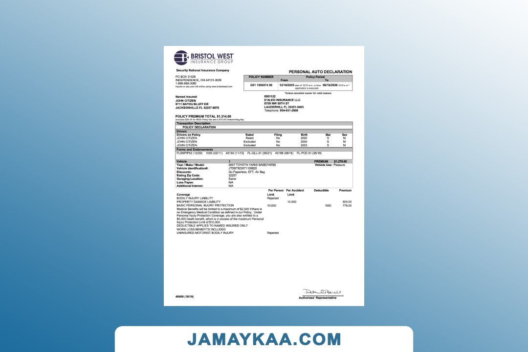 SmartDrive Motor Insurance certificate of insurance cum schedule Word