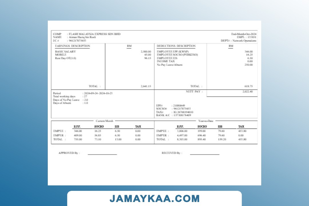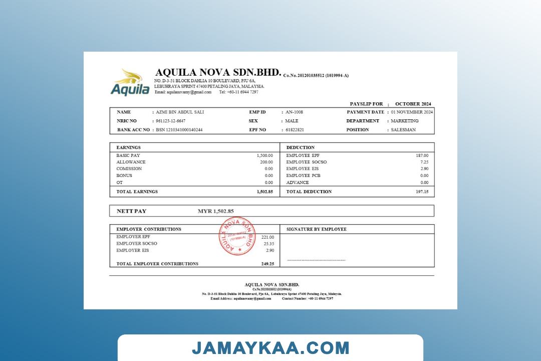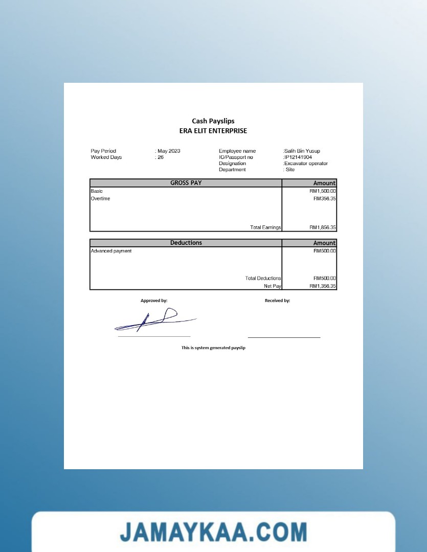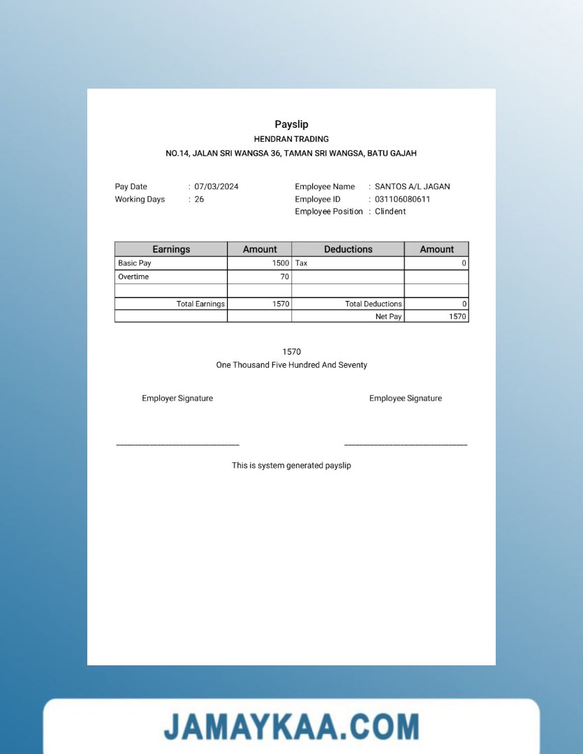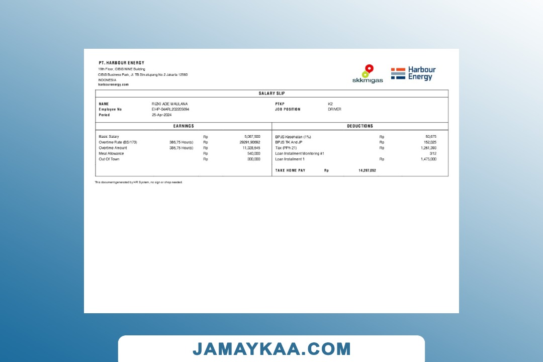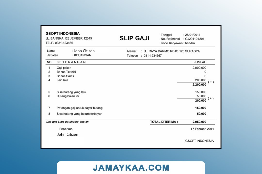 Jaya Mandiri Trussindo building materials store payslip (in Indonesian