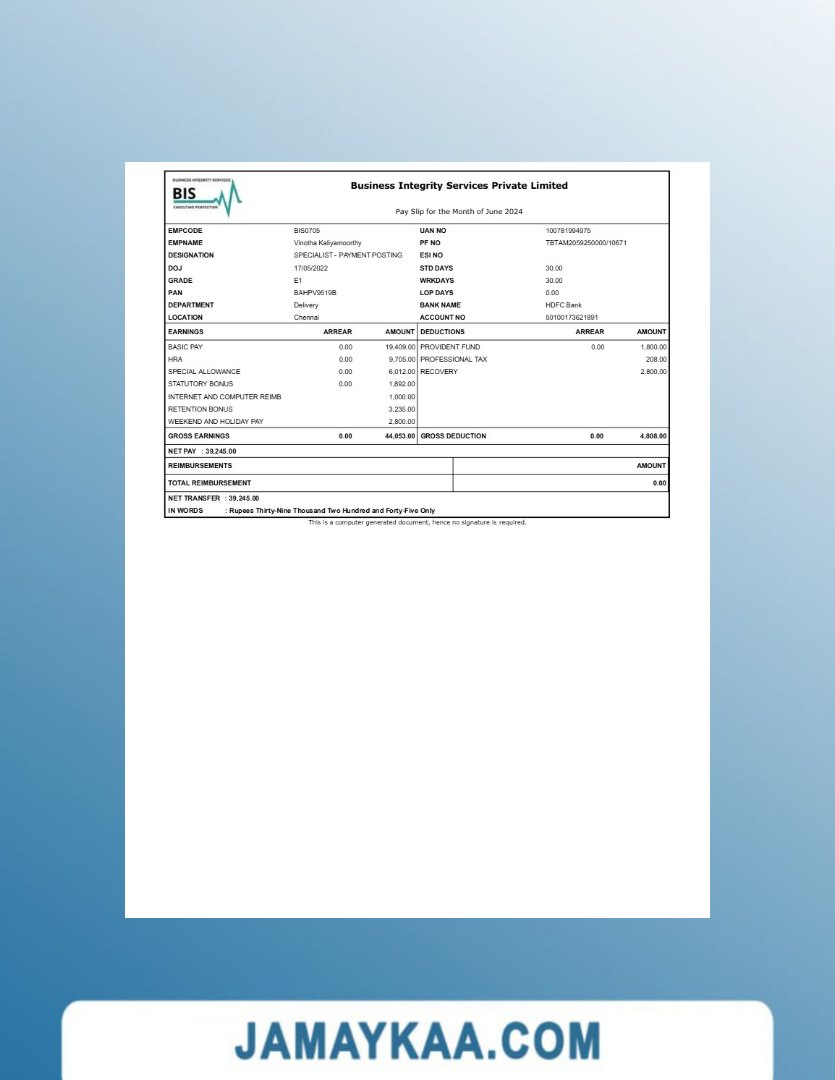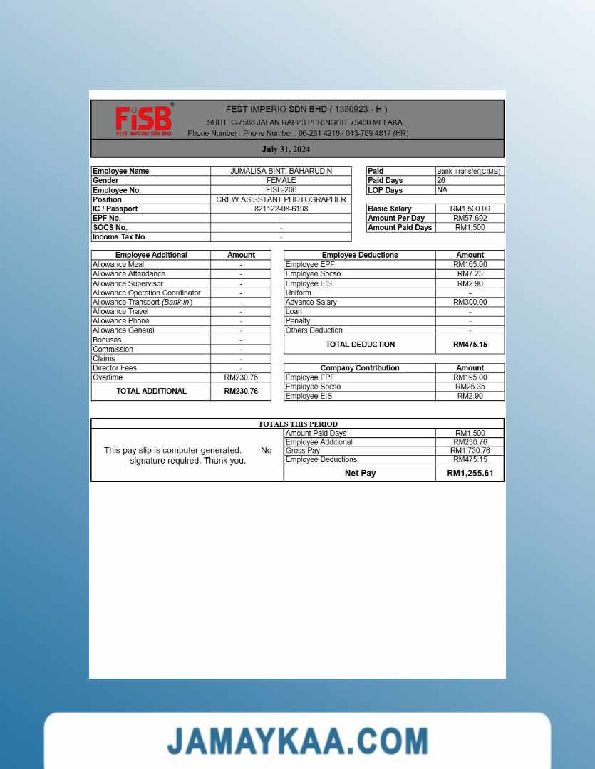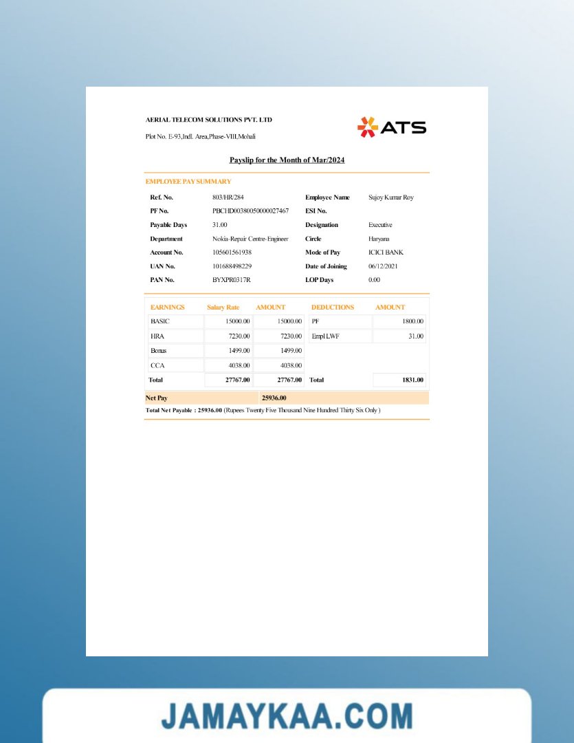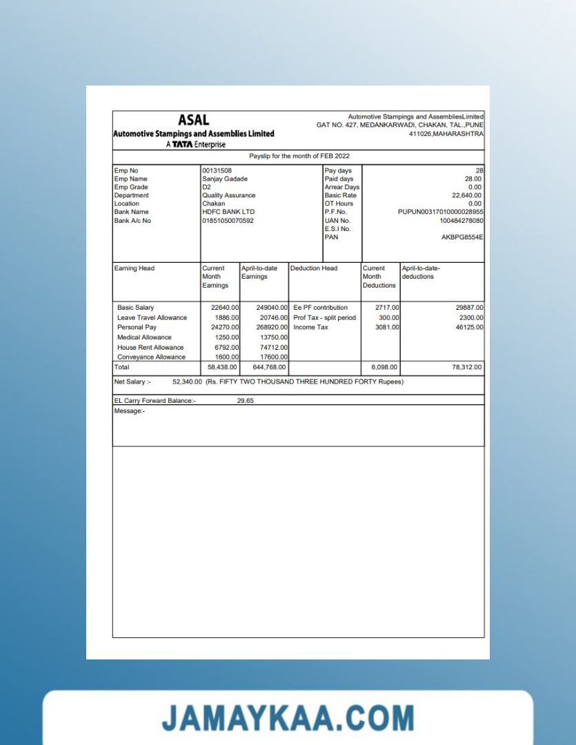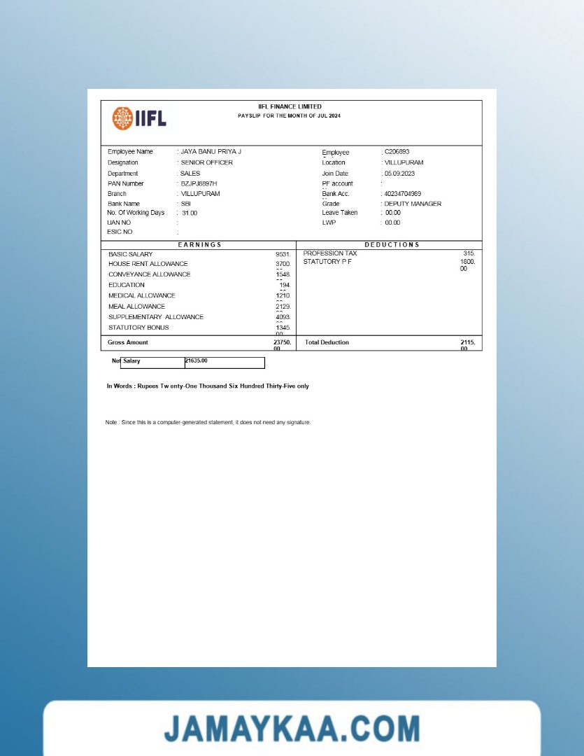 Jaya Mandiri Trussindo building materials store payslip (in Indonesian