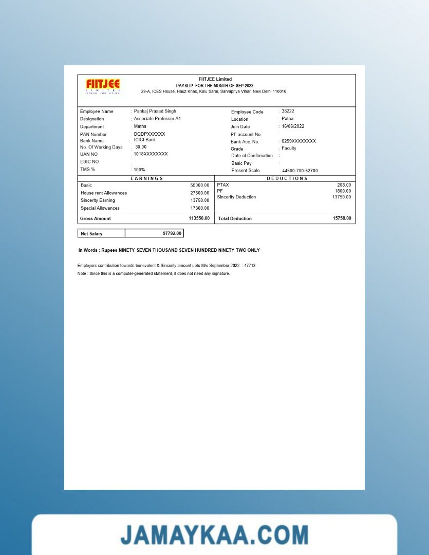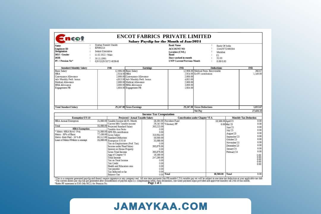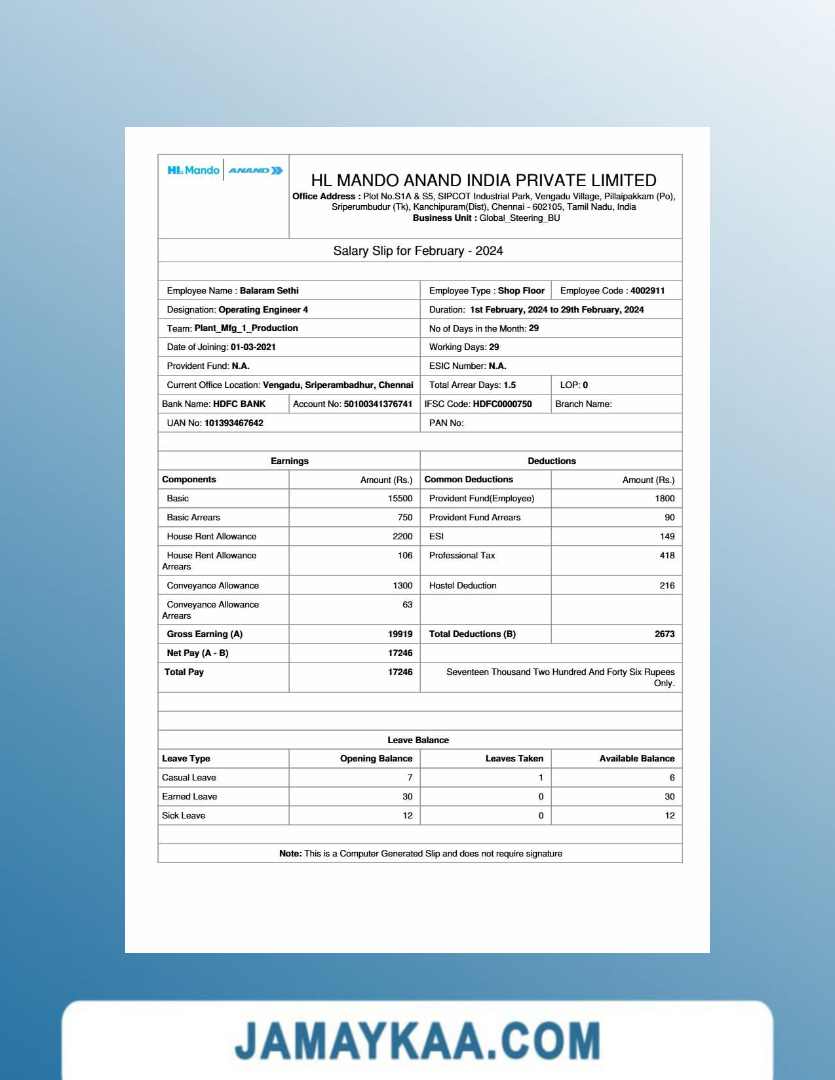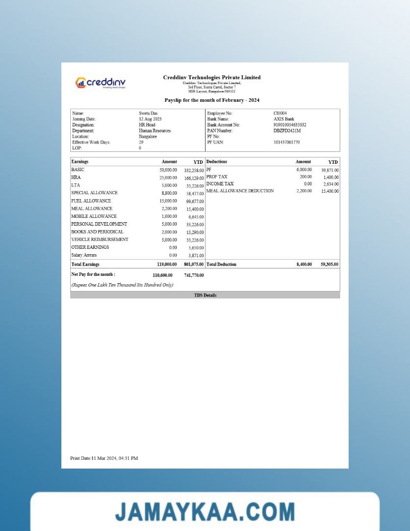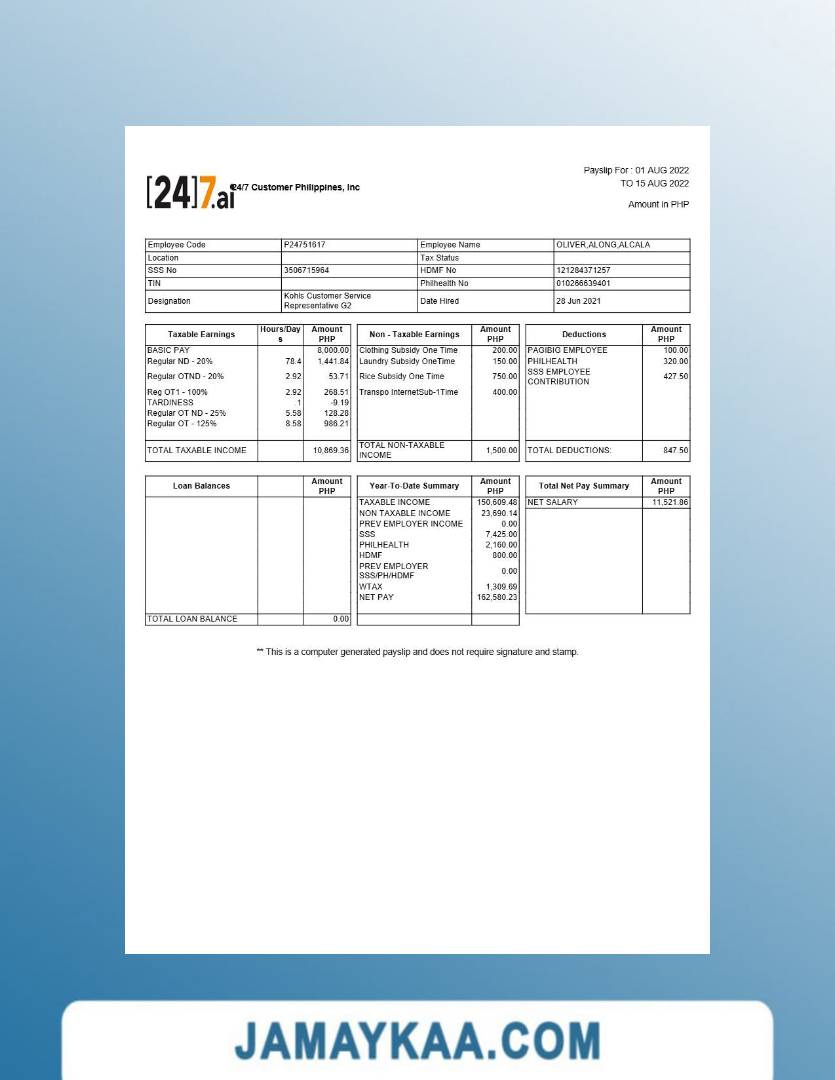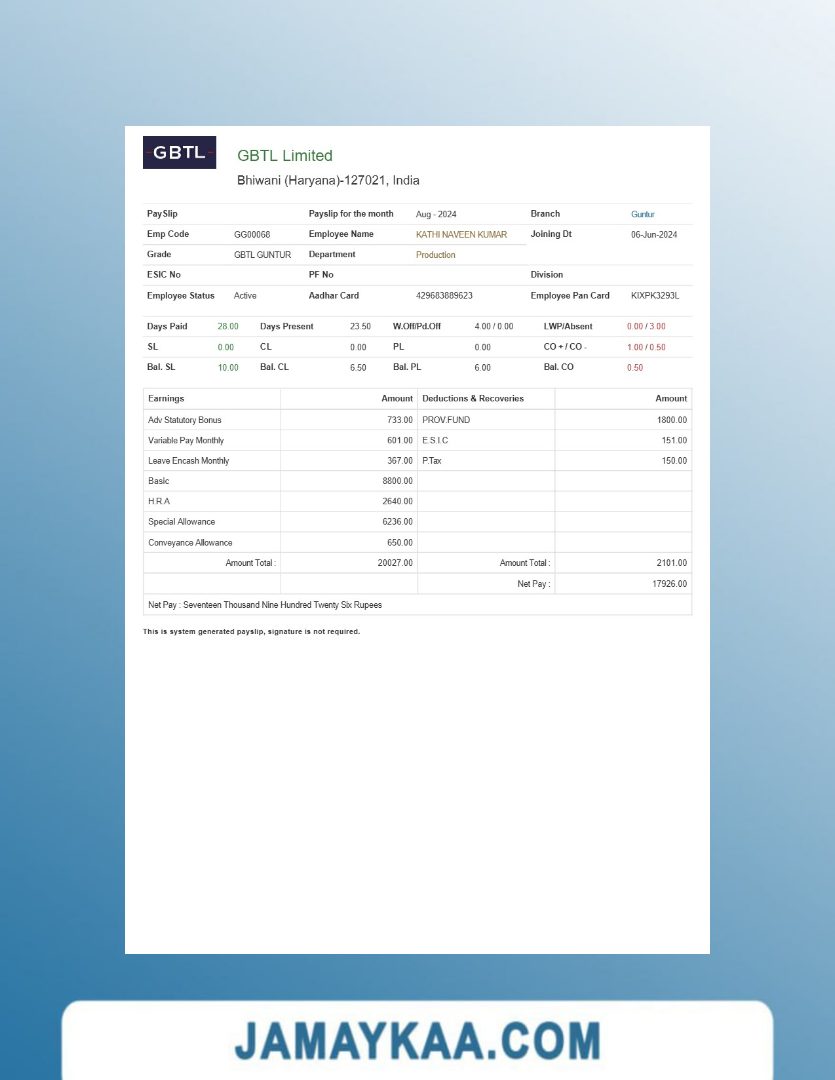 Jaya Mandiri Trussindo building materials store payslip (in Indonesian