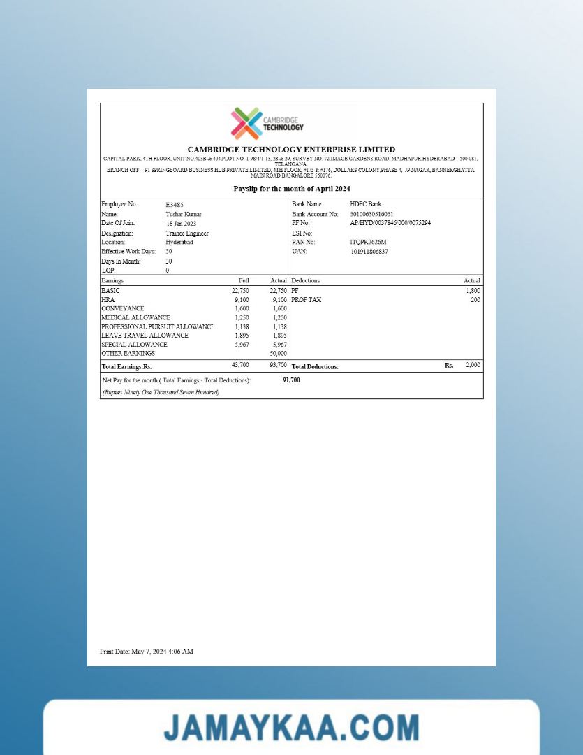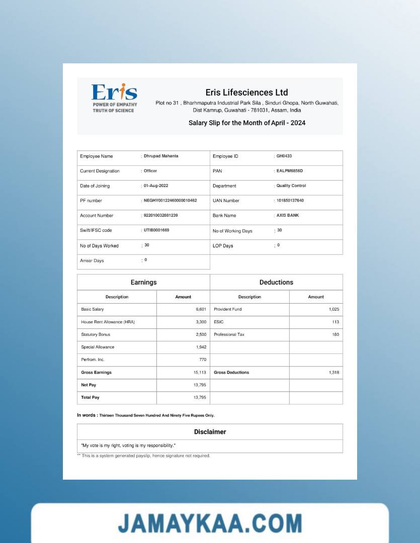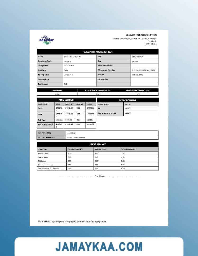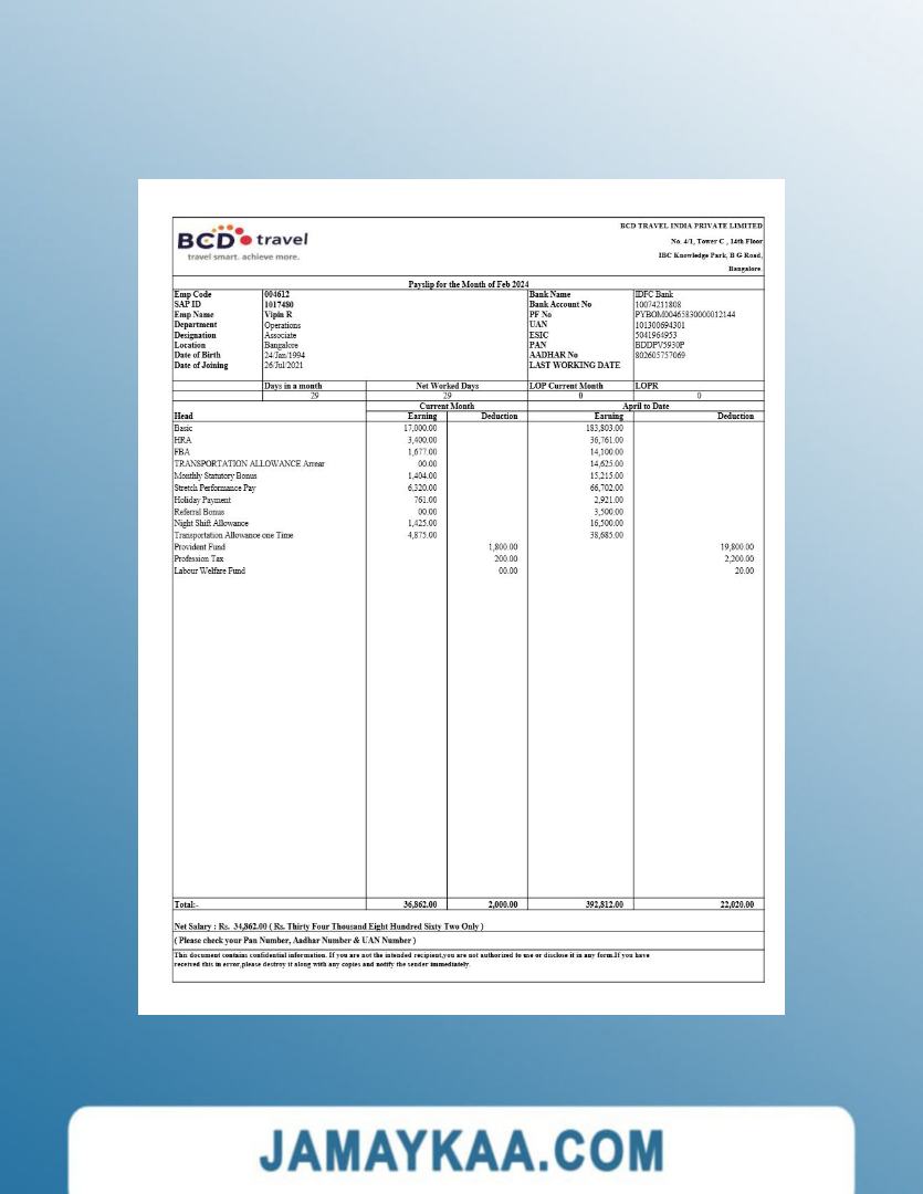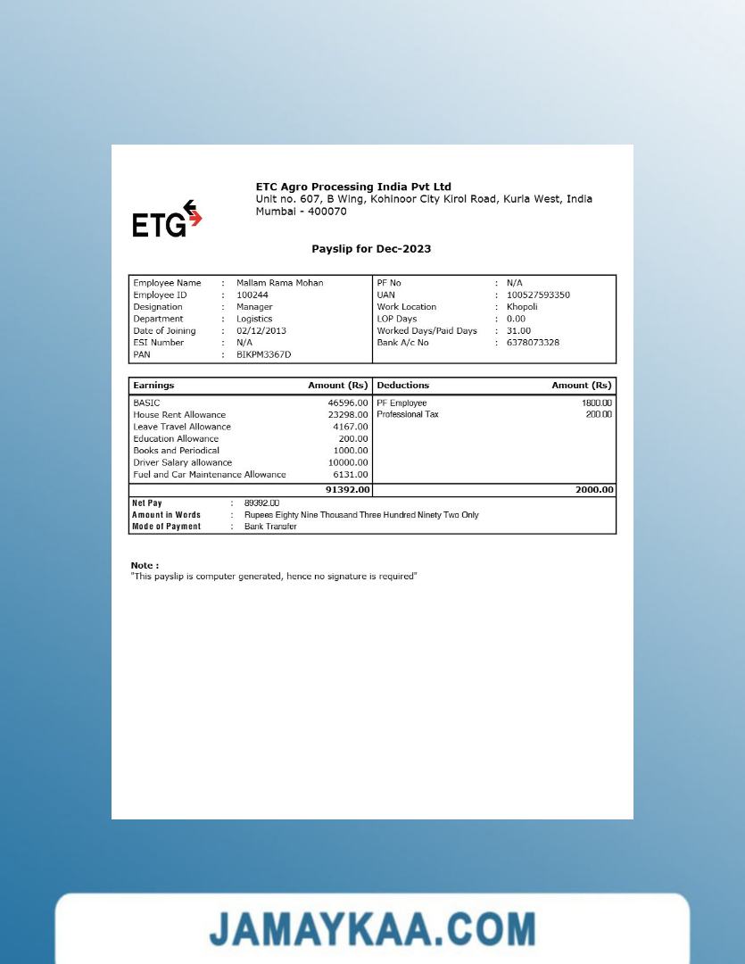 Jaya Mandiri Trussindo building materials store payslip (in Indonesian