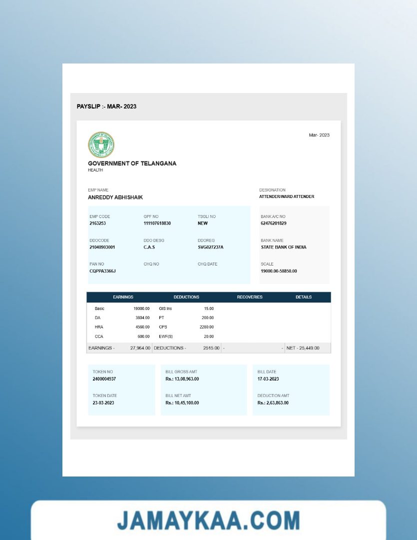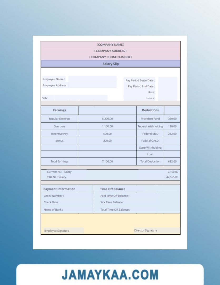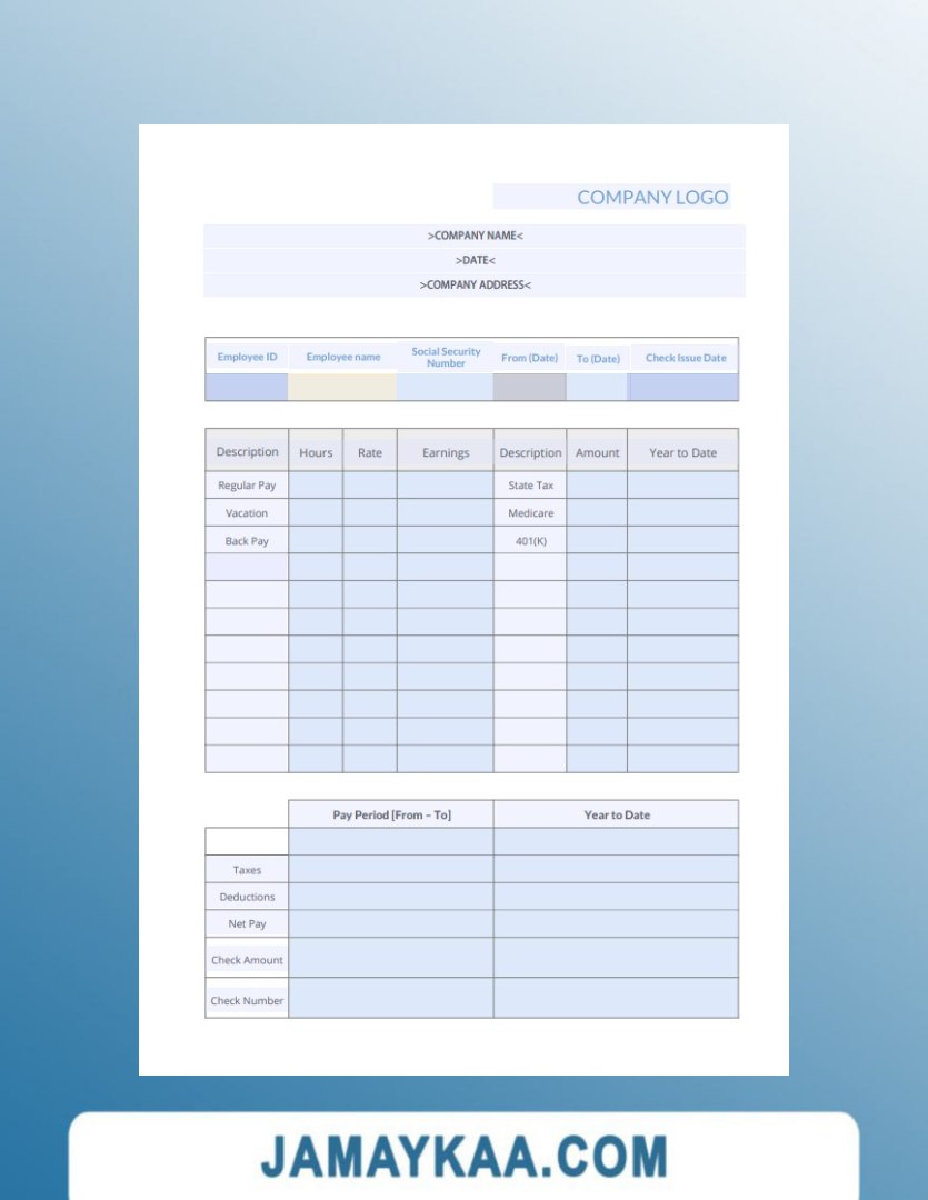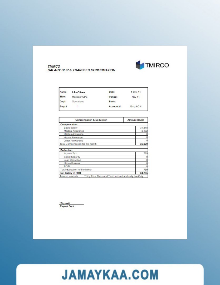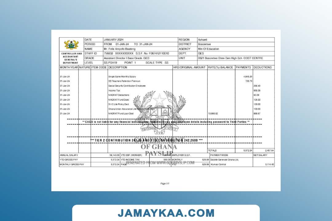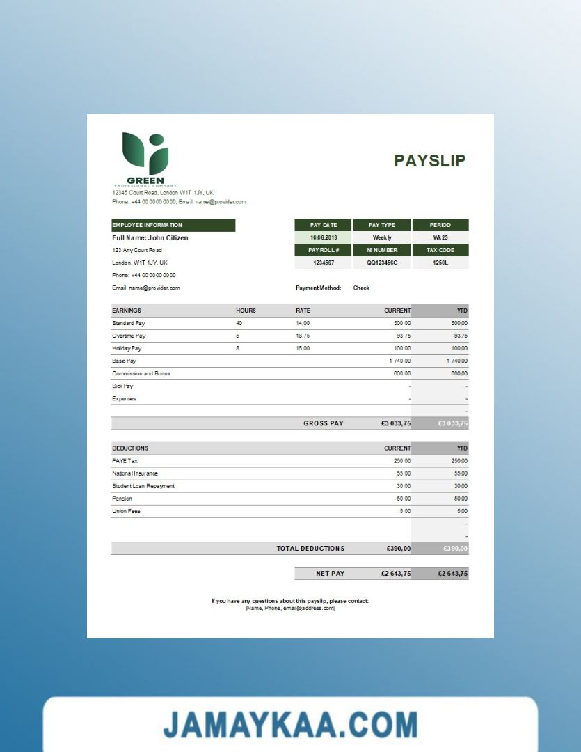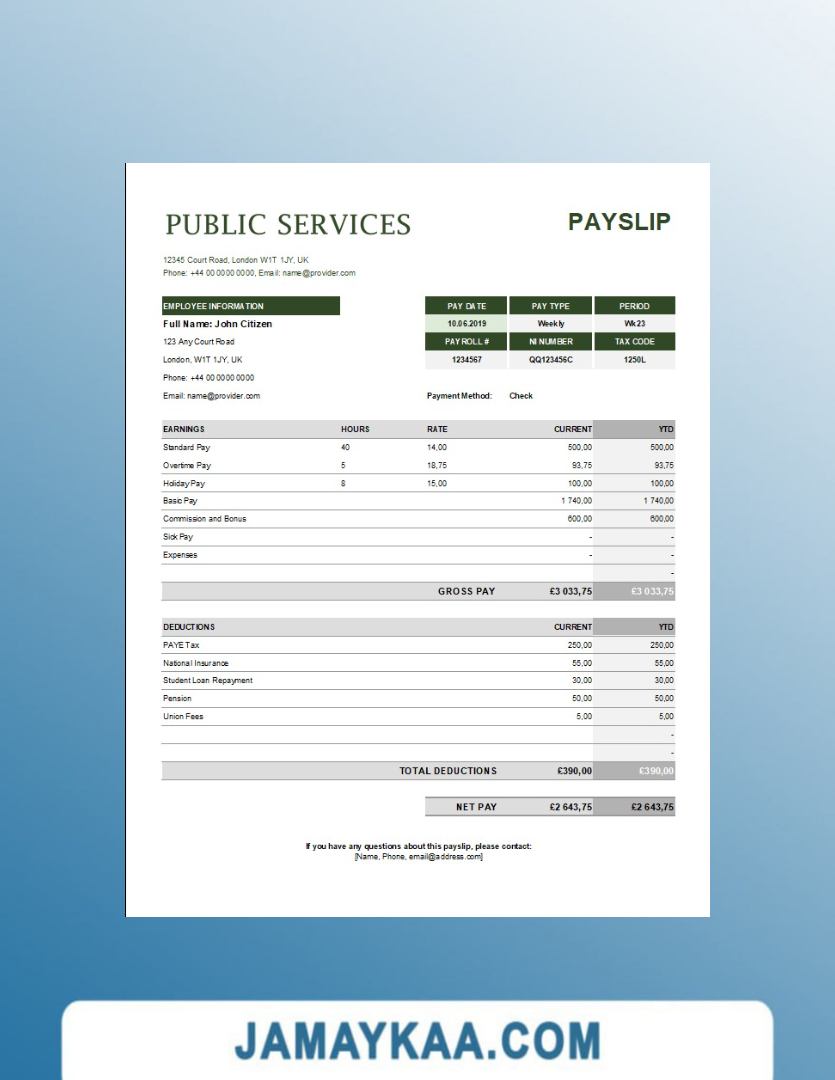 Controller and Accountant General's Department payslip template in Word