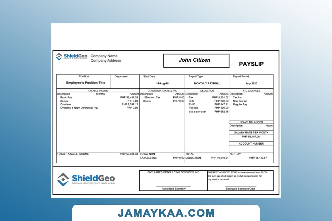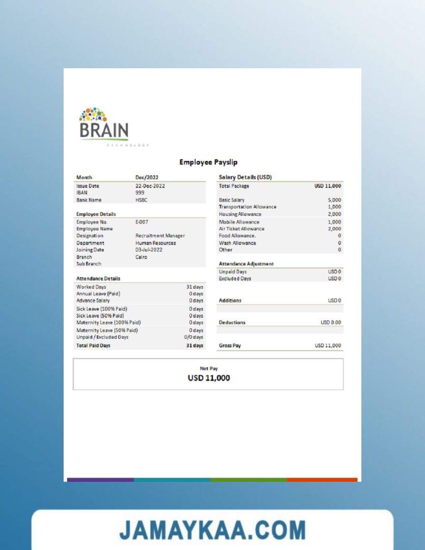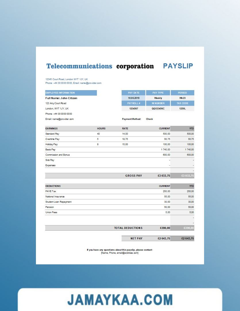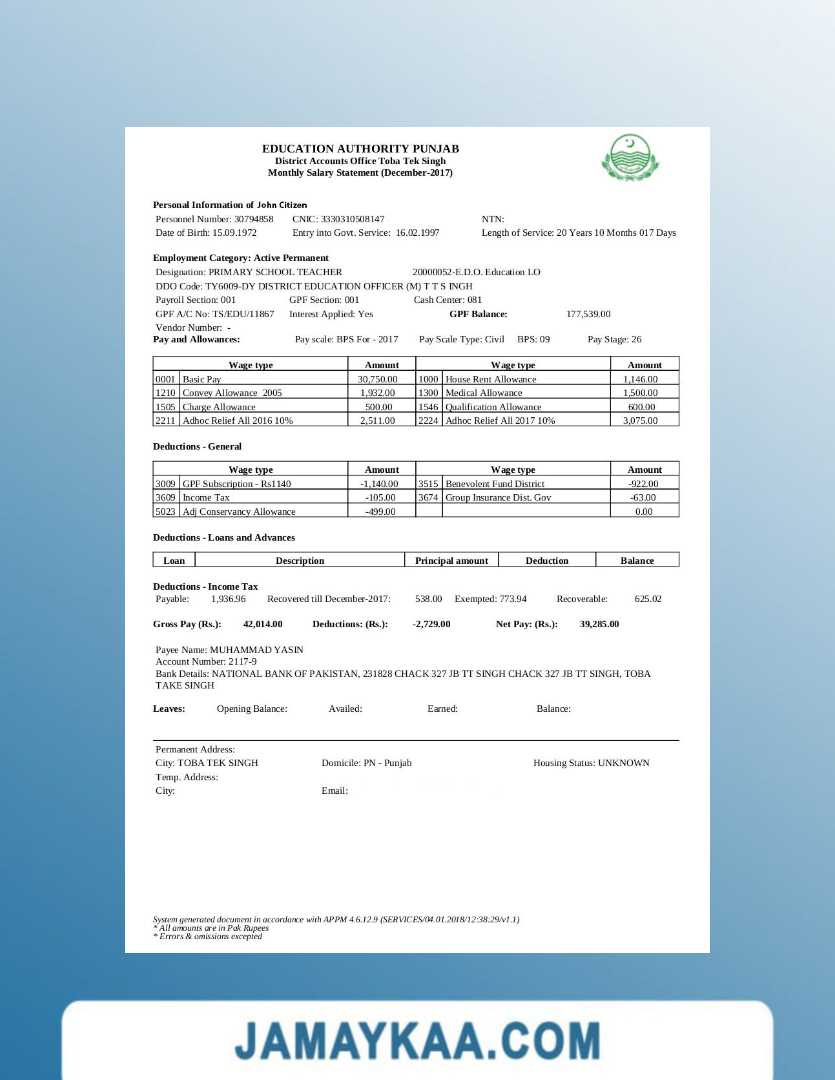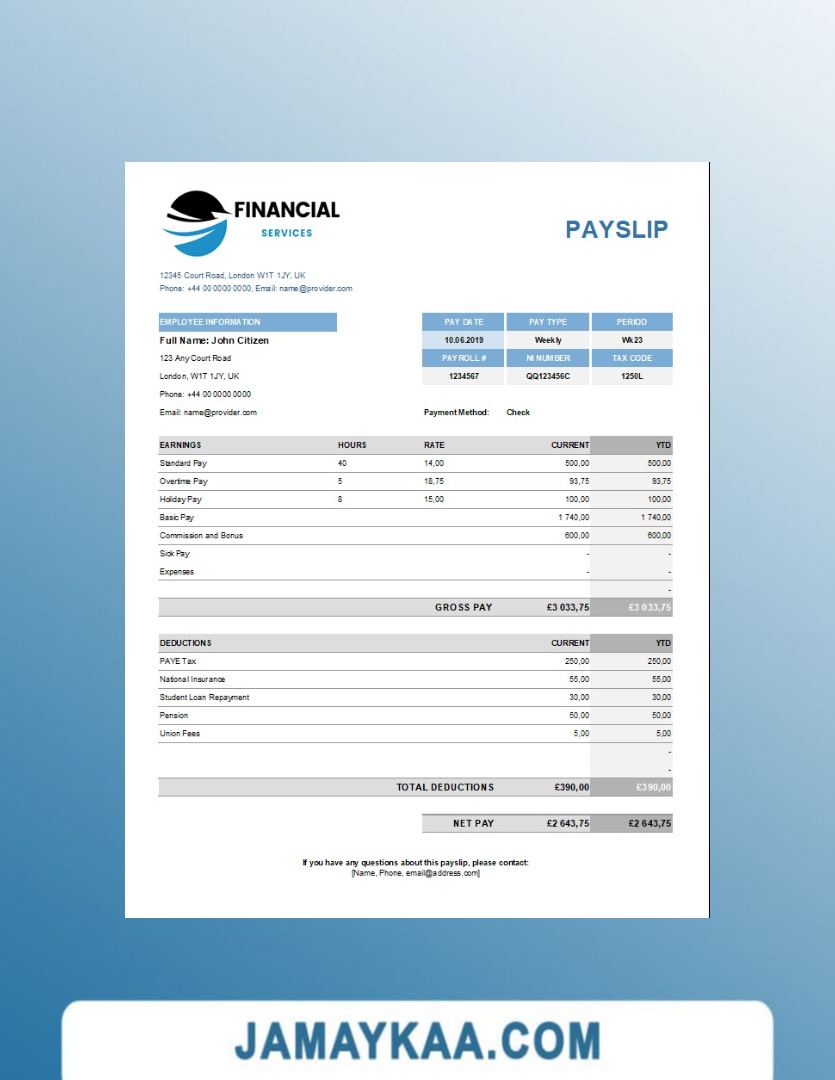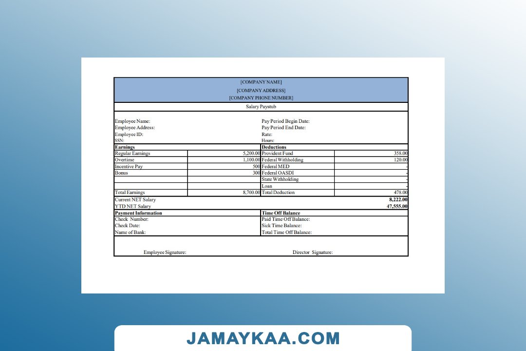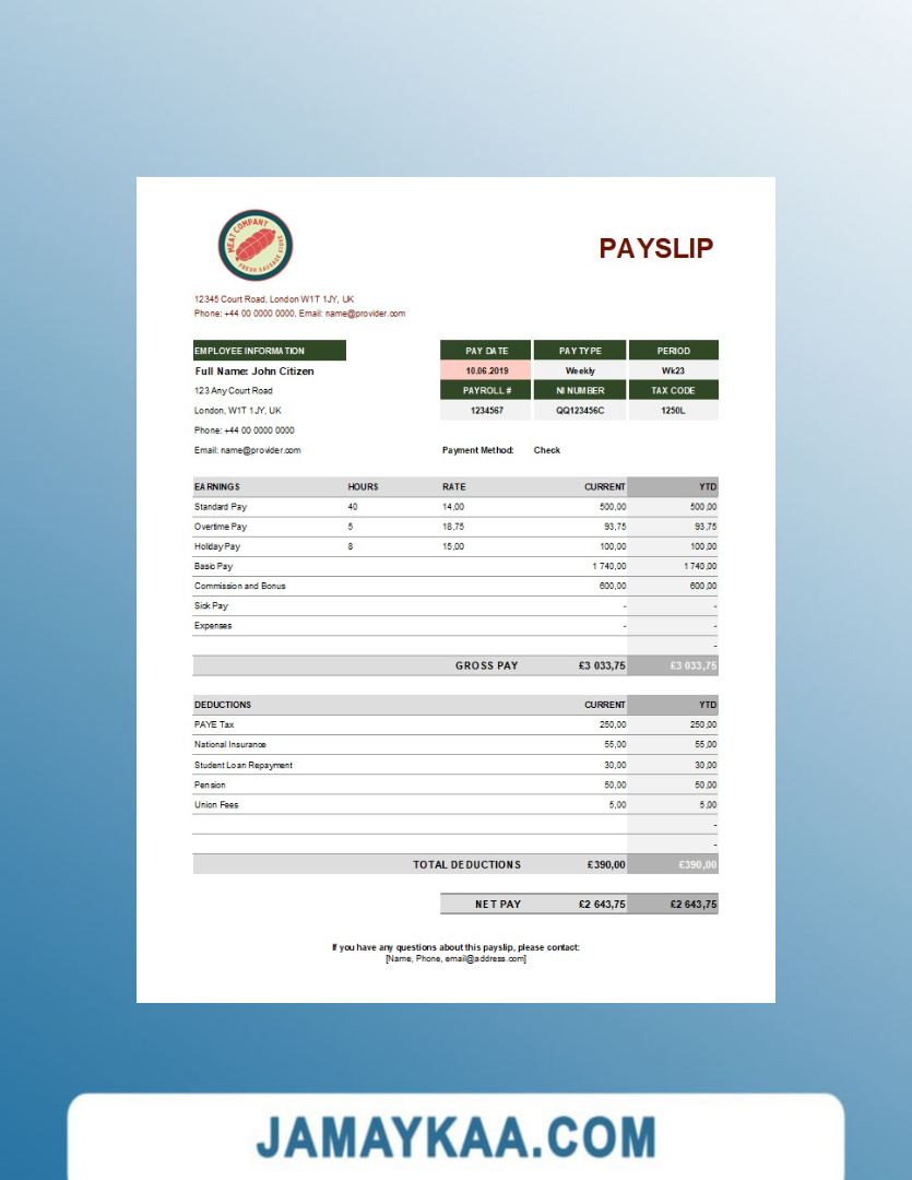Controller and Accountant General's Department payslip template in Word