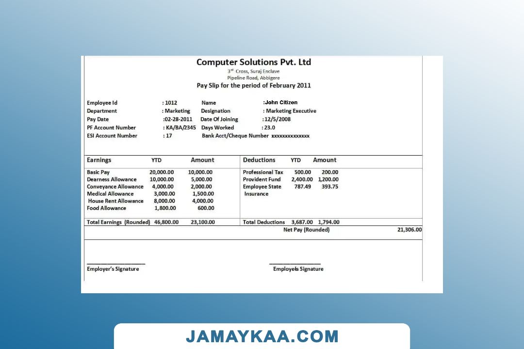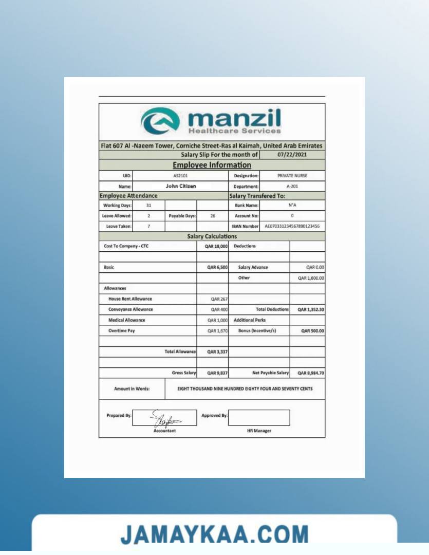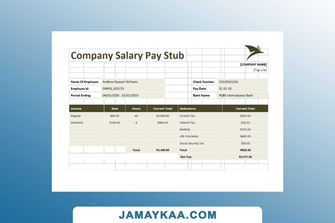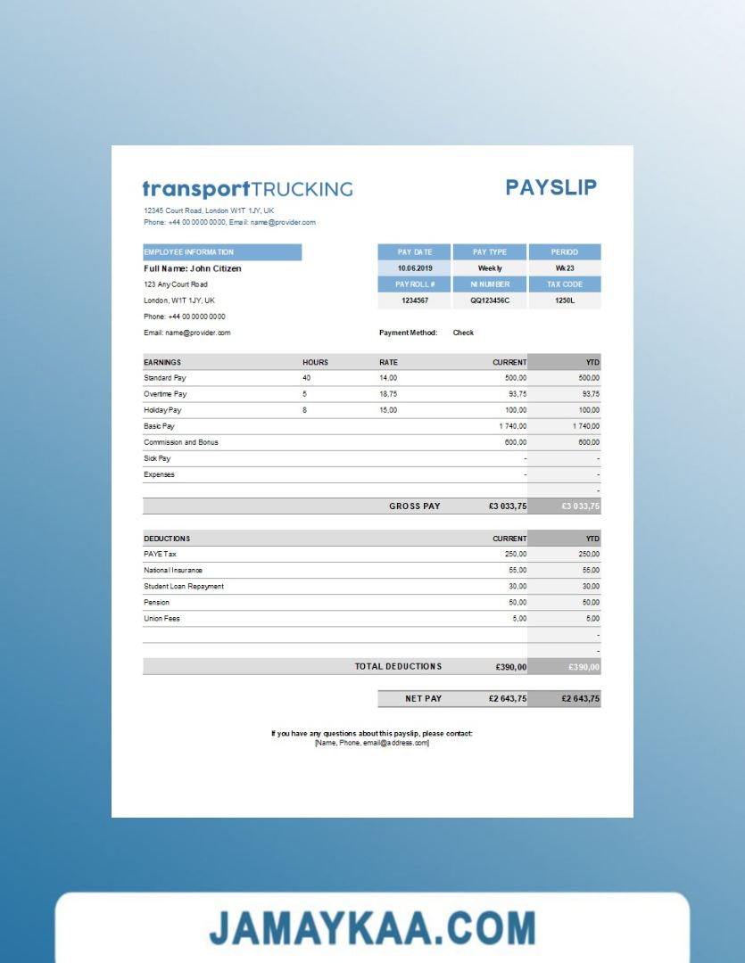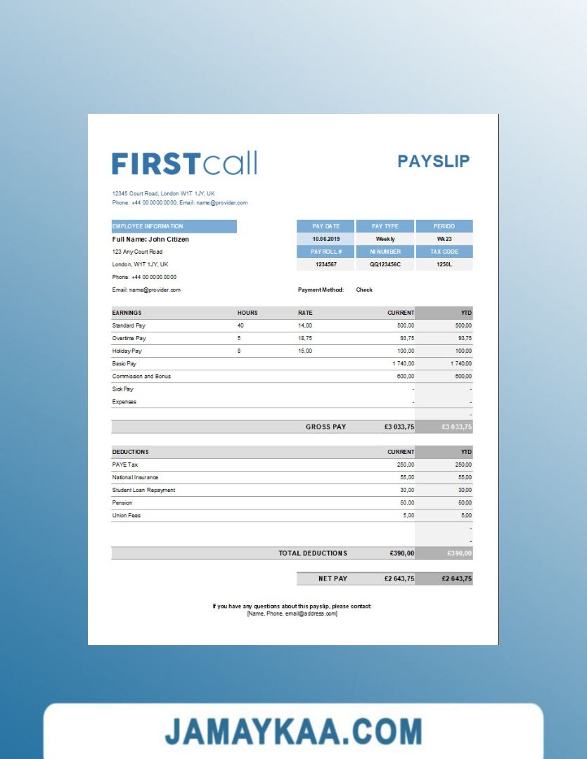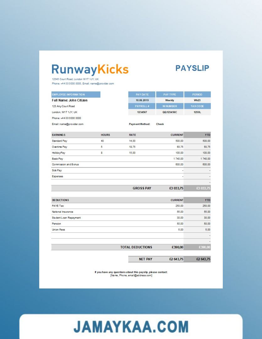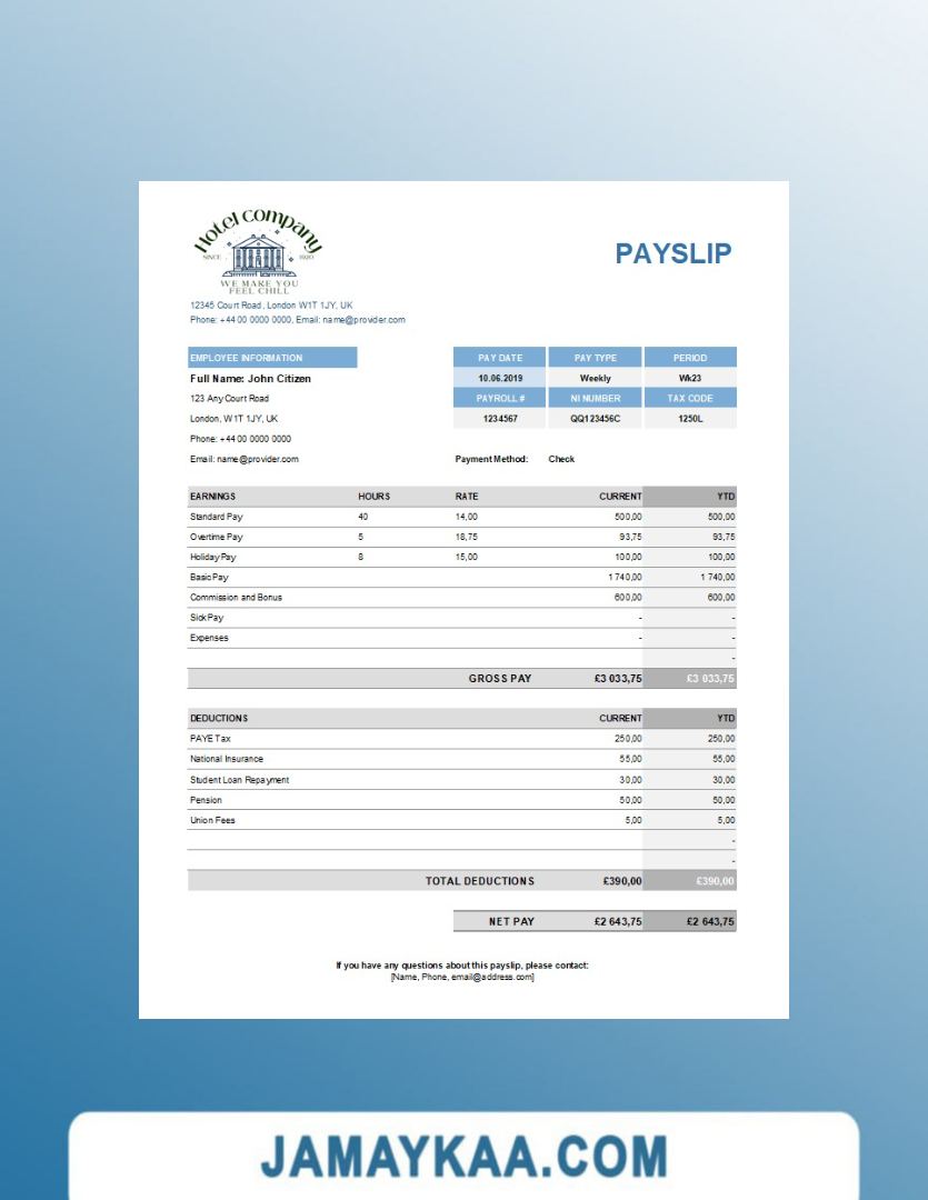 Controller and Accountant General's Department payslip template in Word