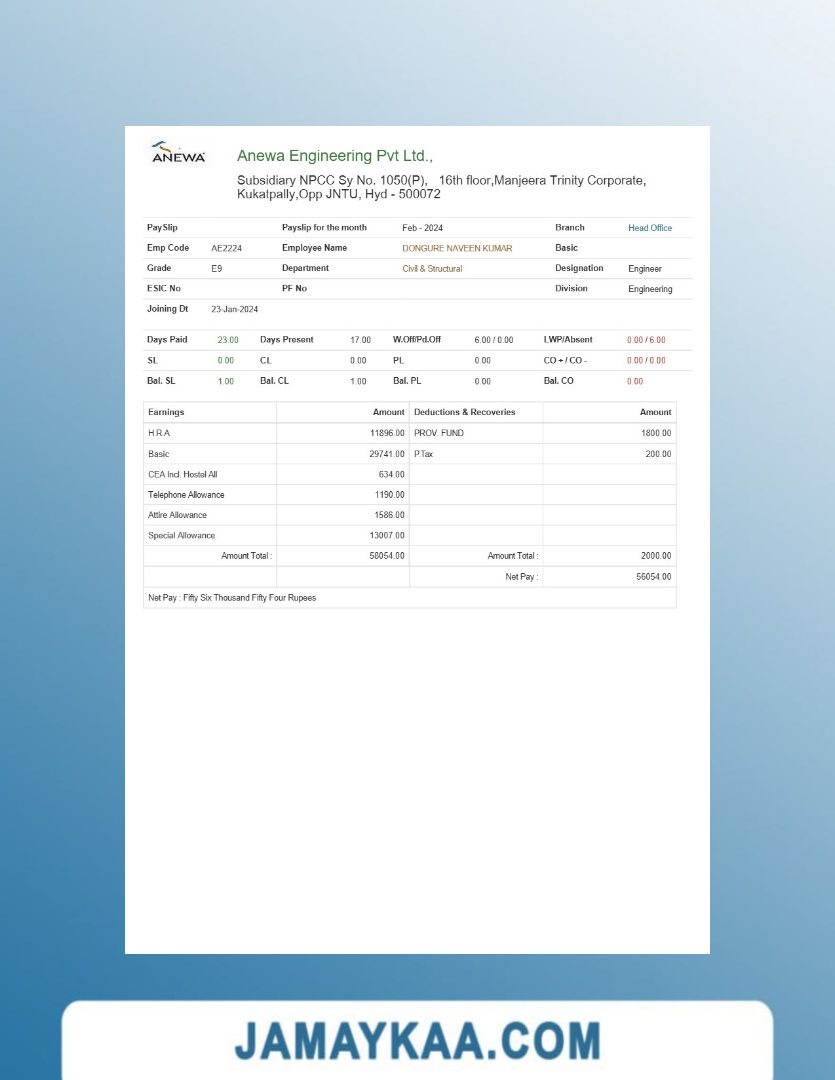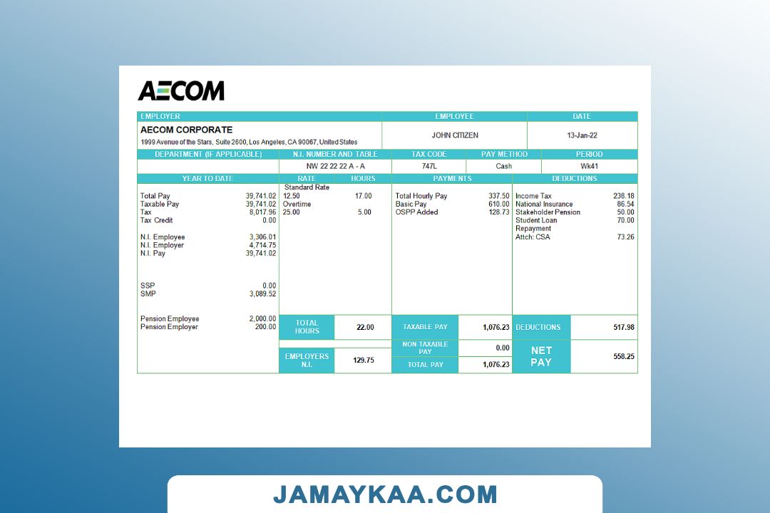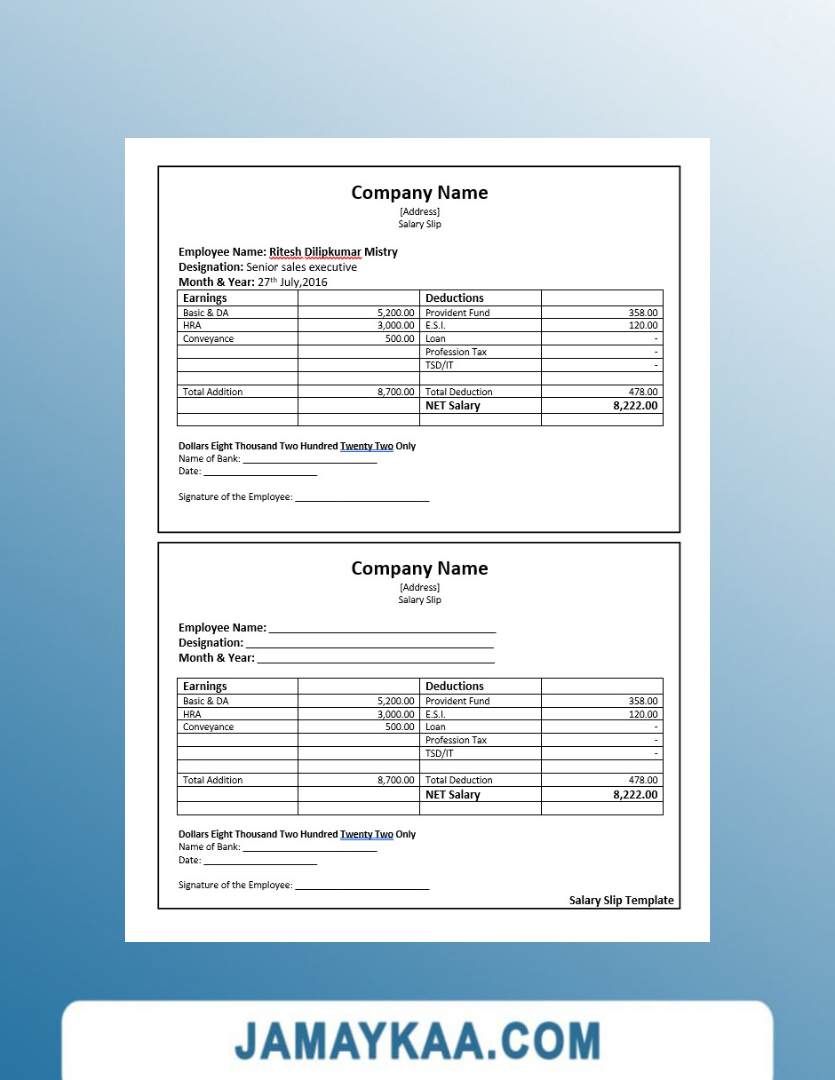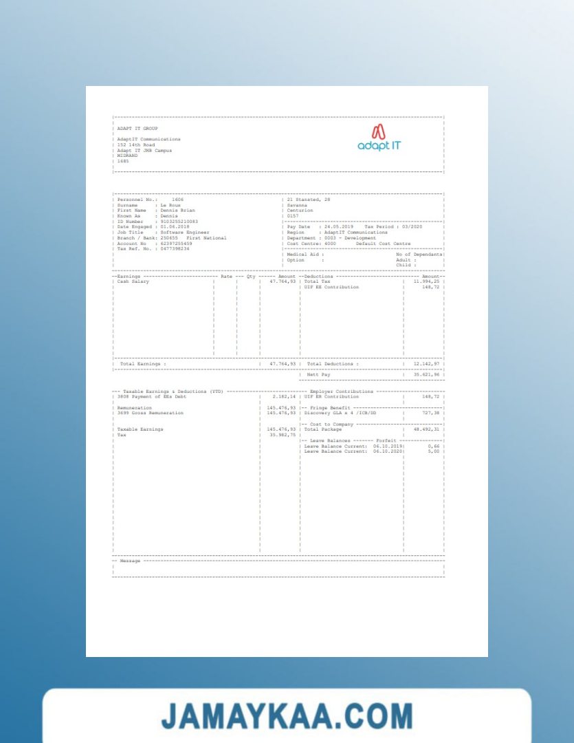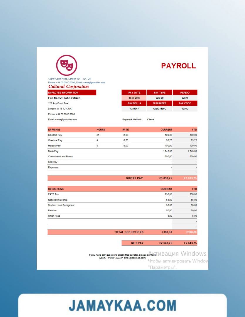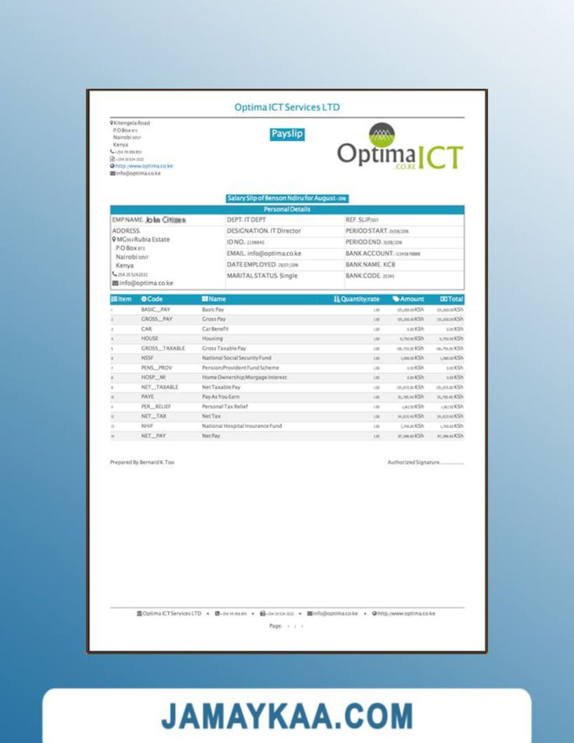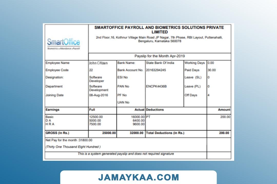 Controller and Accountant General's Department payslip template in Word
