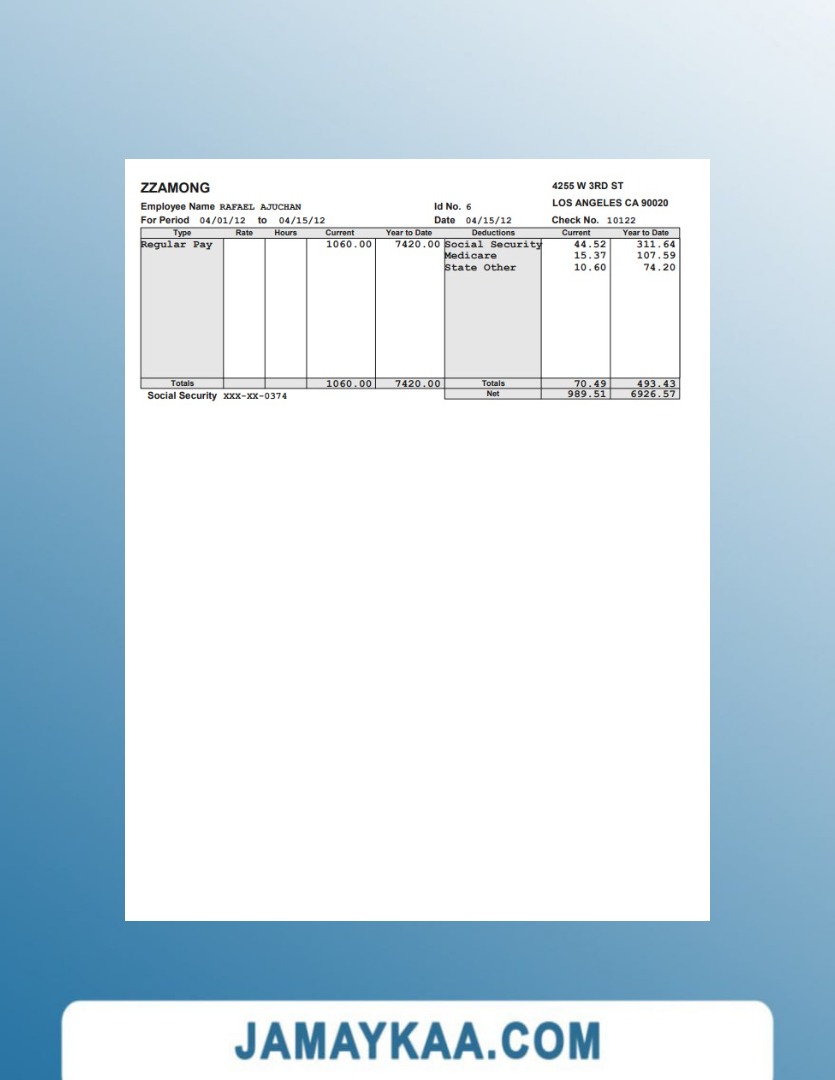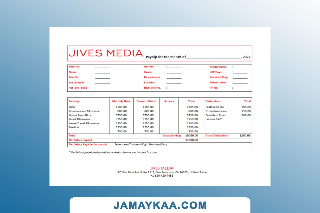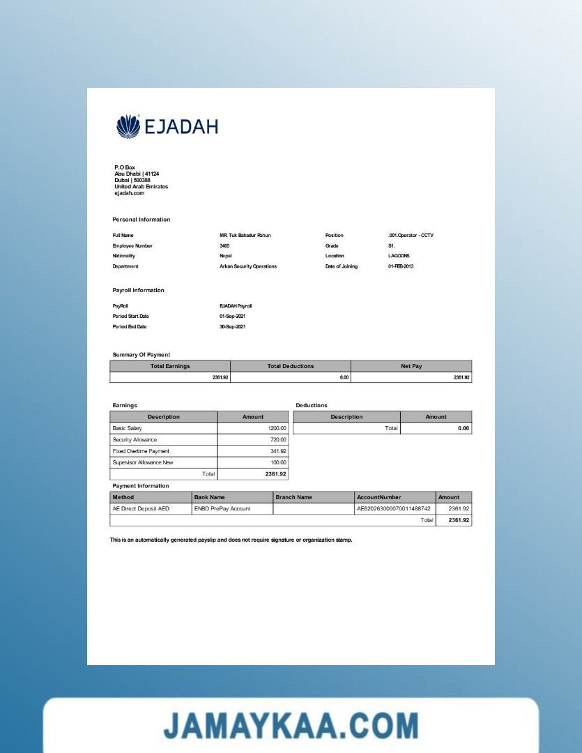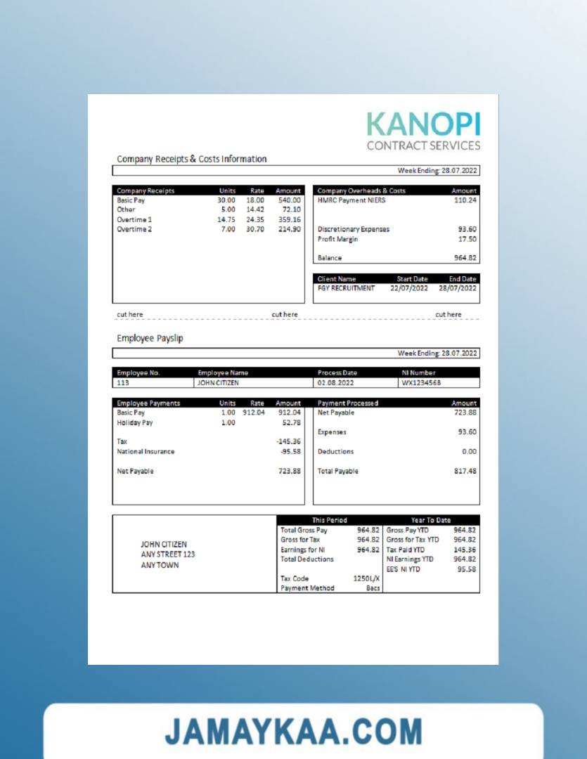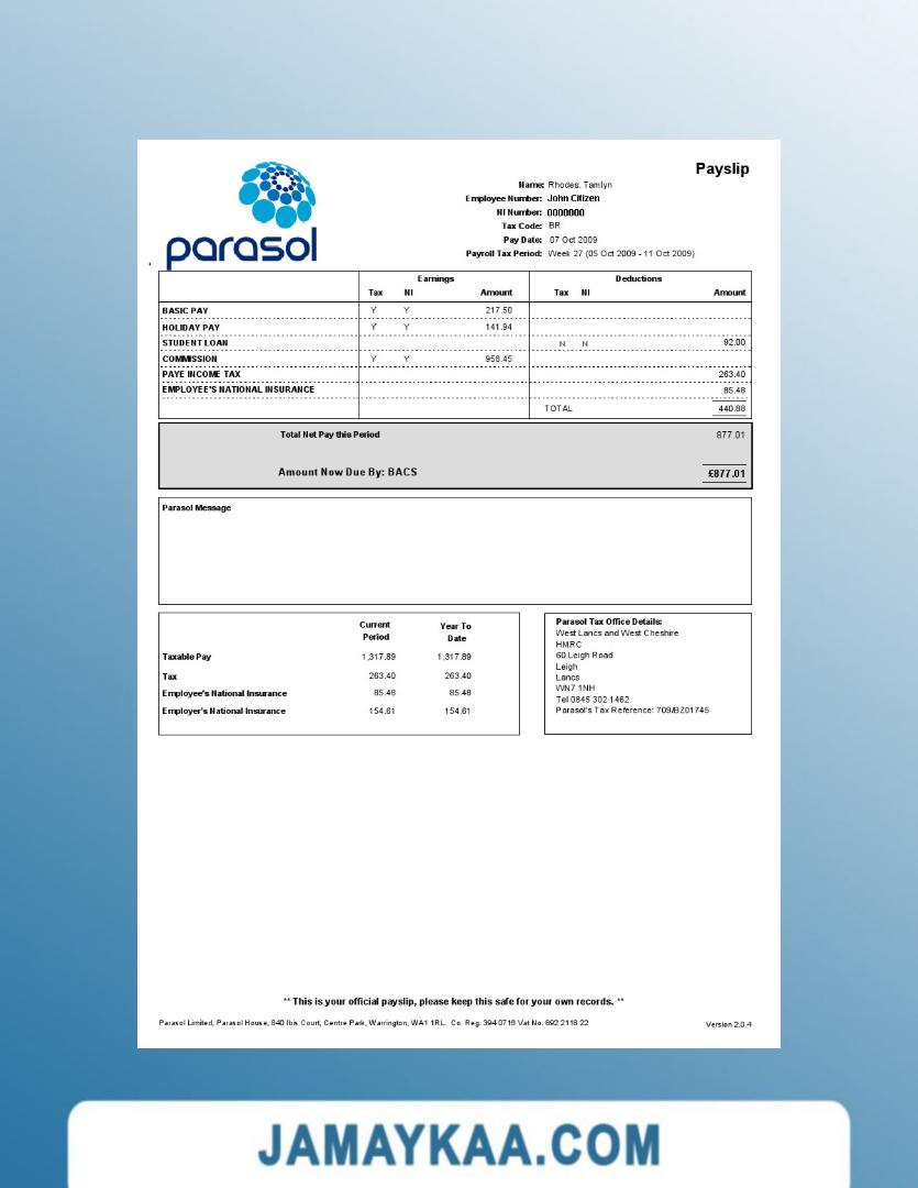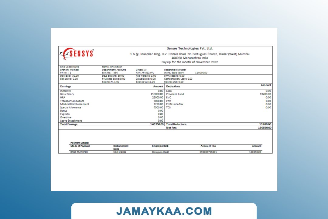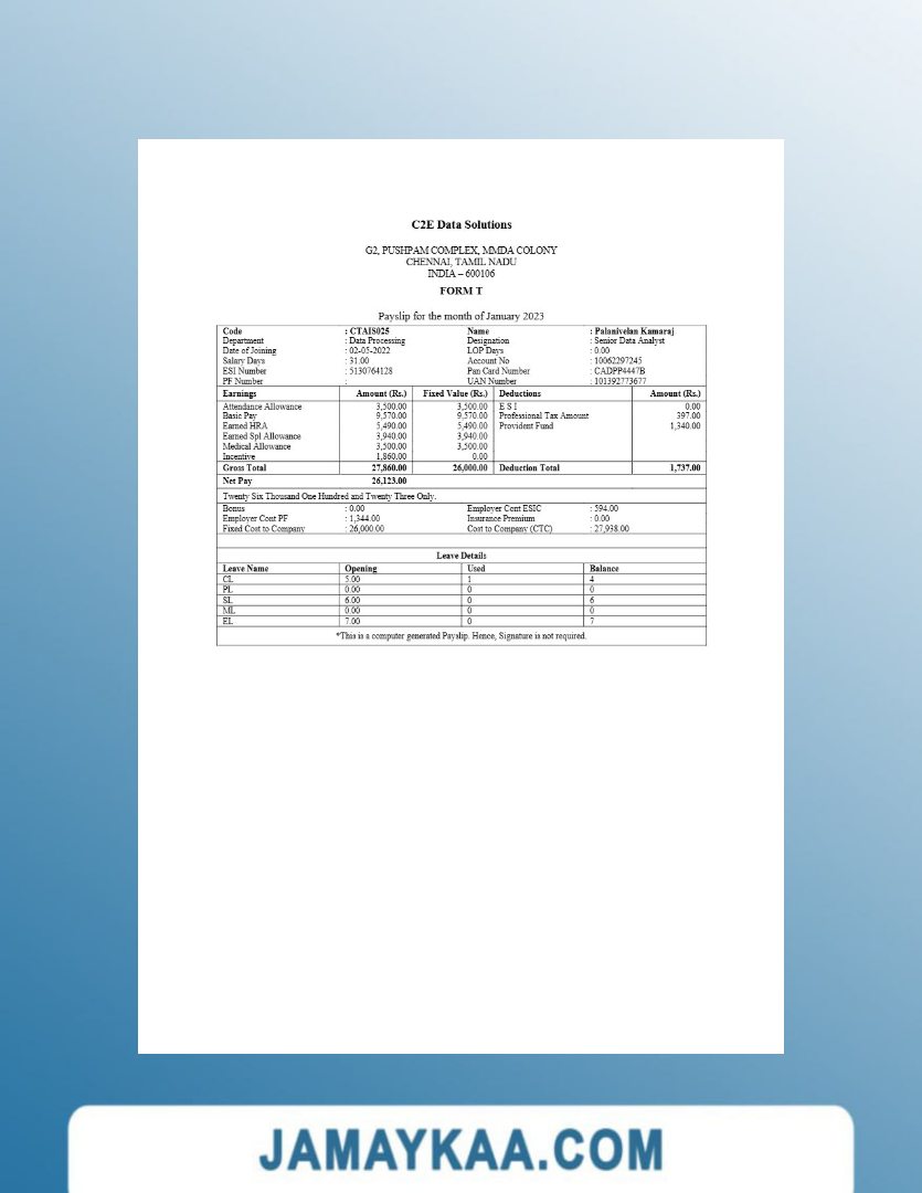 Controller and Accountant General's Department payslip template in Word