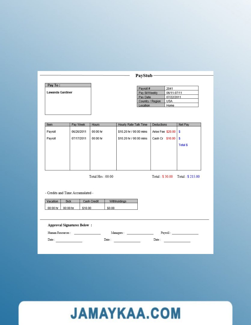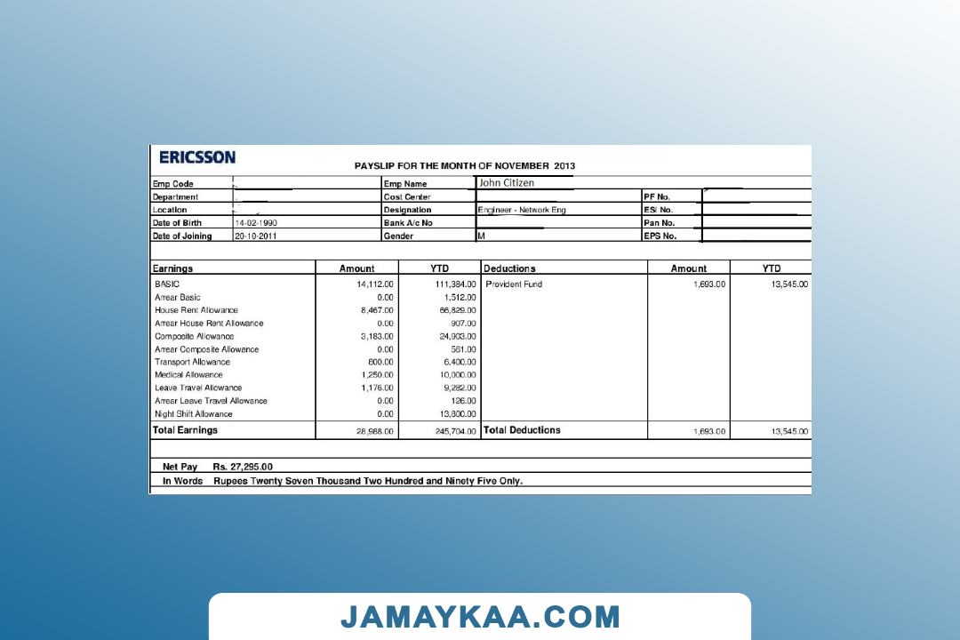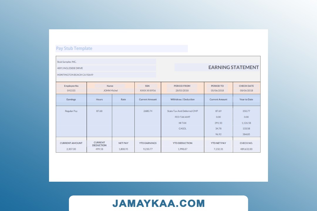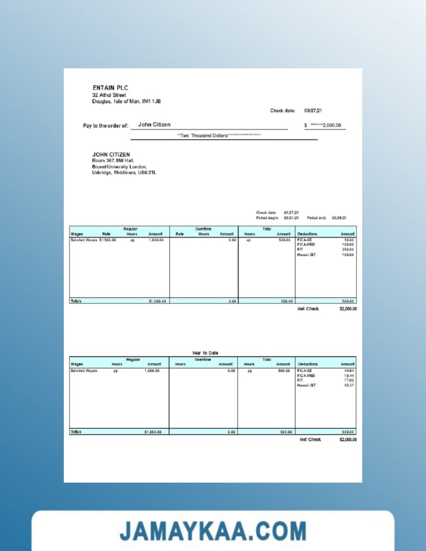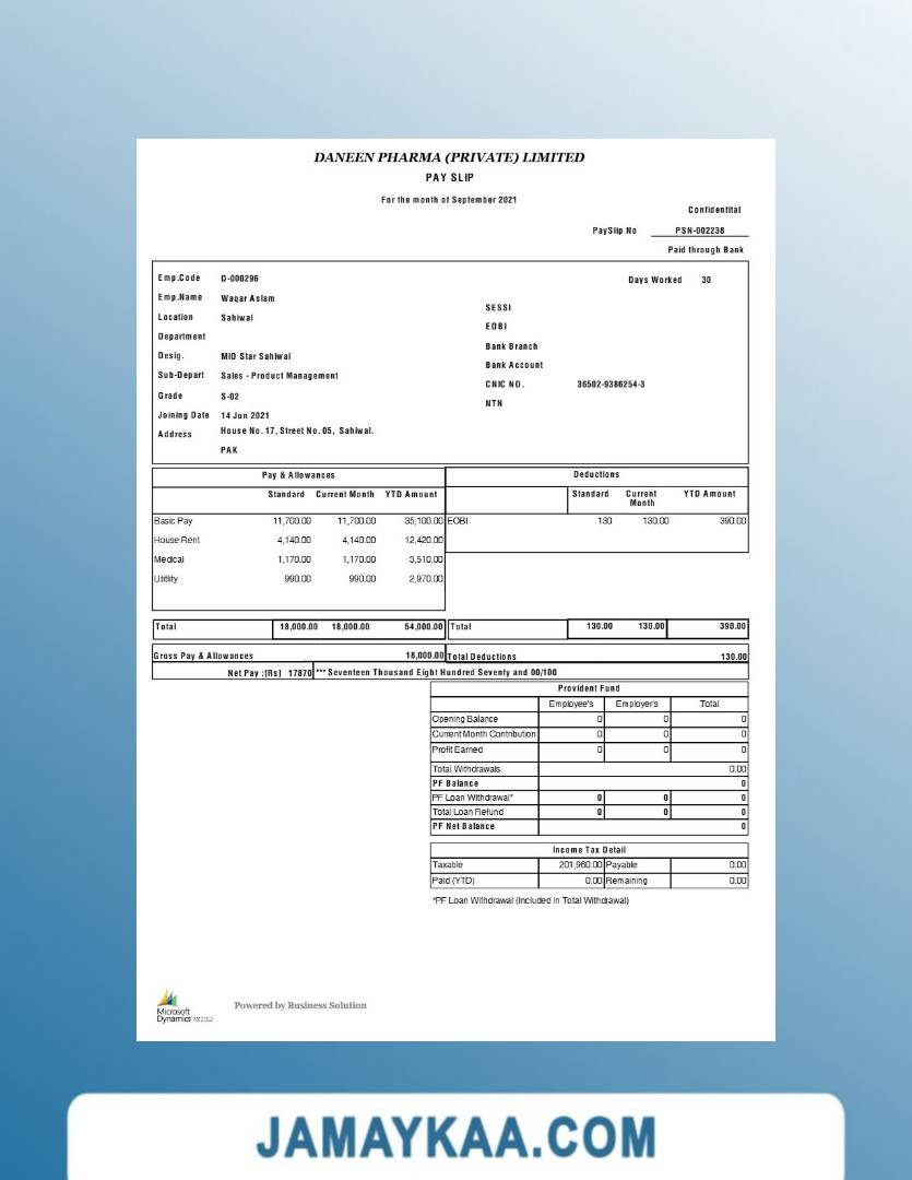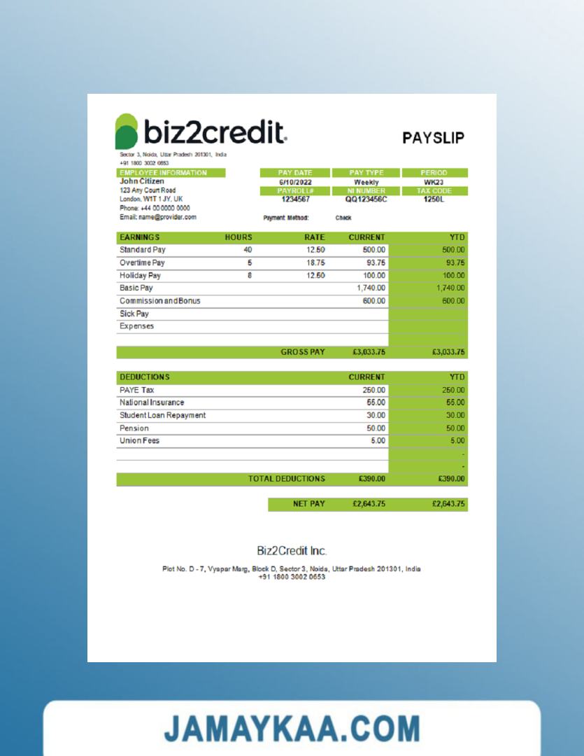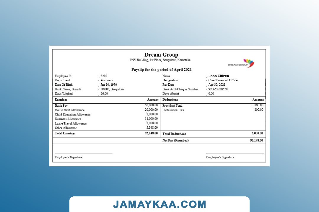 Controller and Accountant General's Department payslip template in Word