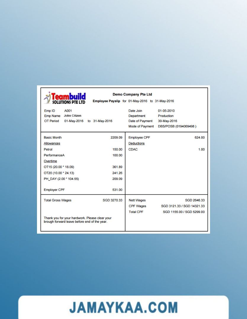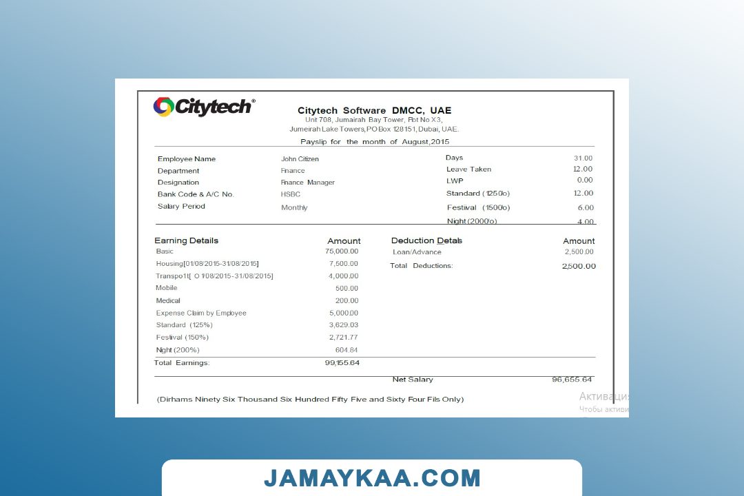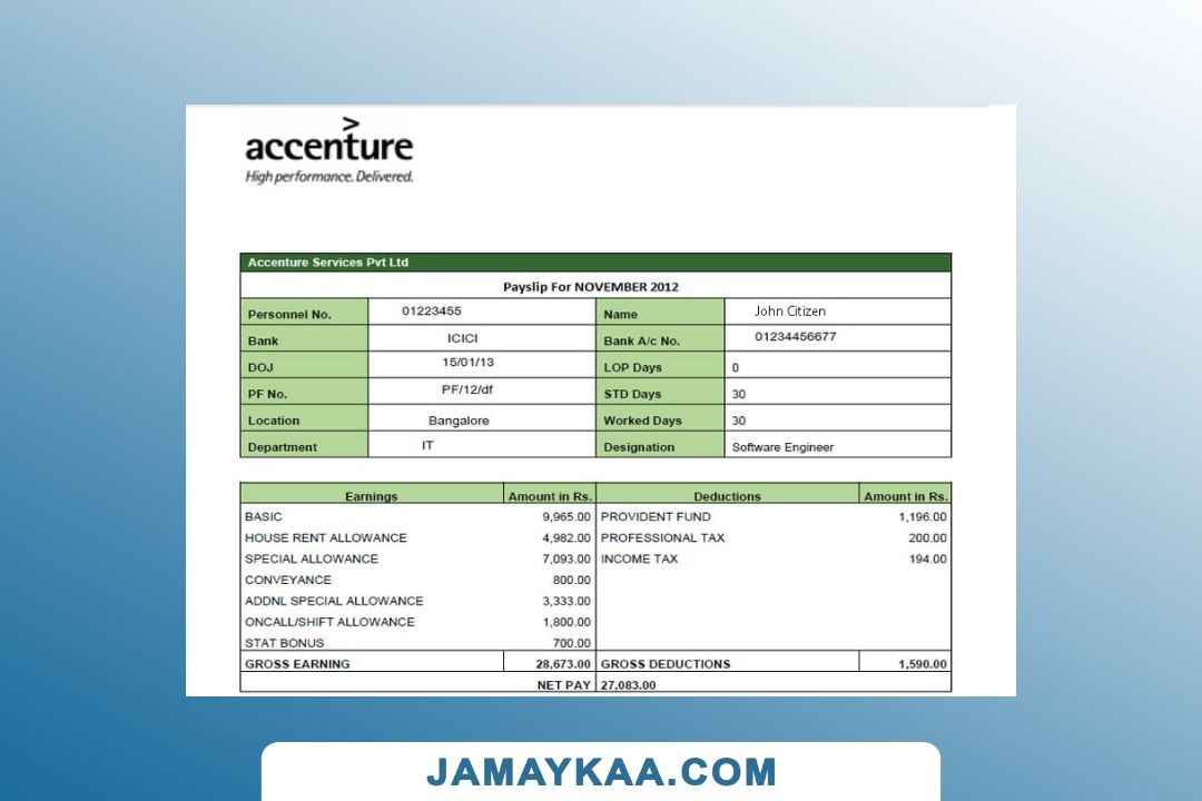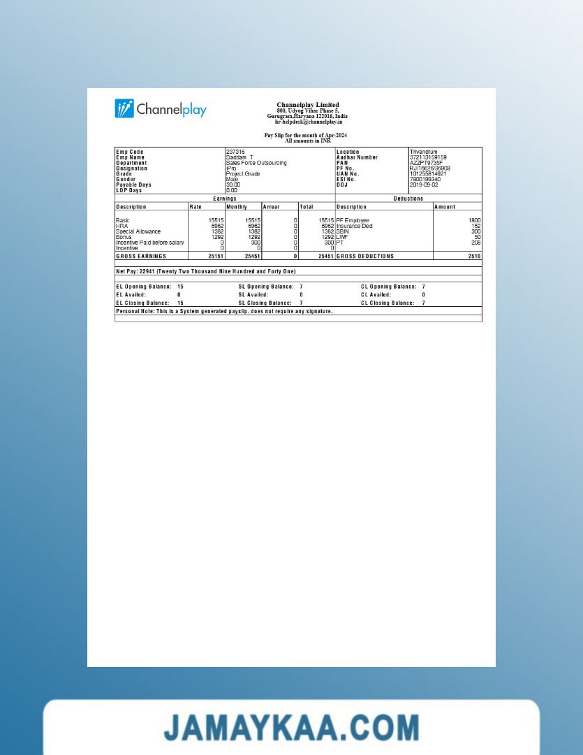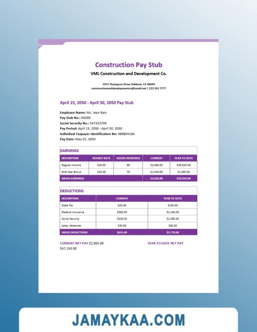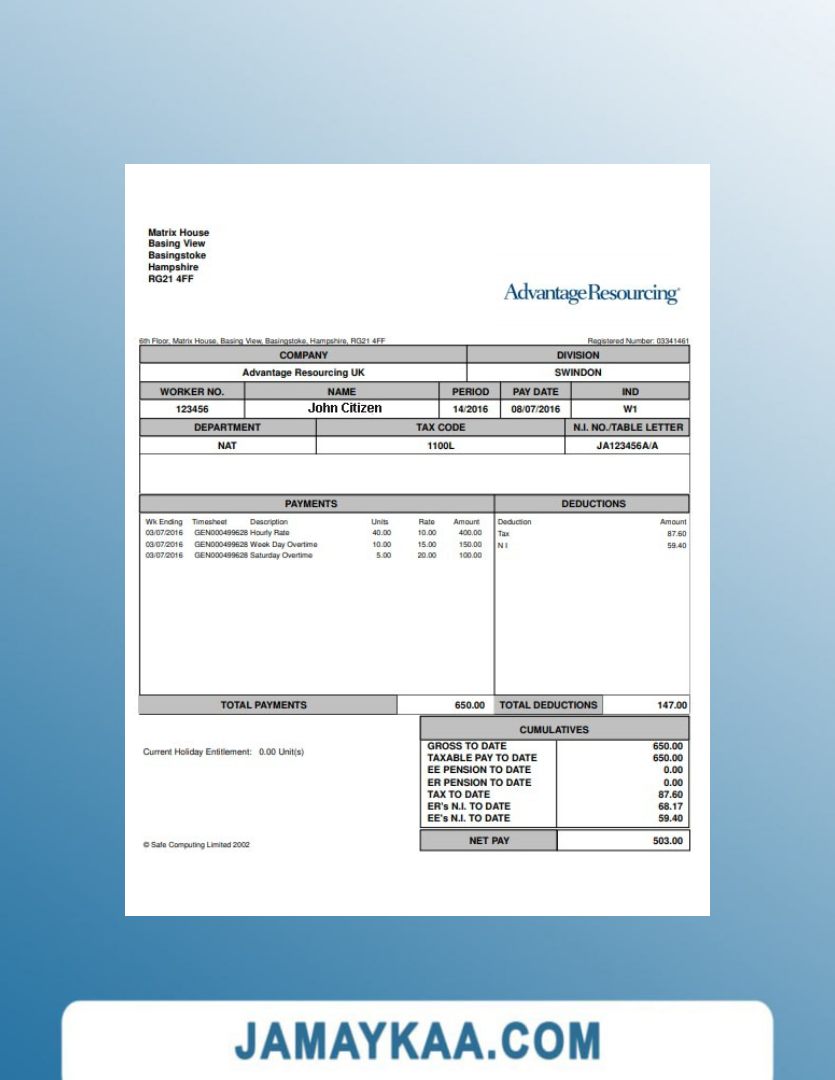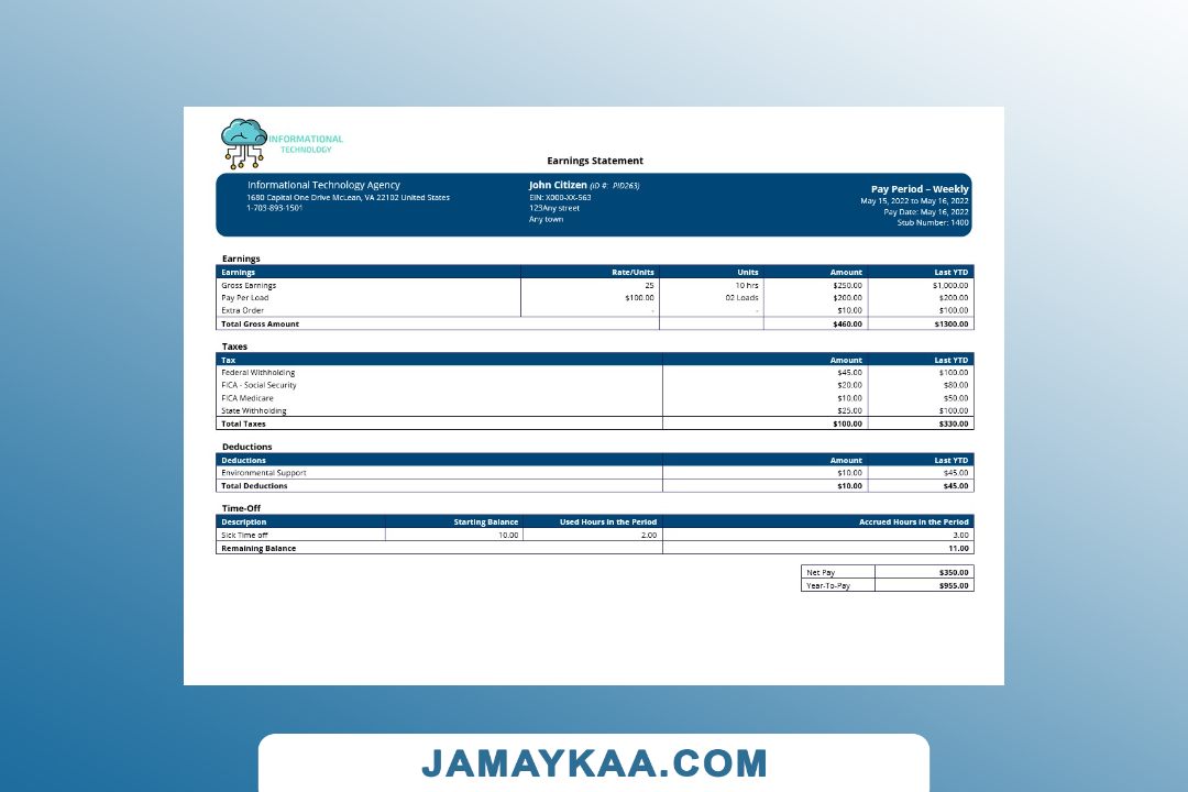 Controller and Accountant General's Department payslip template in Word