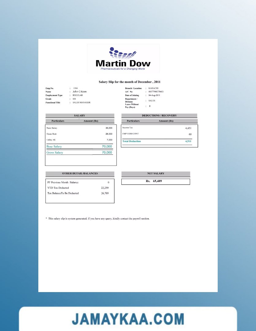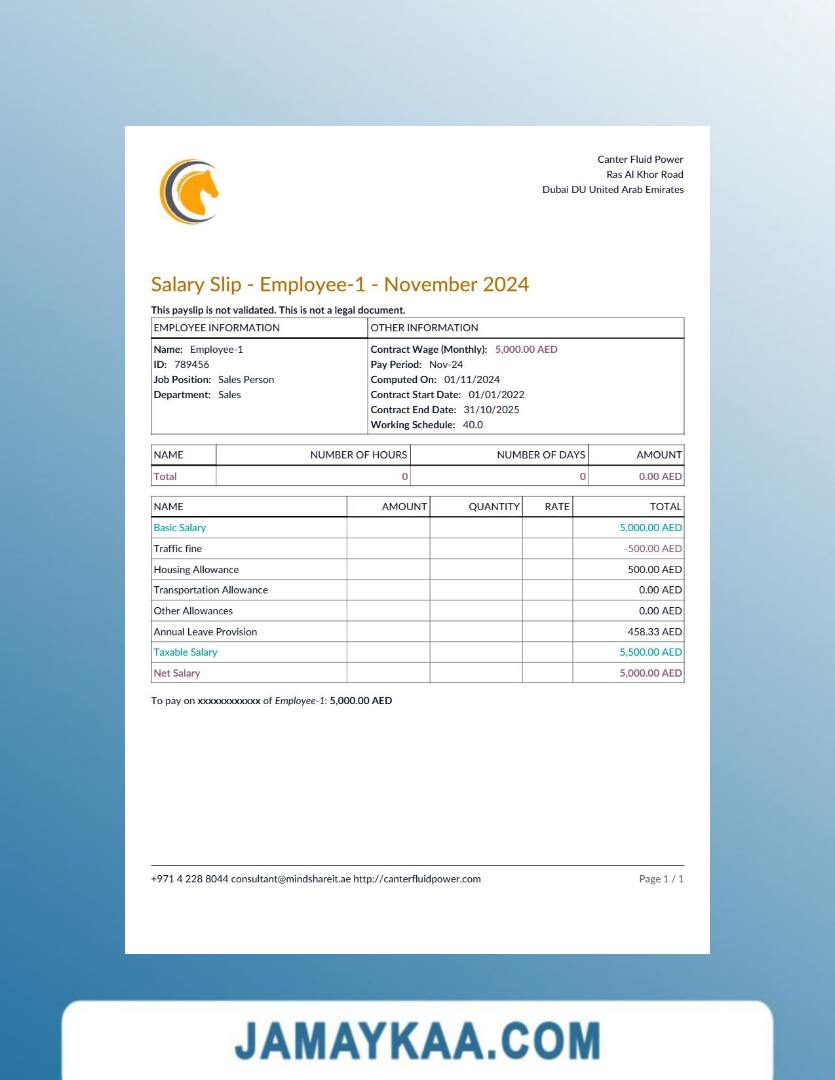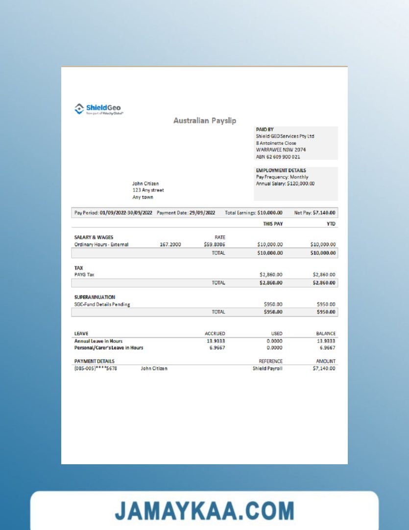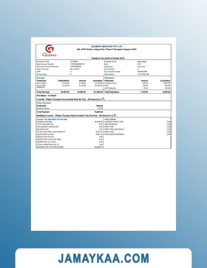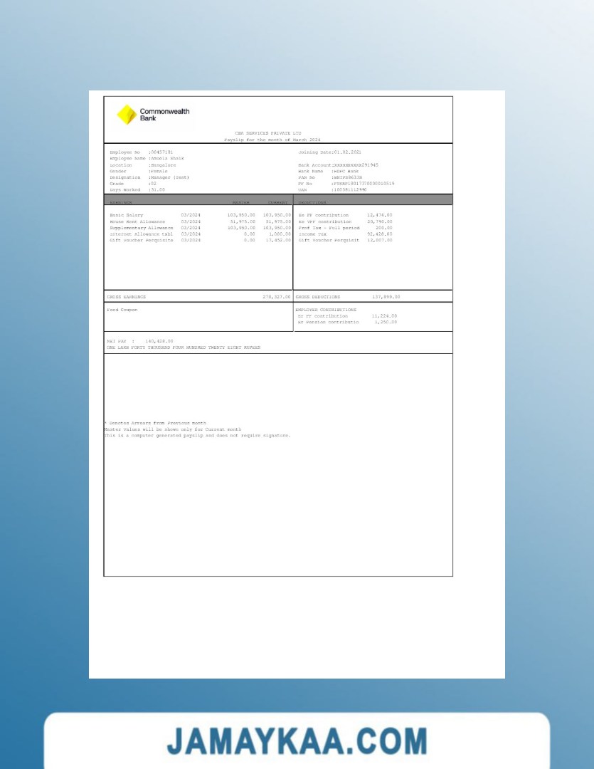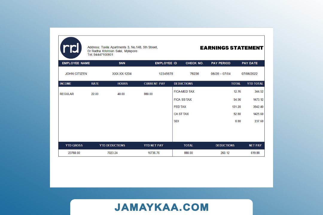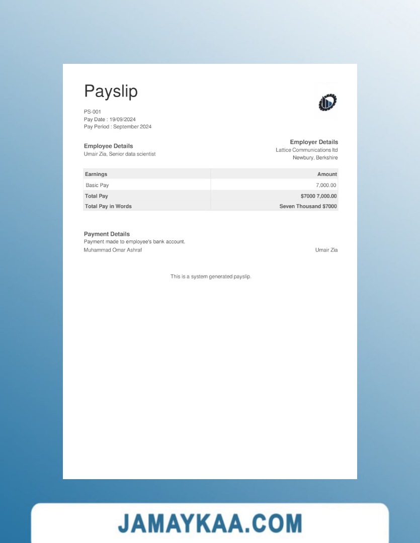 Controller and Accountant General's Department payslip template in Word