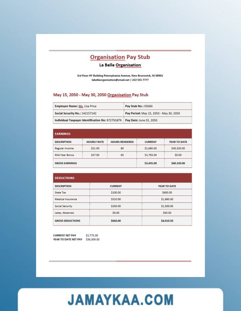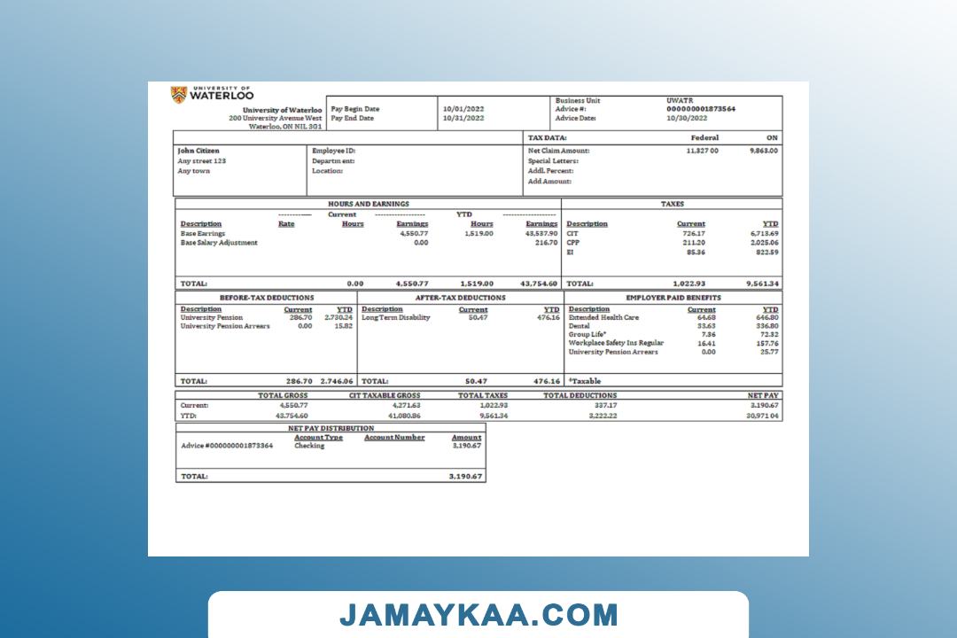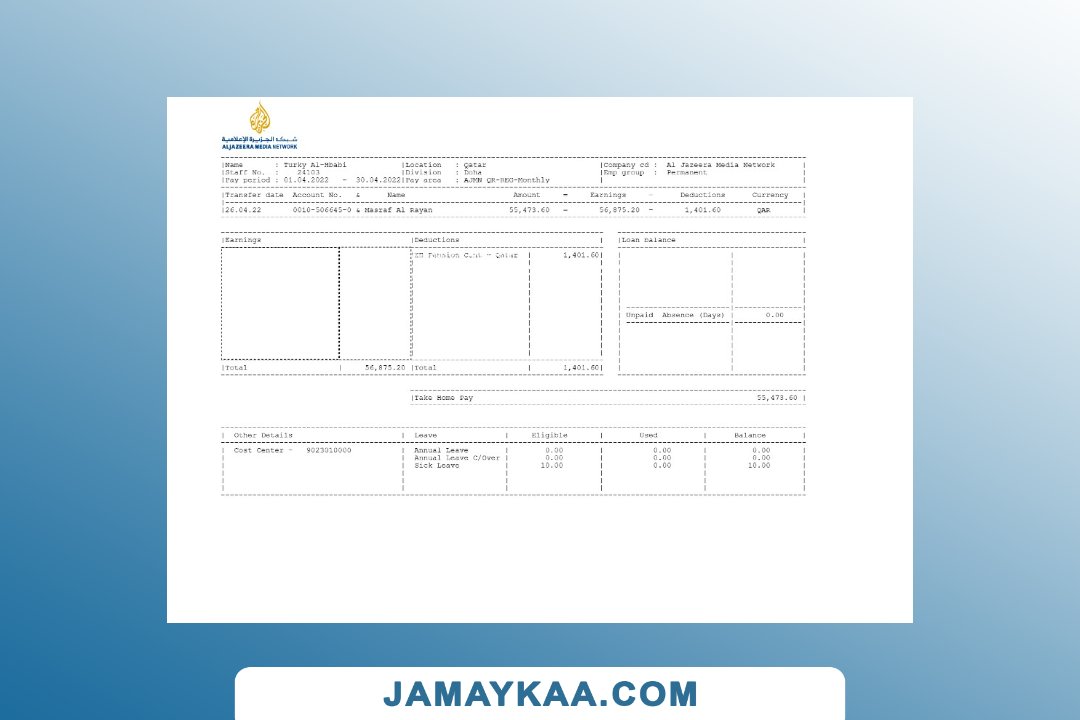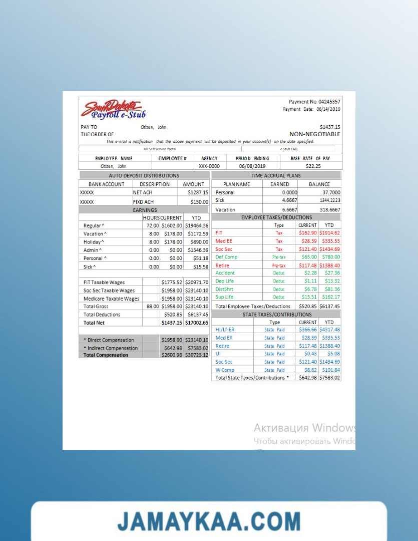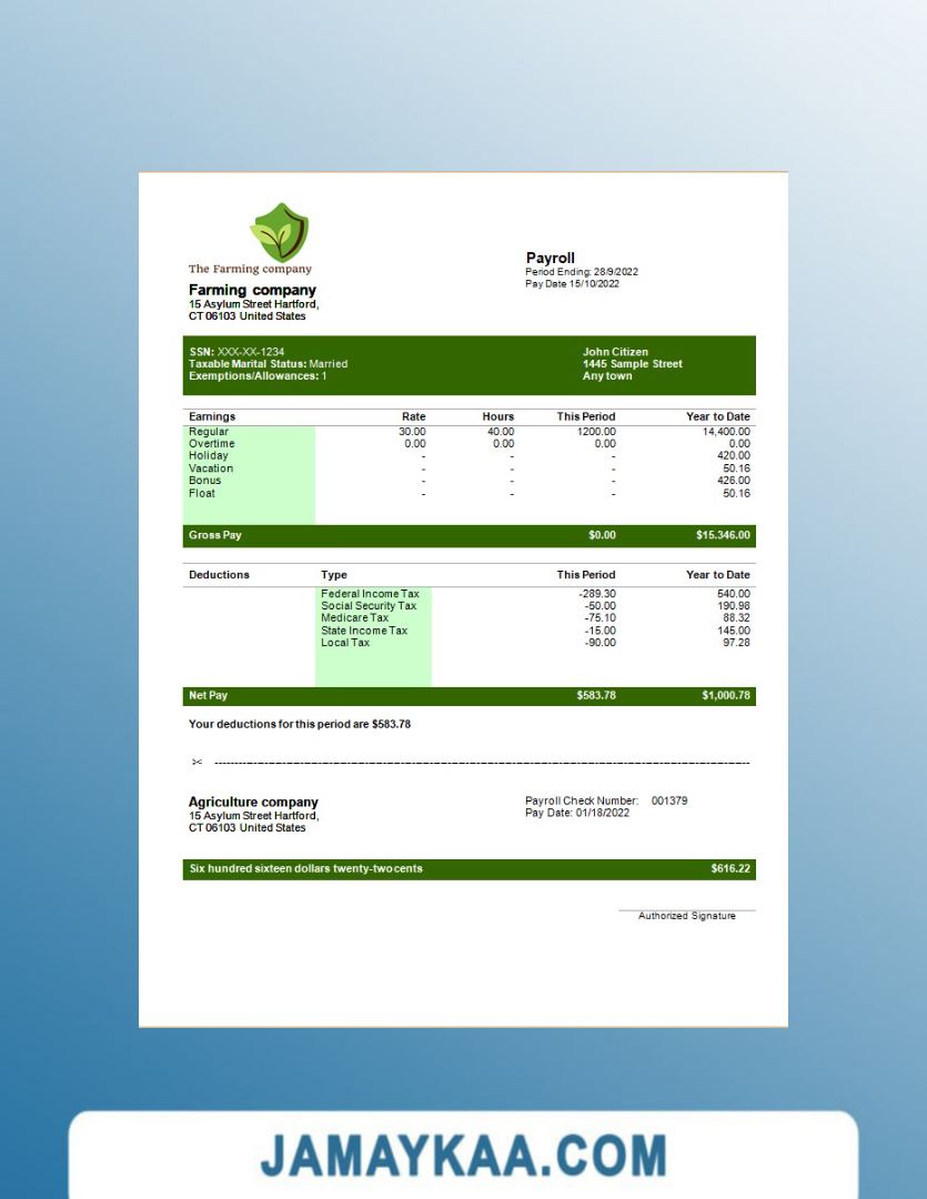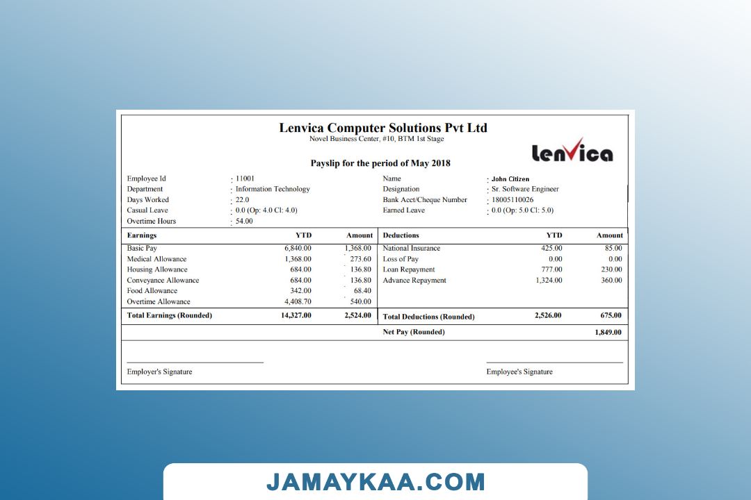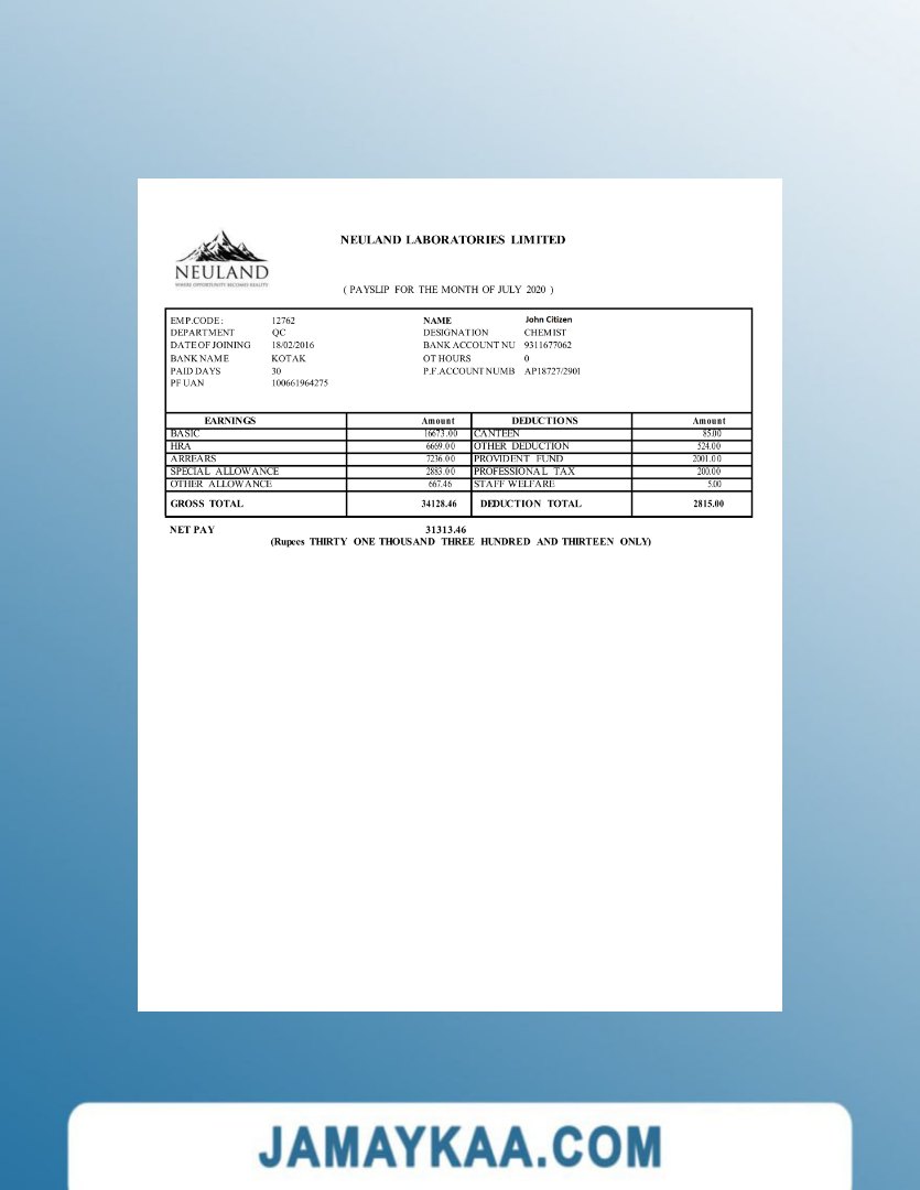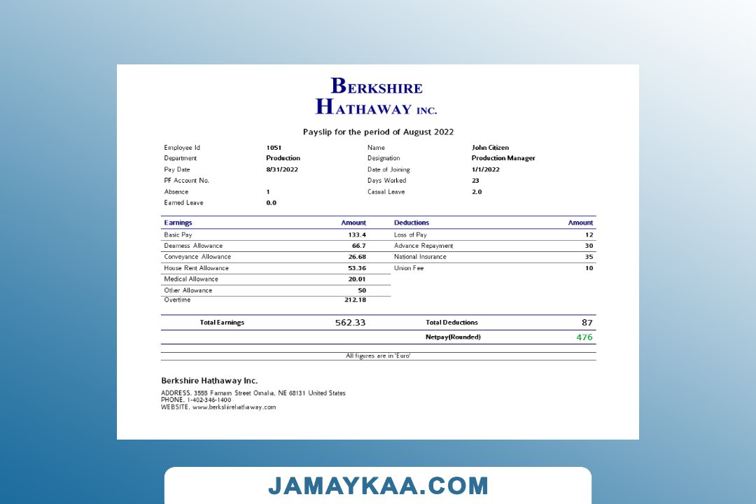 Controller and Accountant General's Department payslip template in Word