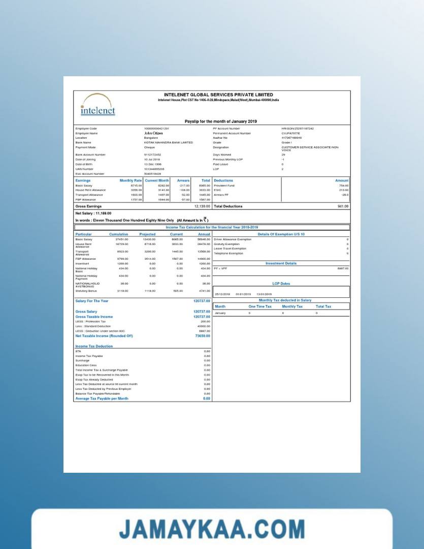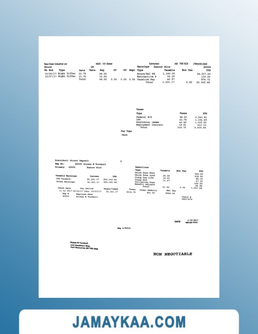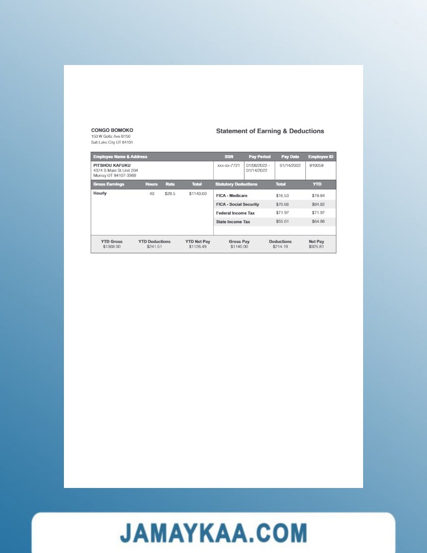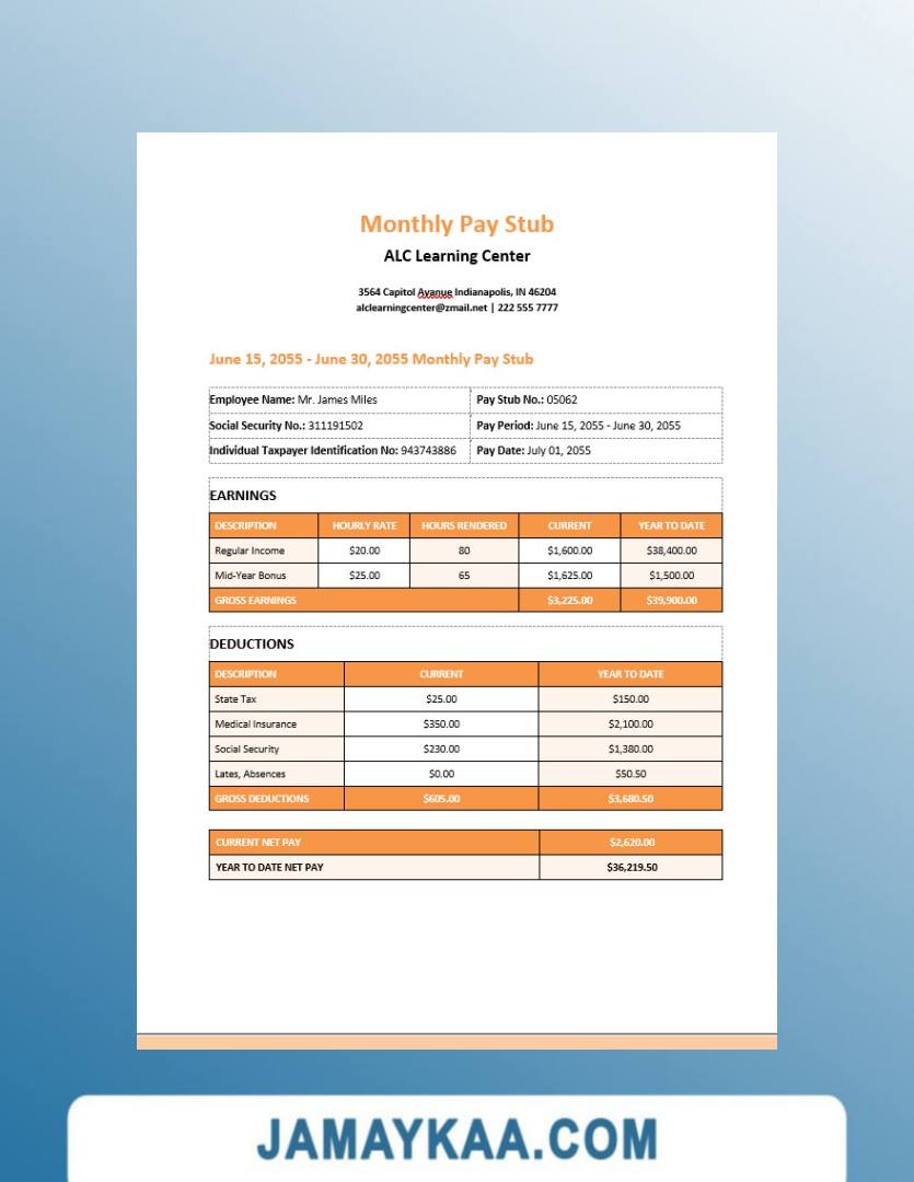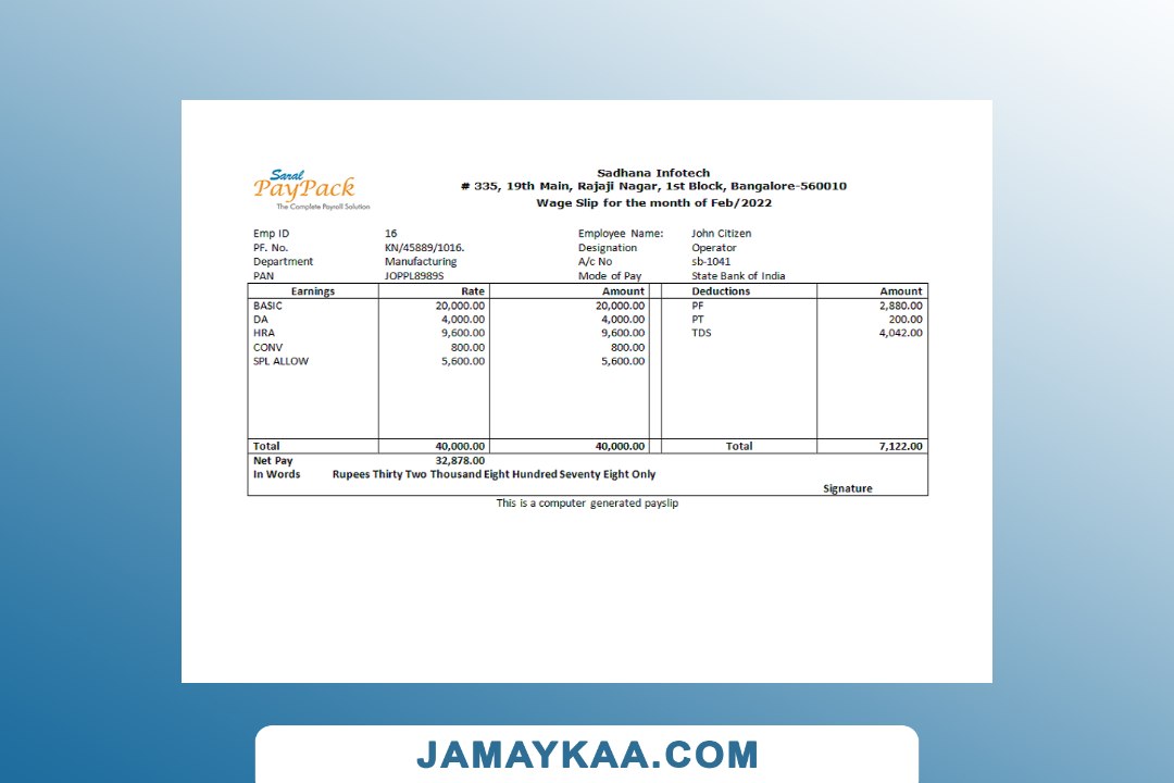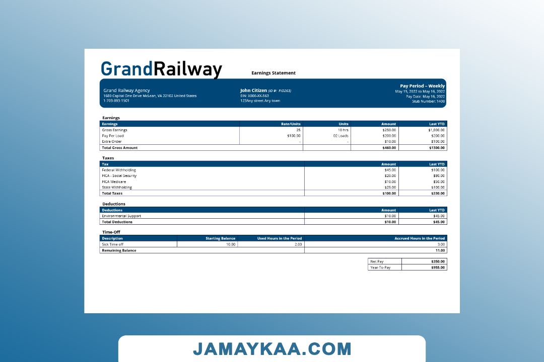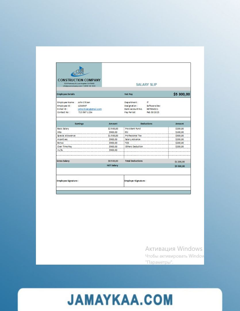 Controller and Accountant General's Department payslip template in Word
