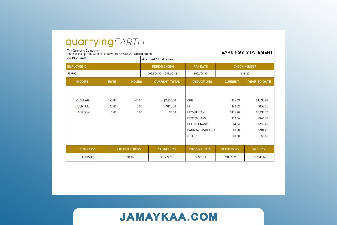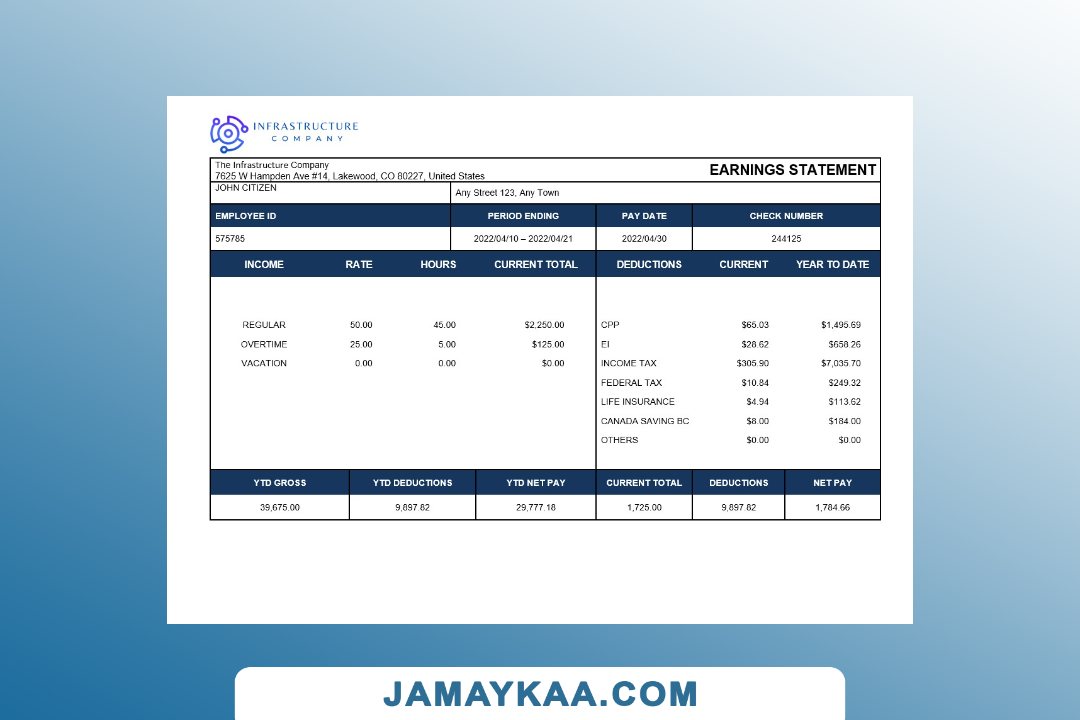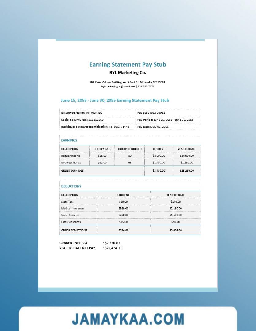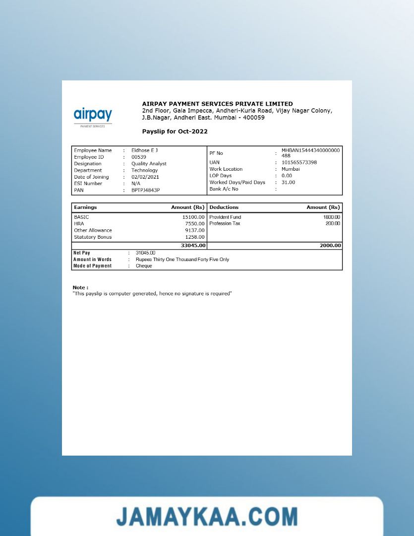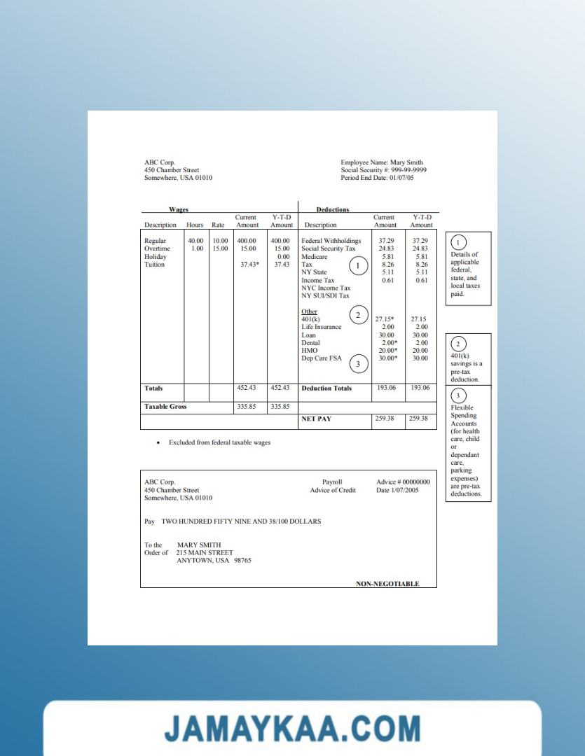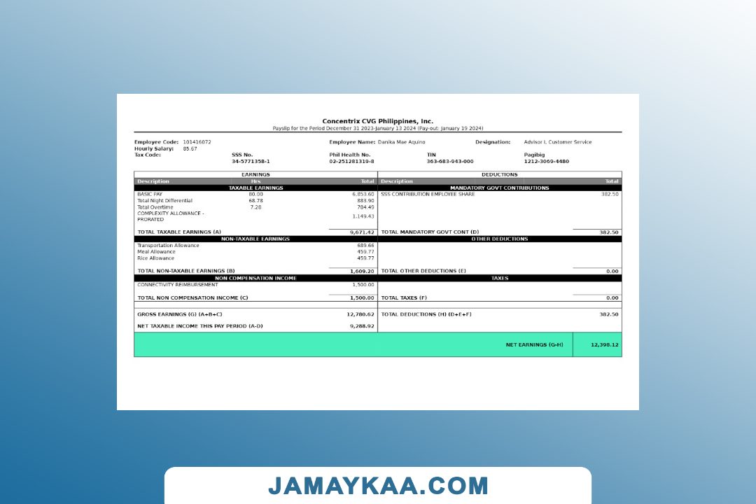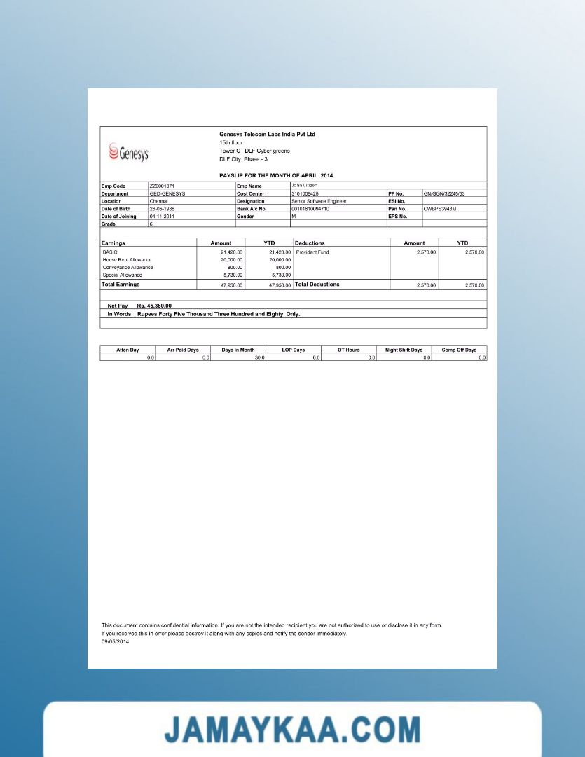 Controller and Accountant General's Department payslip template in Word