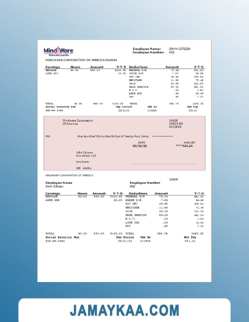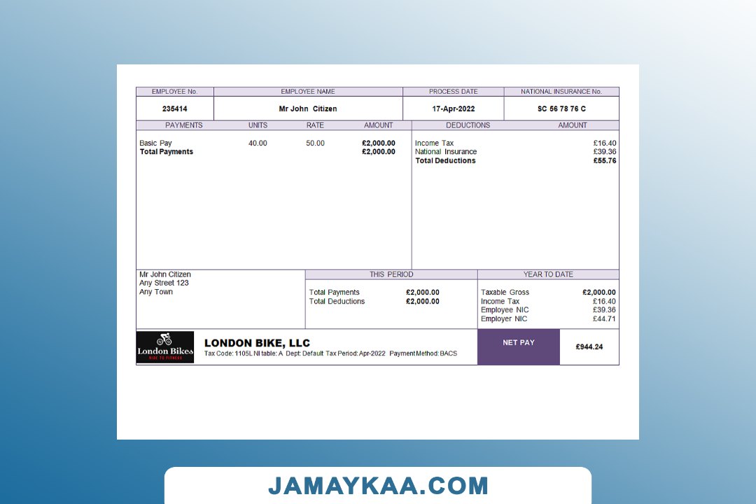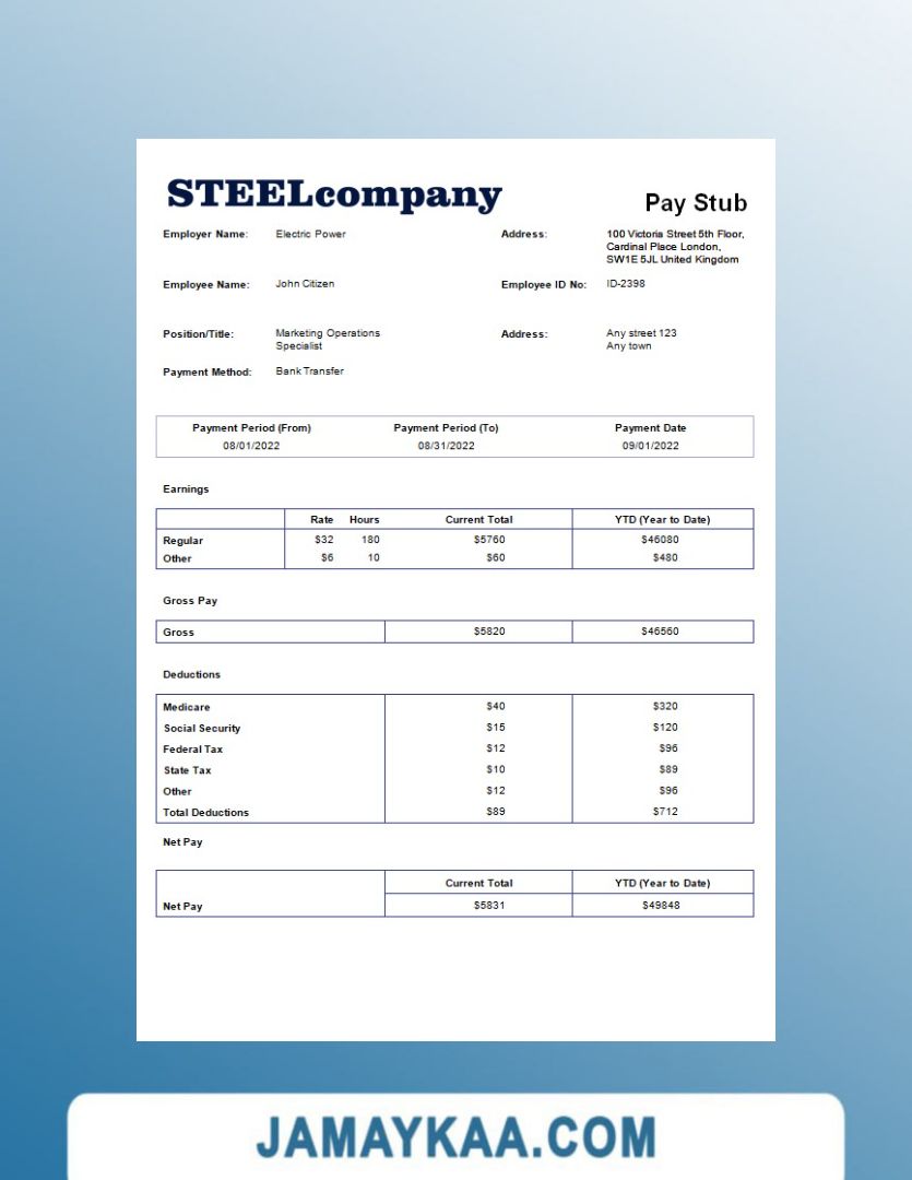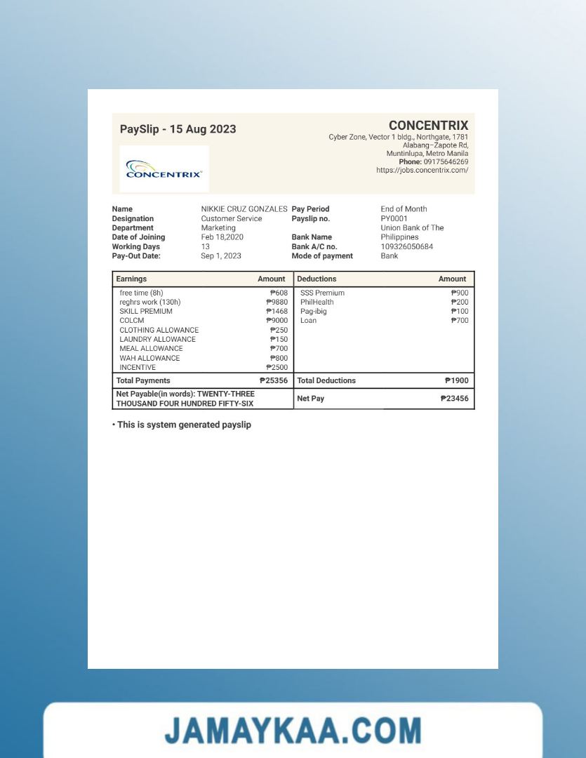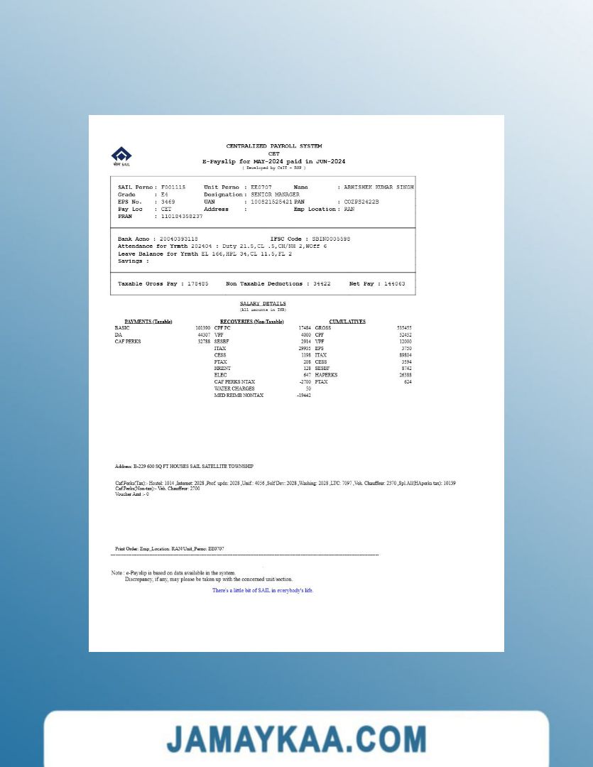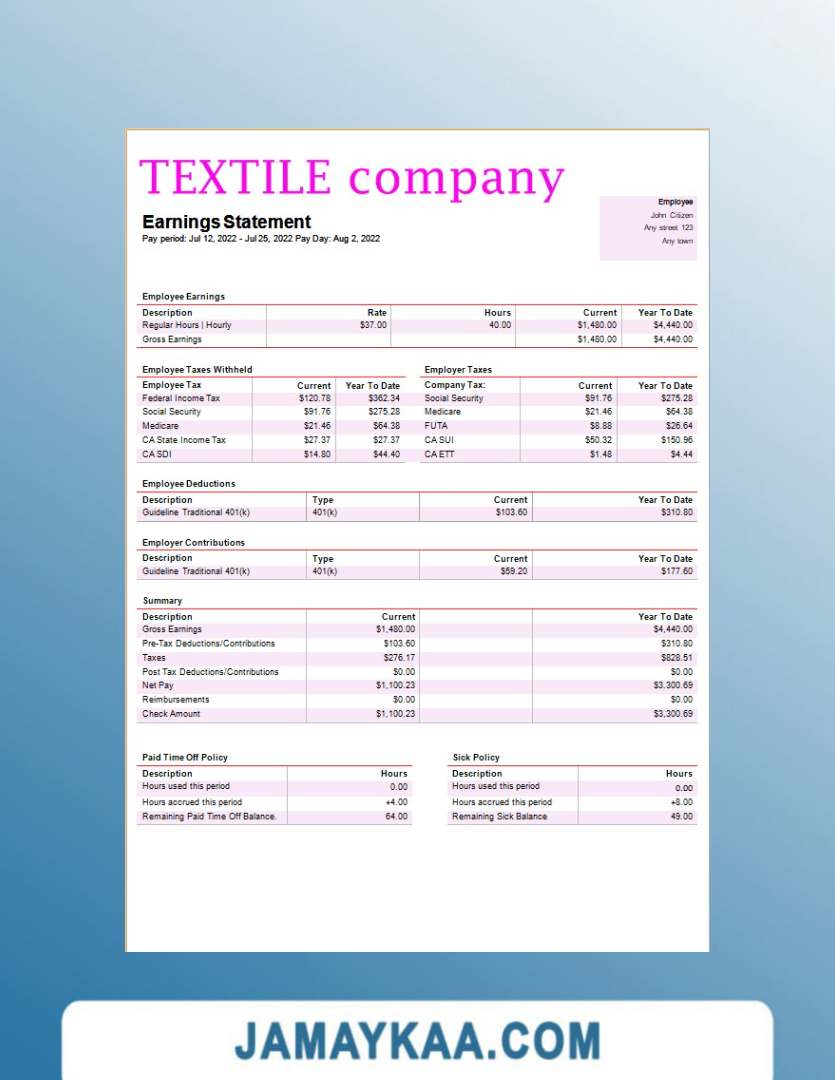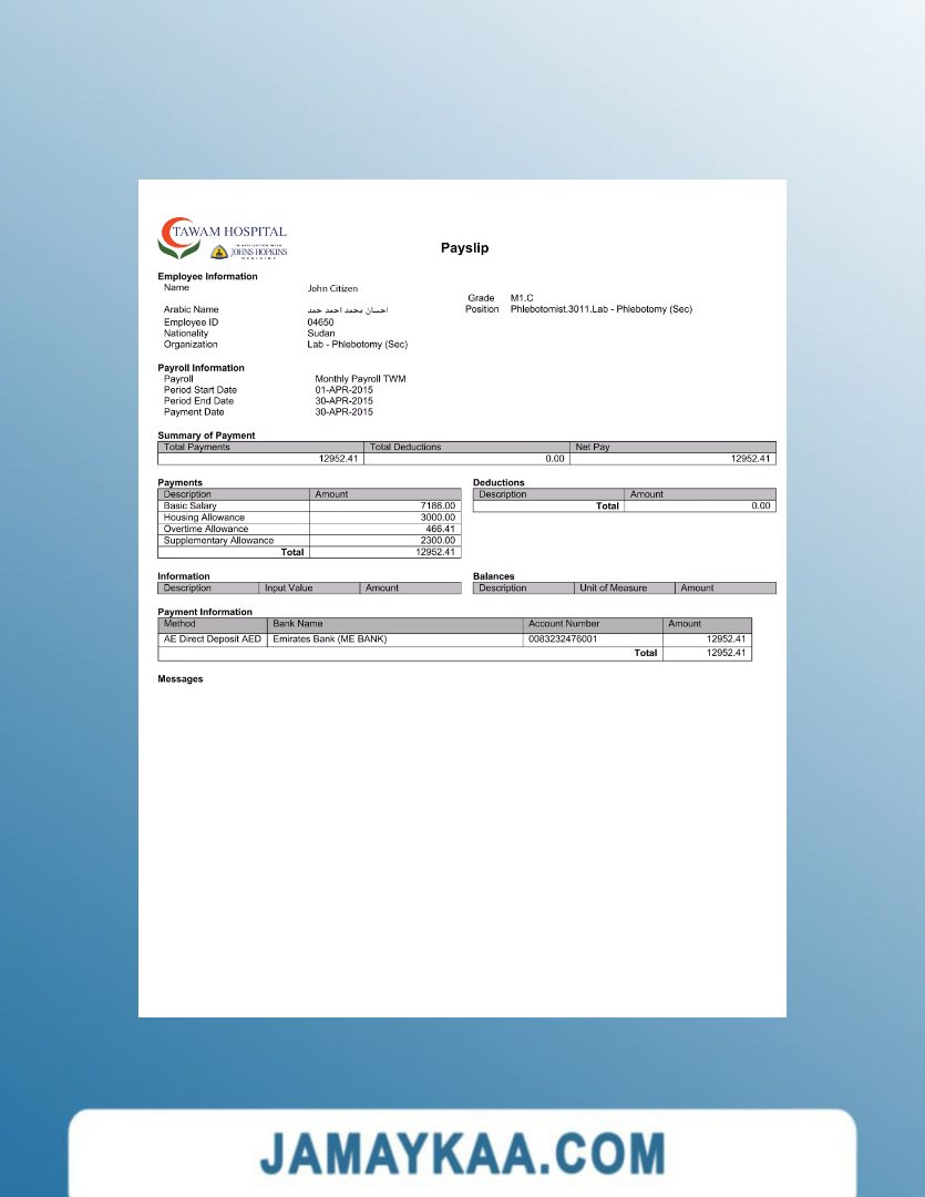 Controller and Accountant General's Department payslip template in Word