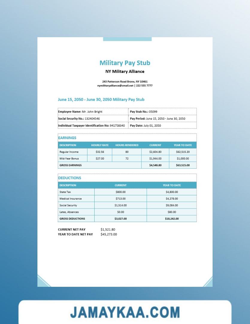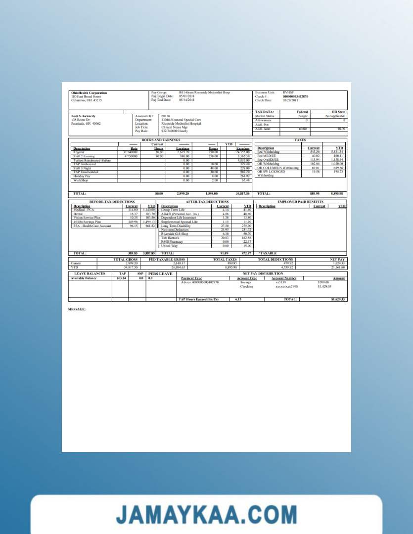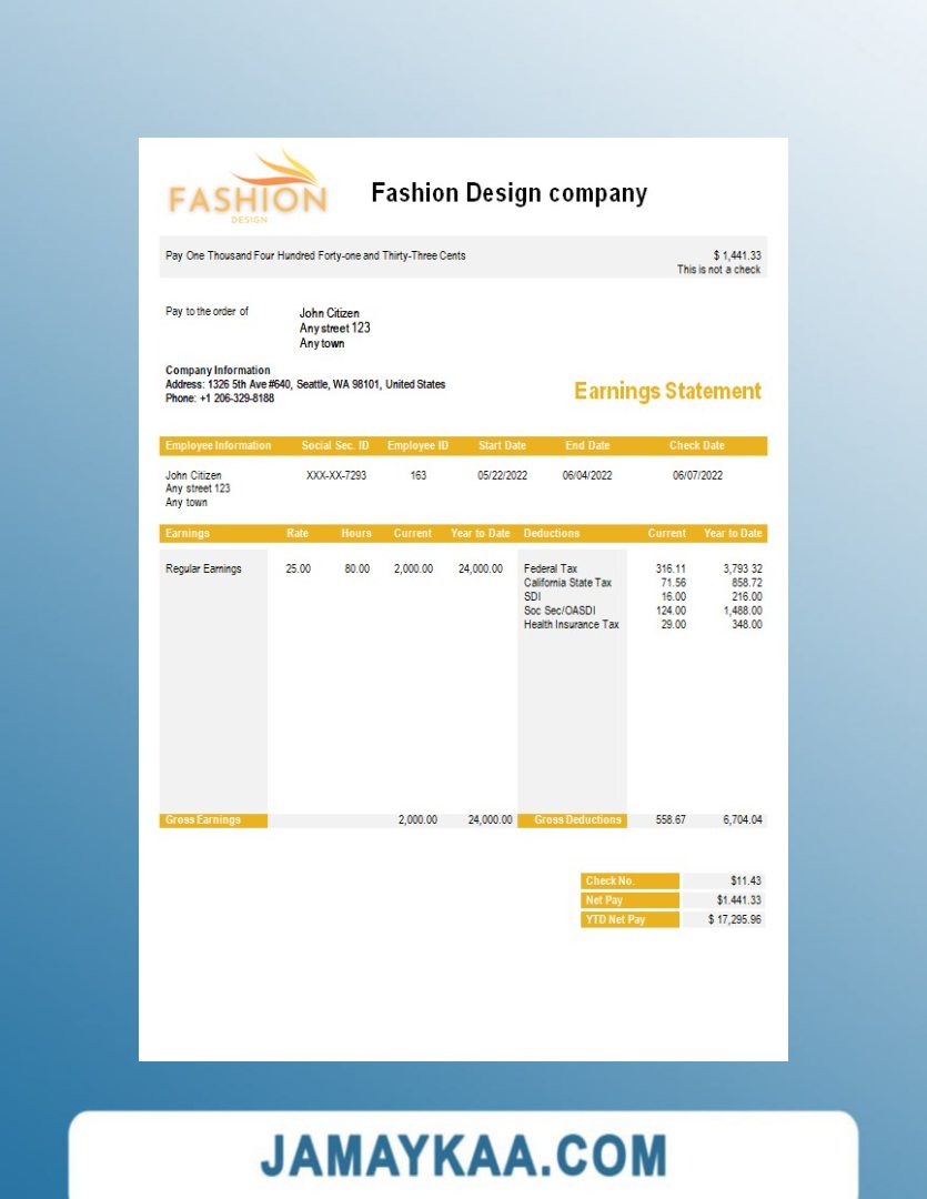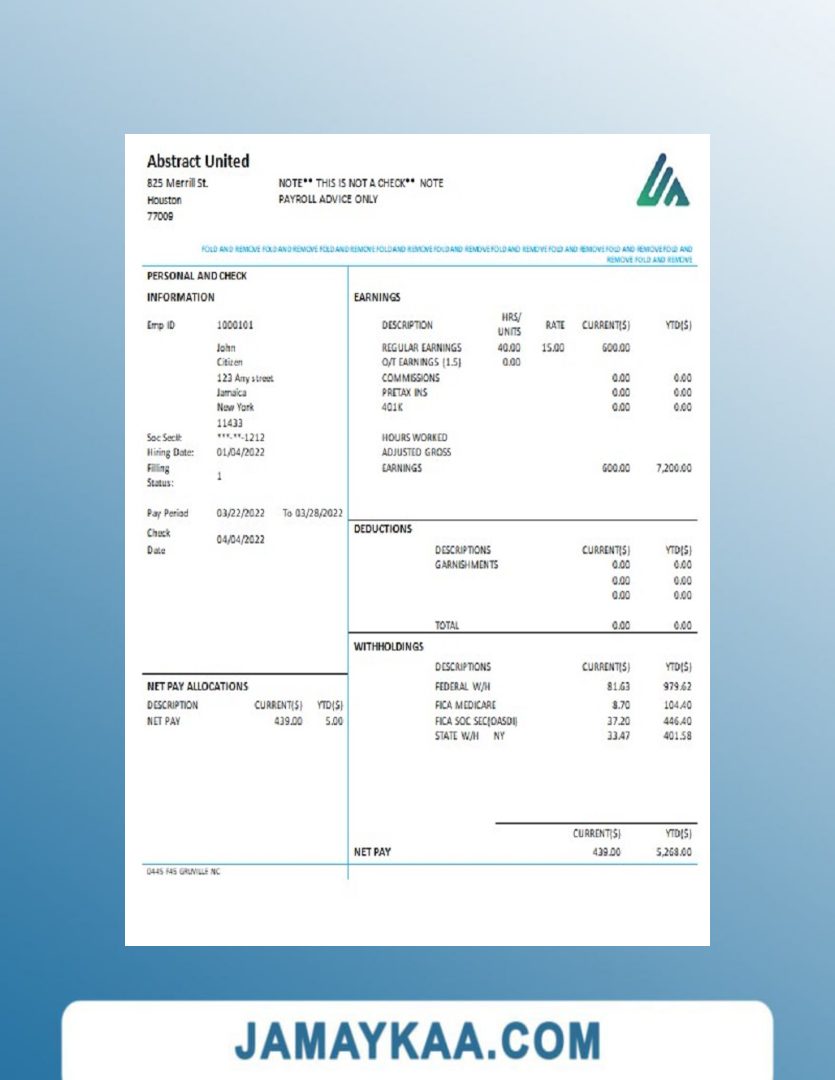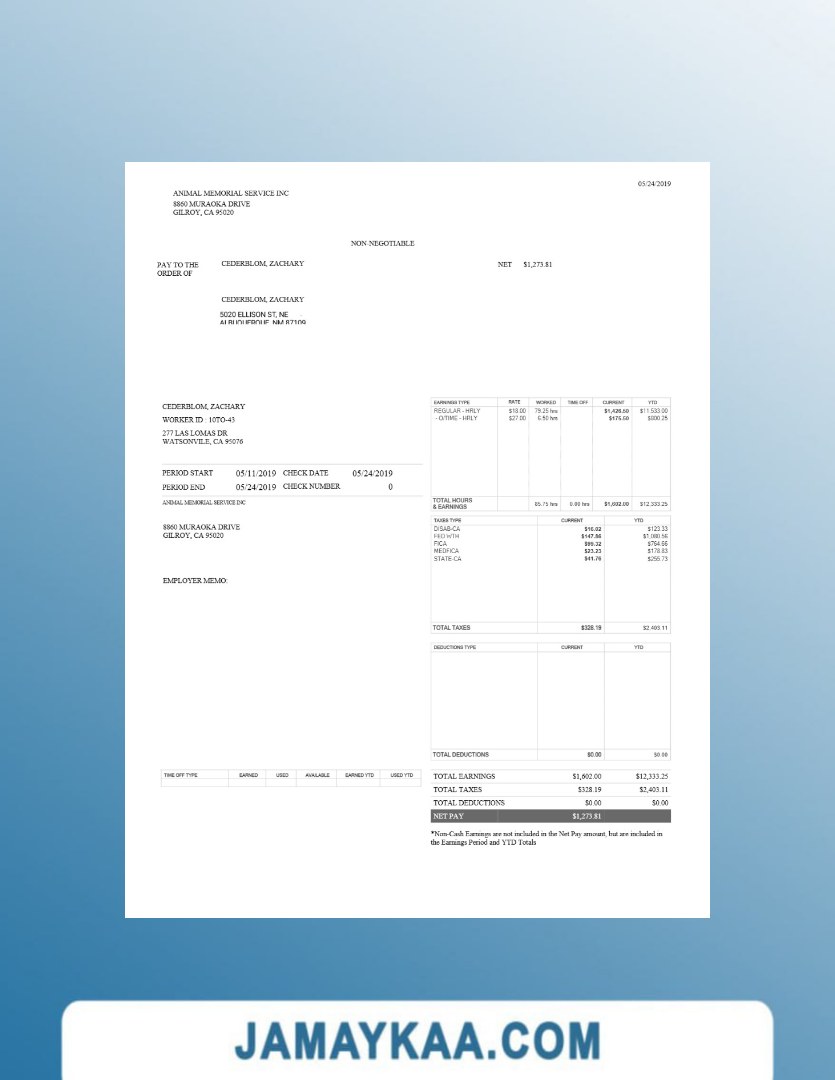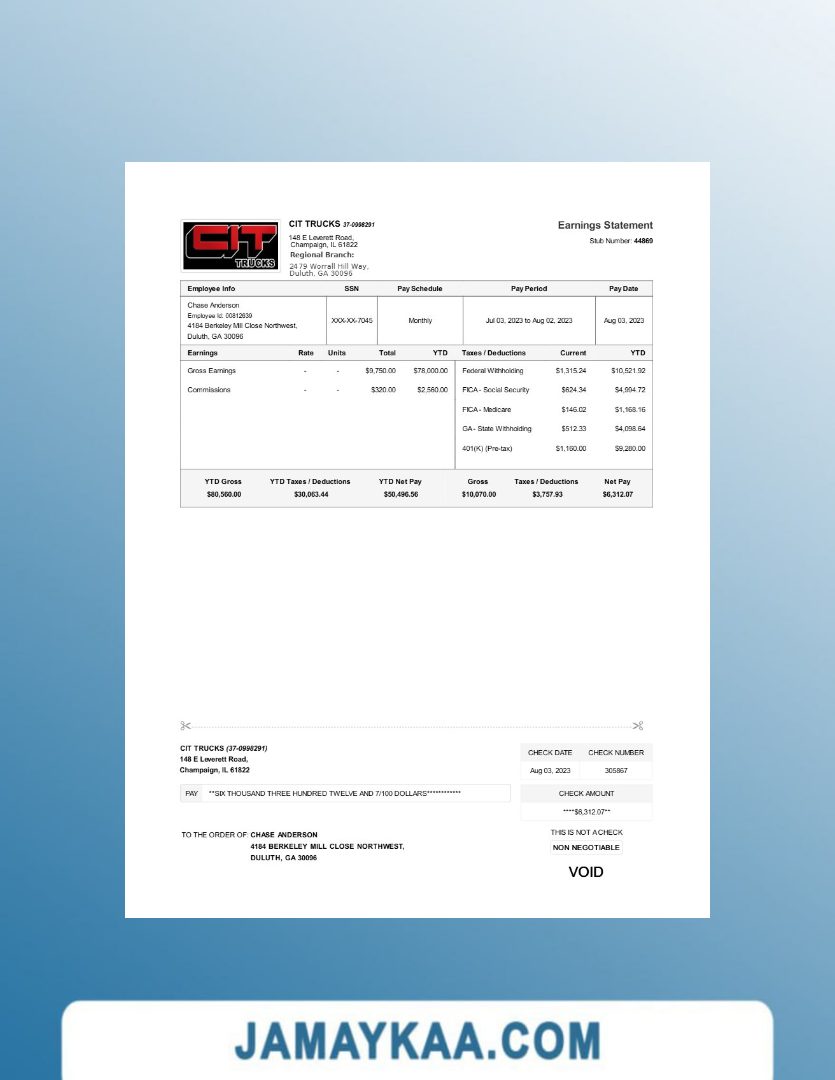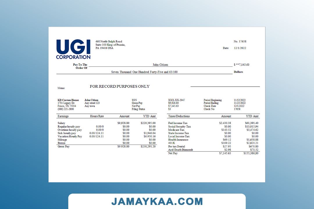 Controller and Accountant General's Department payslip template in Word