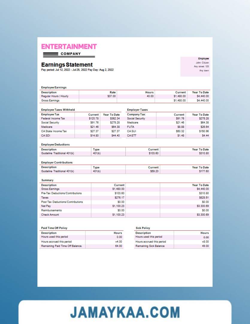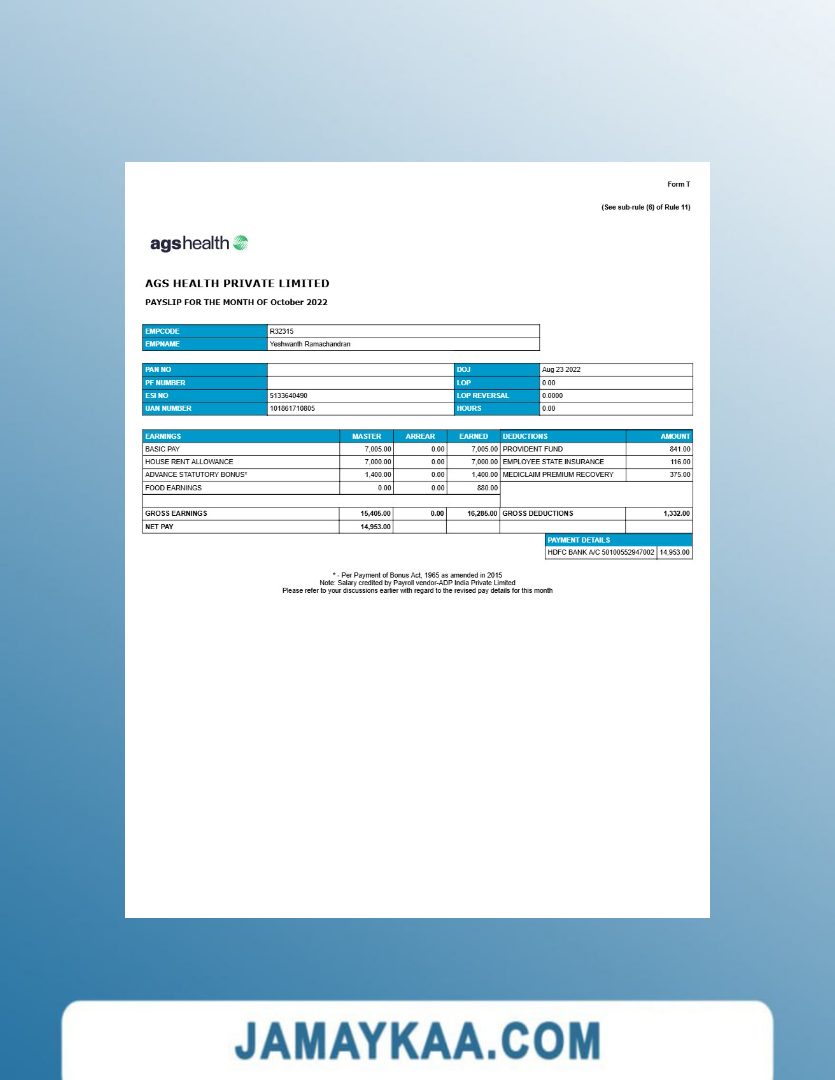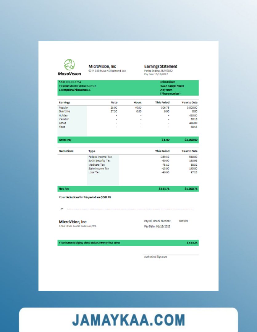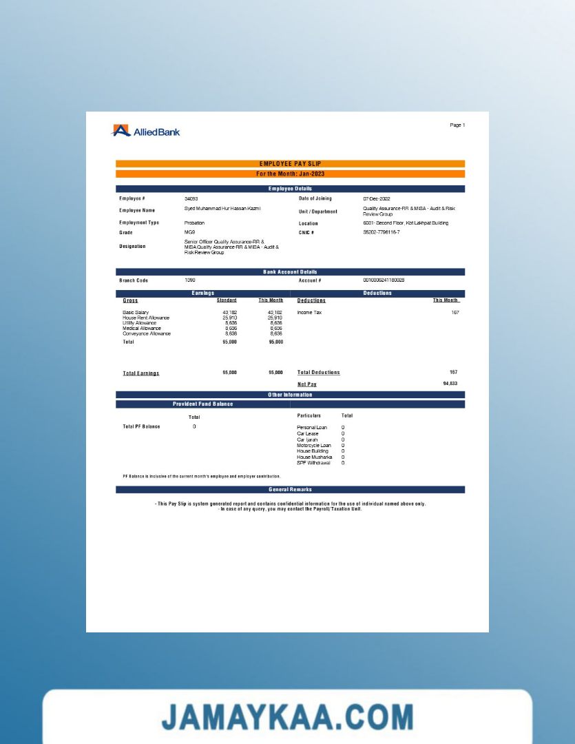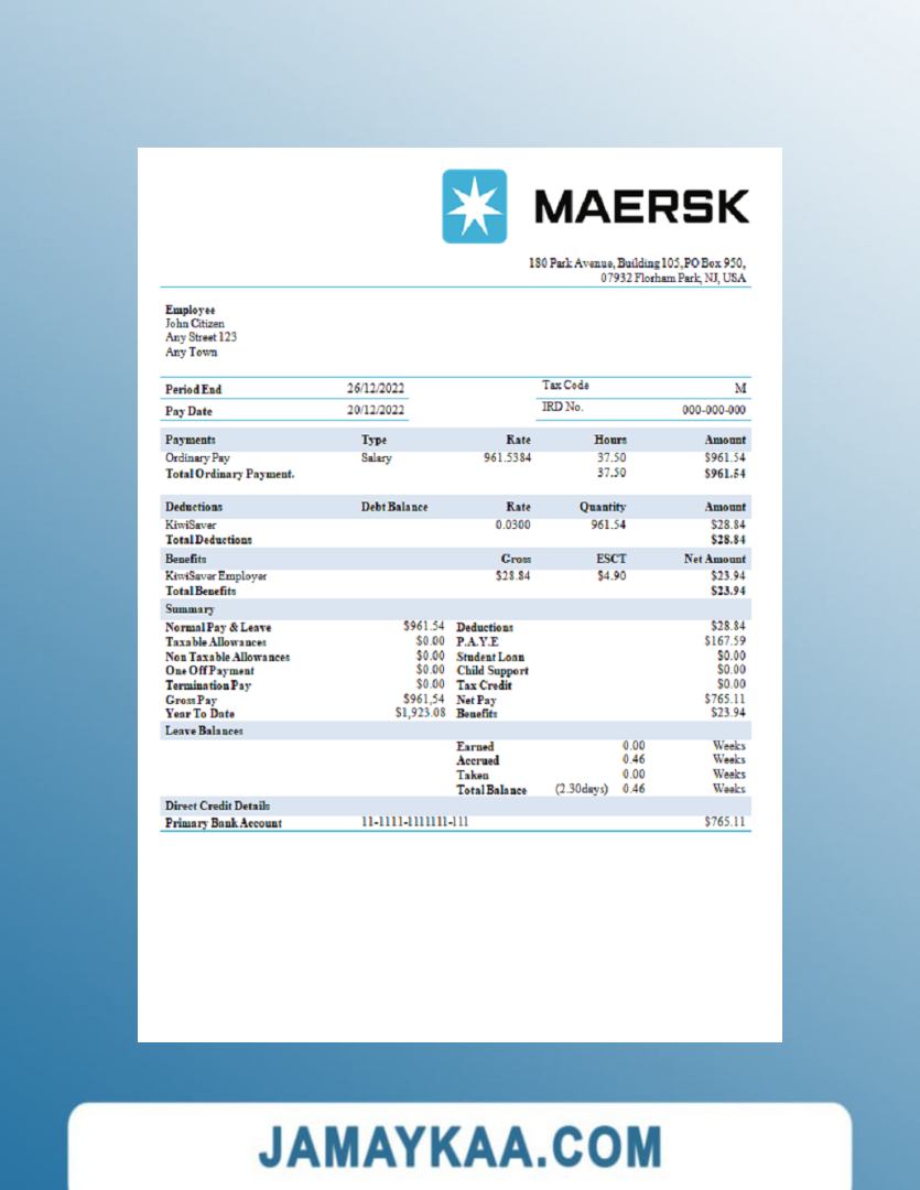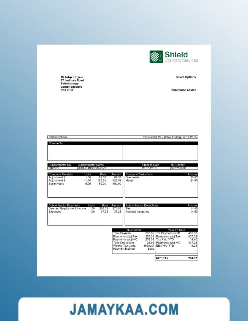 Controller and Accountant General's Department payslip template in Word