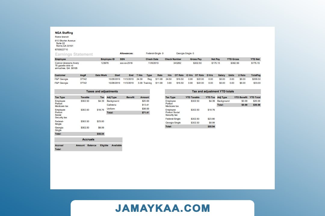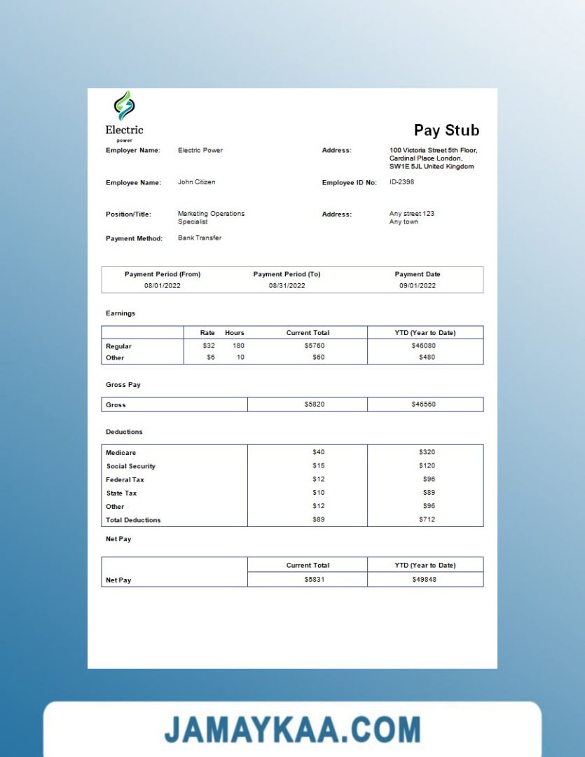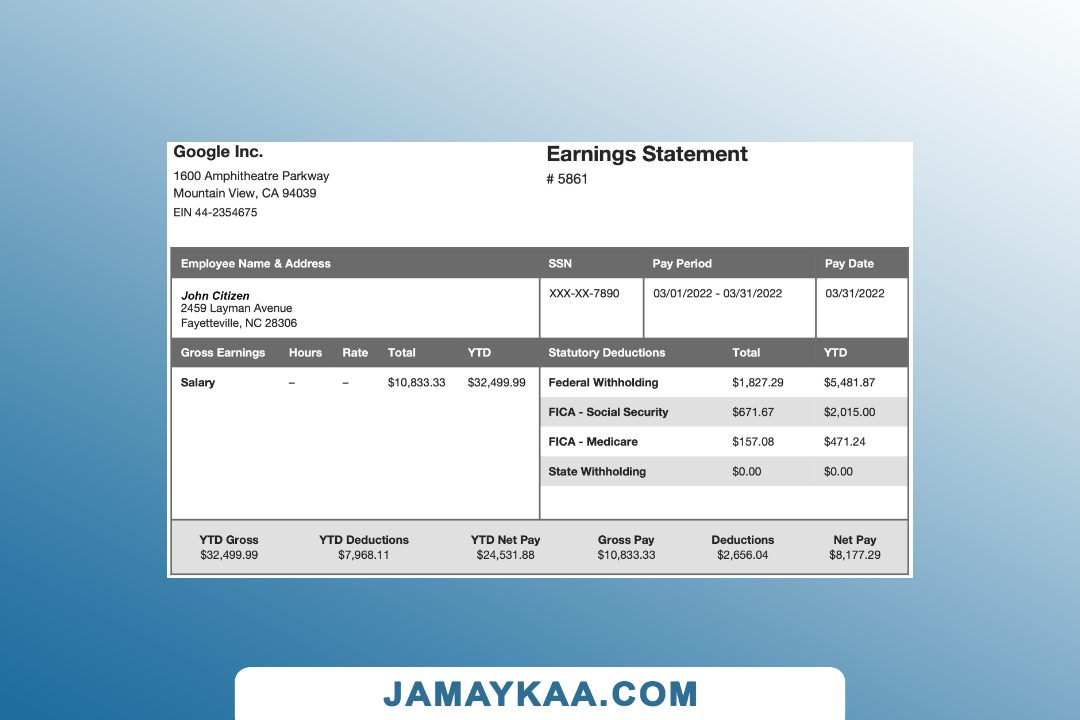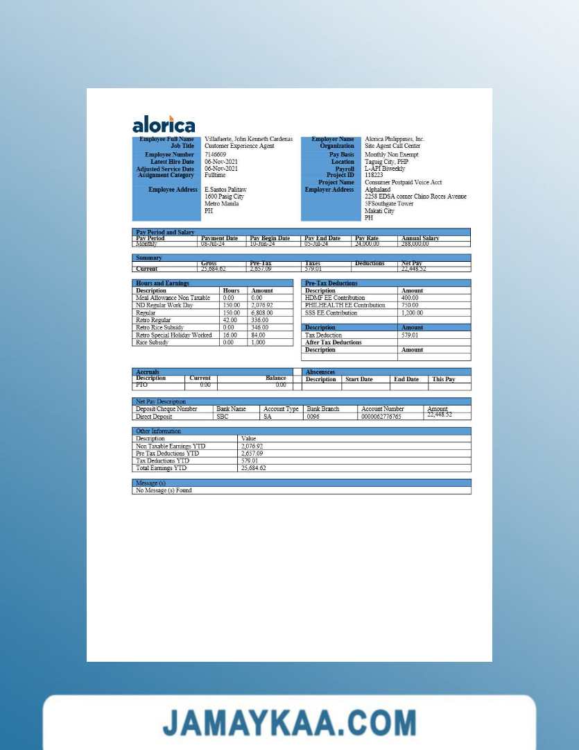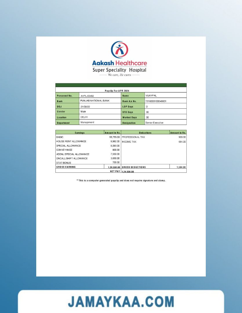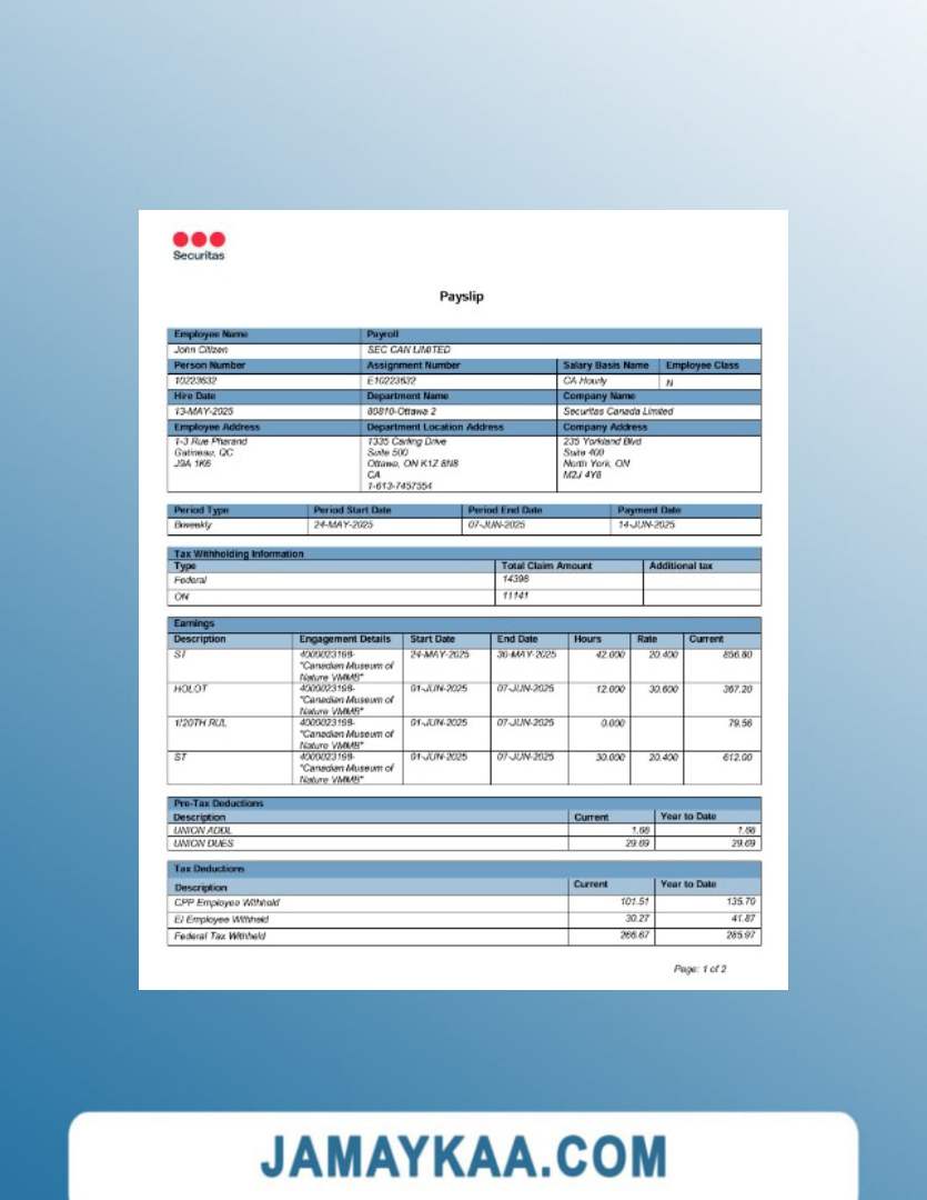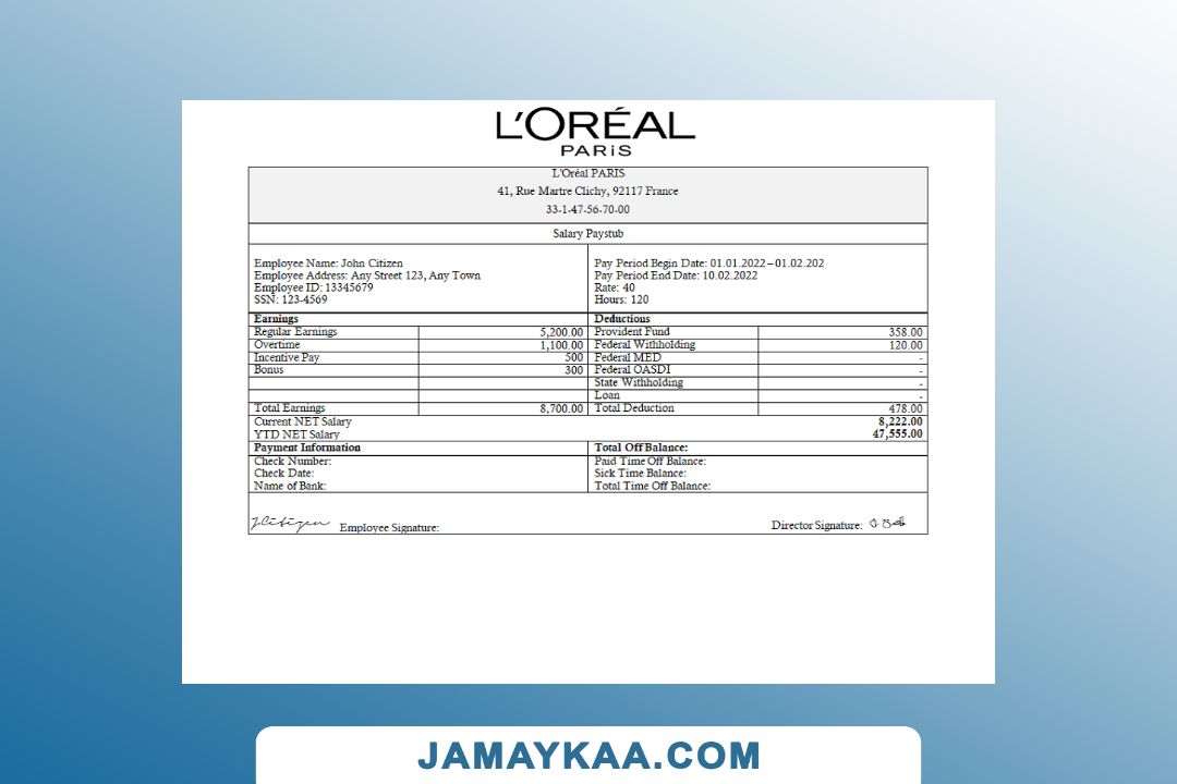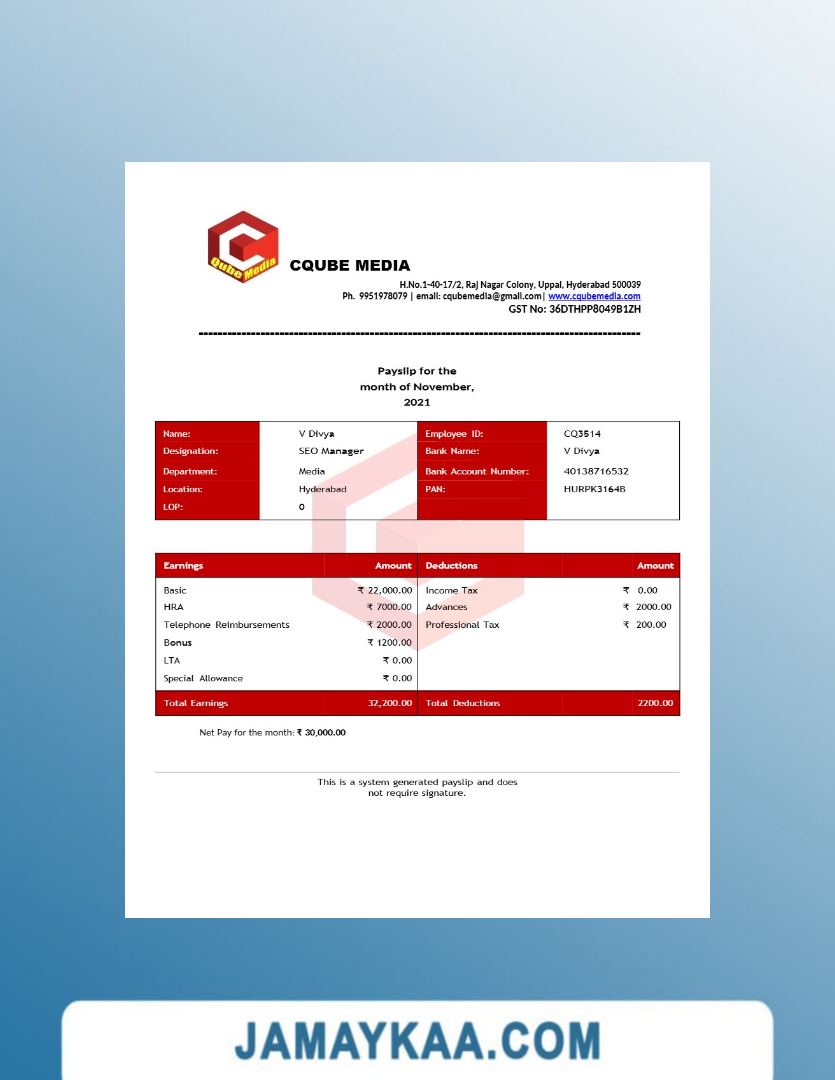 Controller and Accountant General's Department payslip template in Word