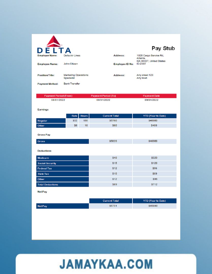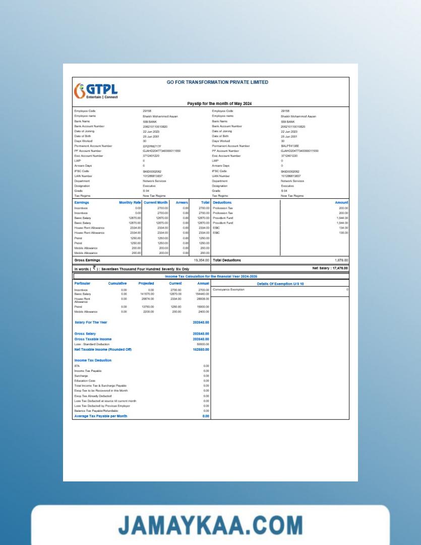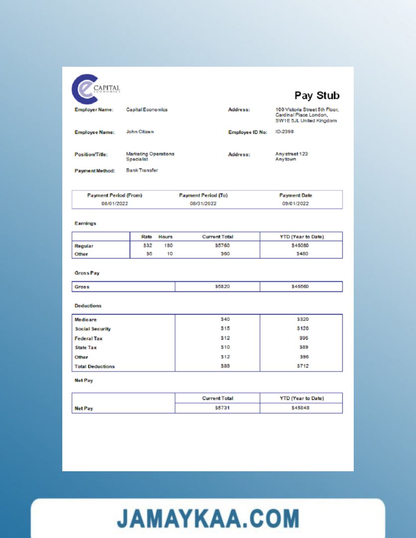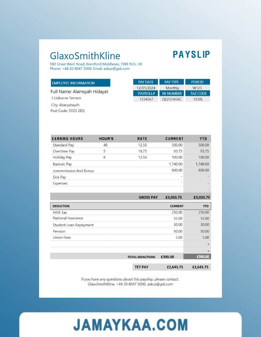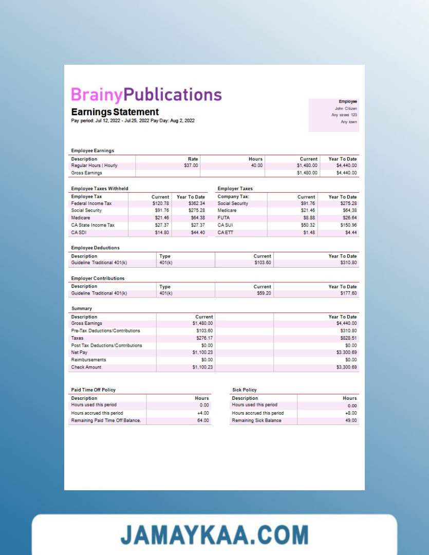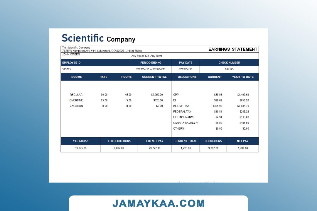 Controller and Accountant General's Department payslip template in Word