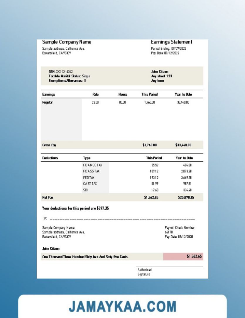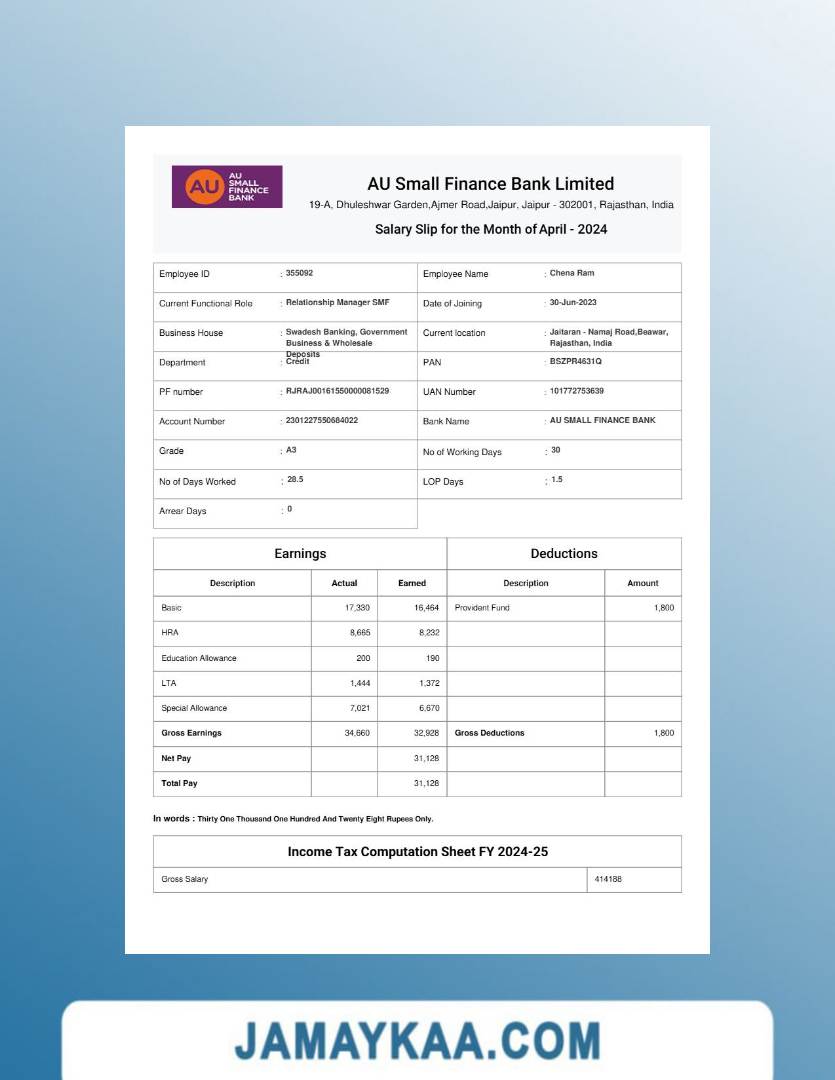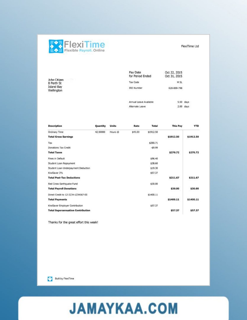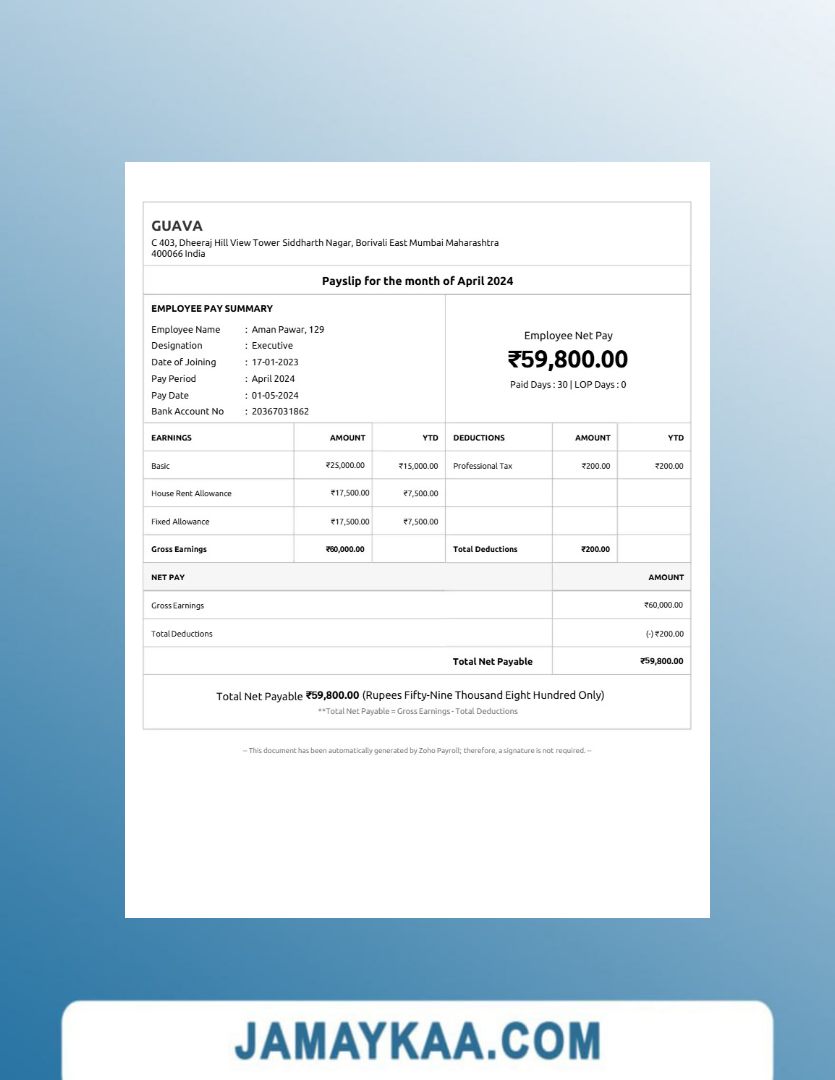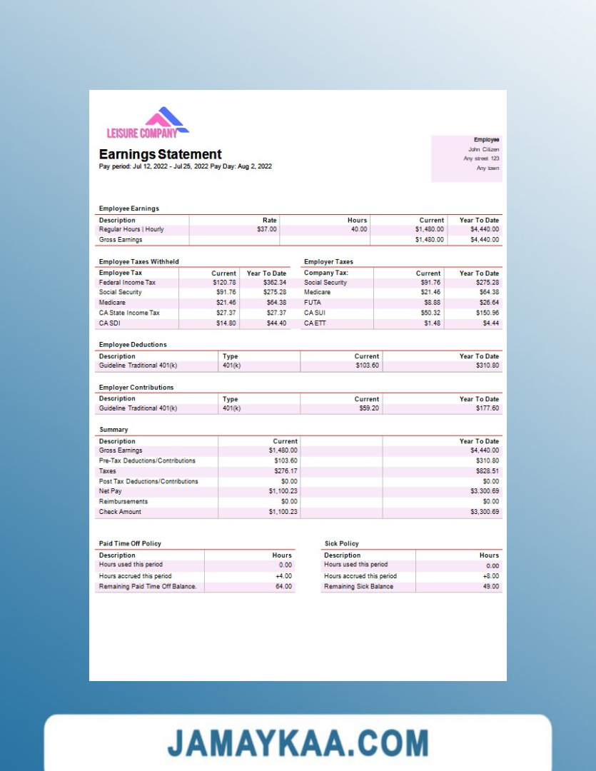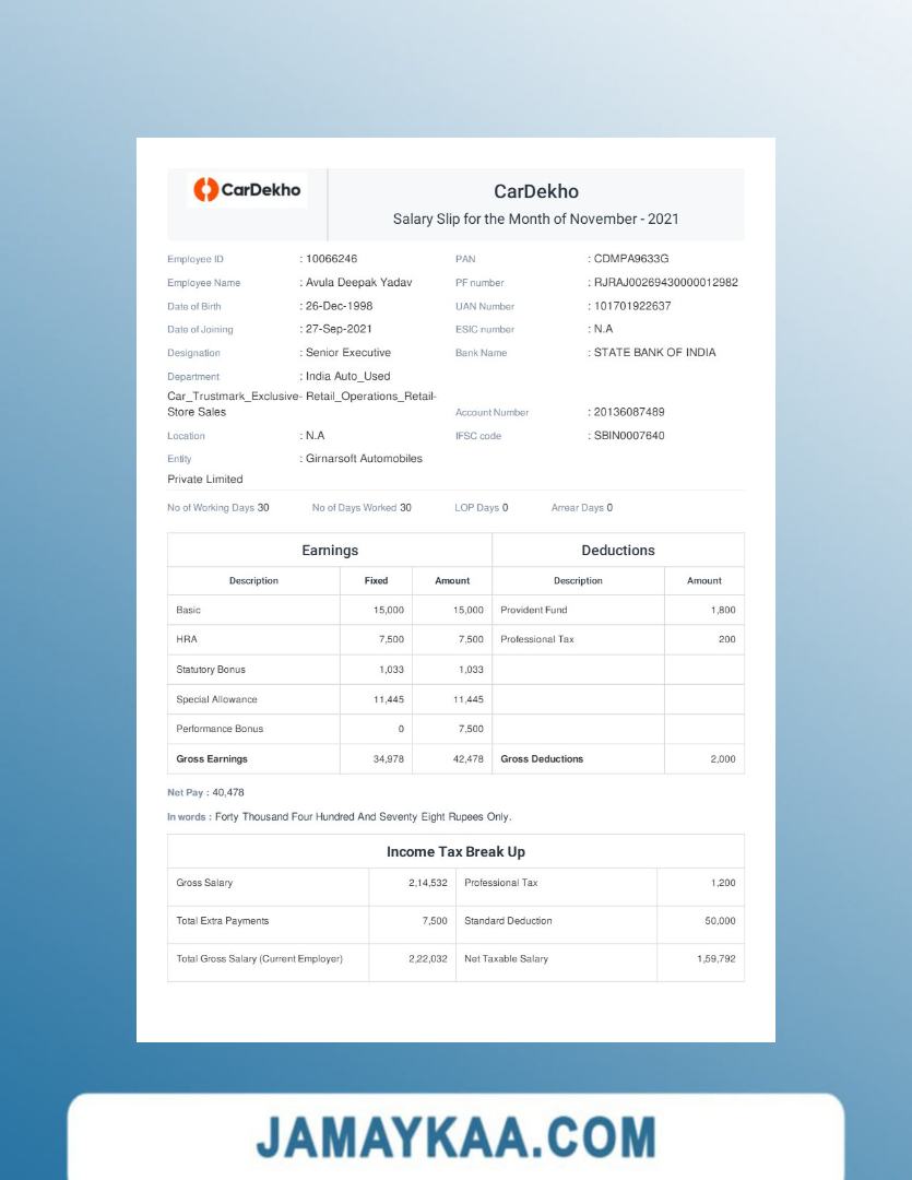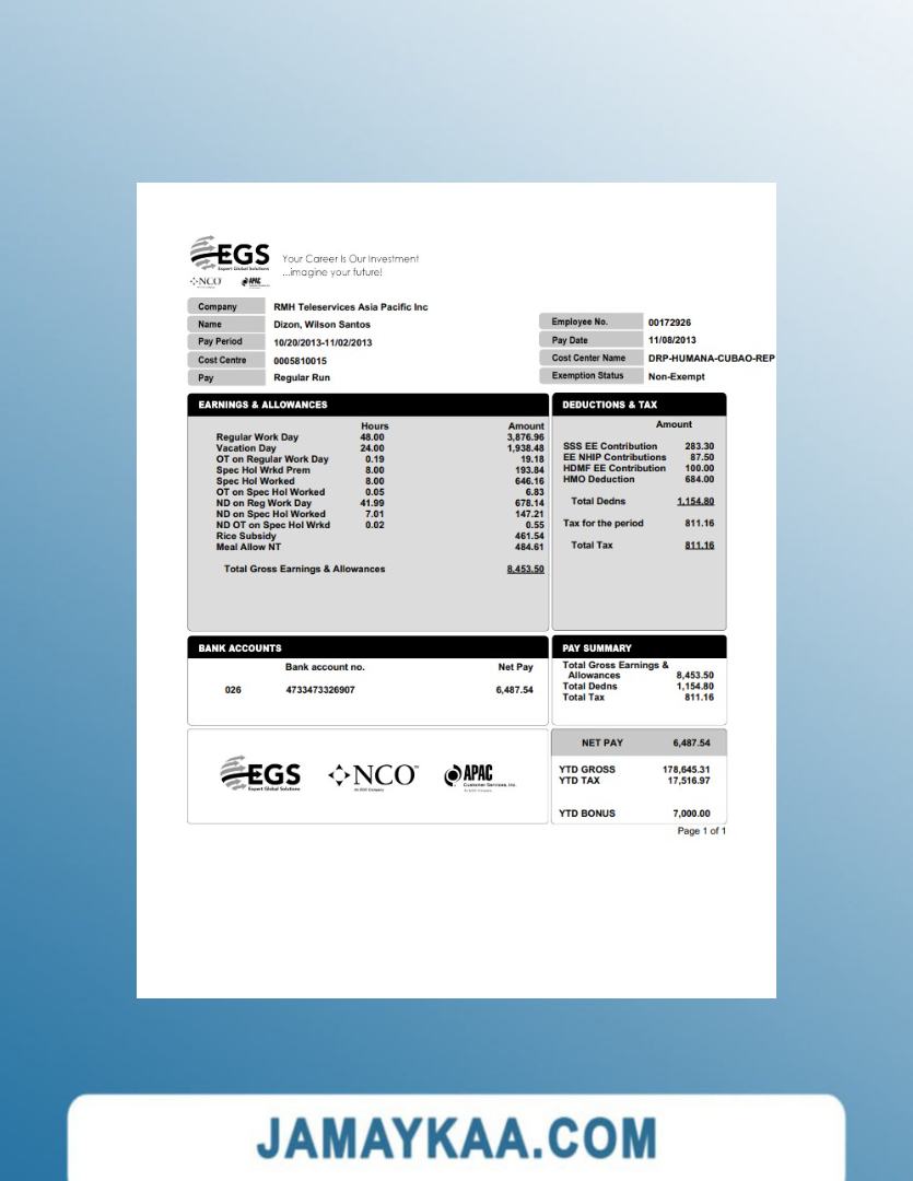 Controller and Accountant General's Department payslip template in Word
