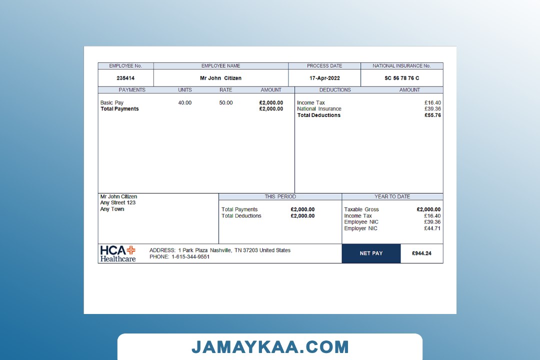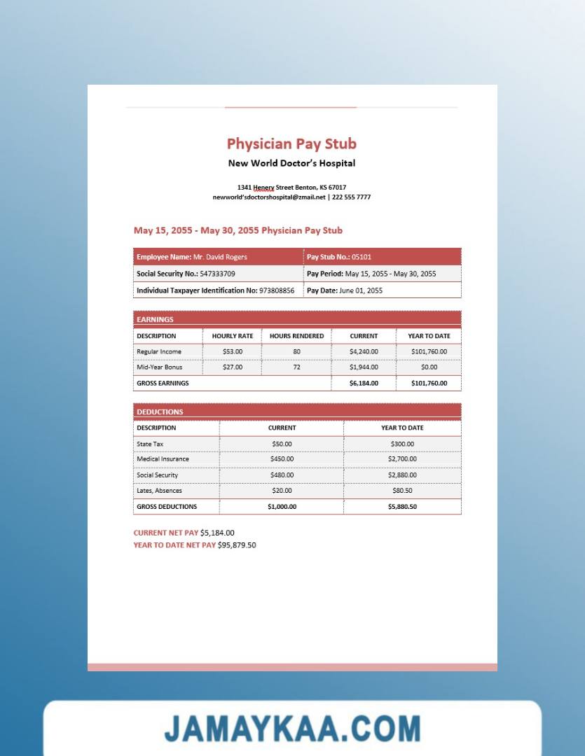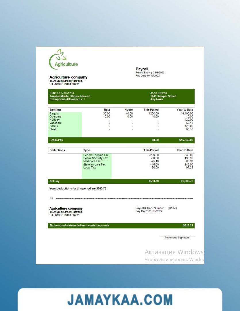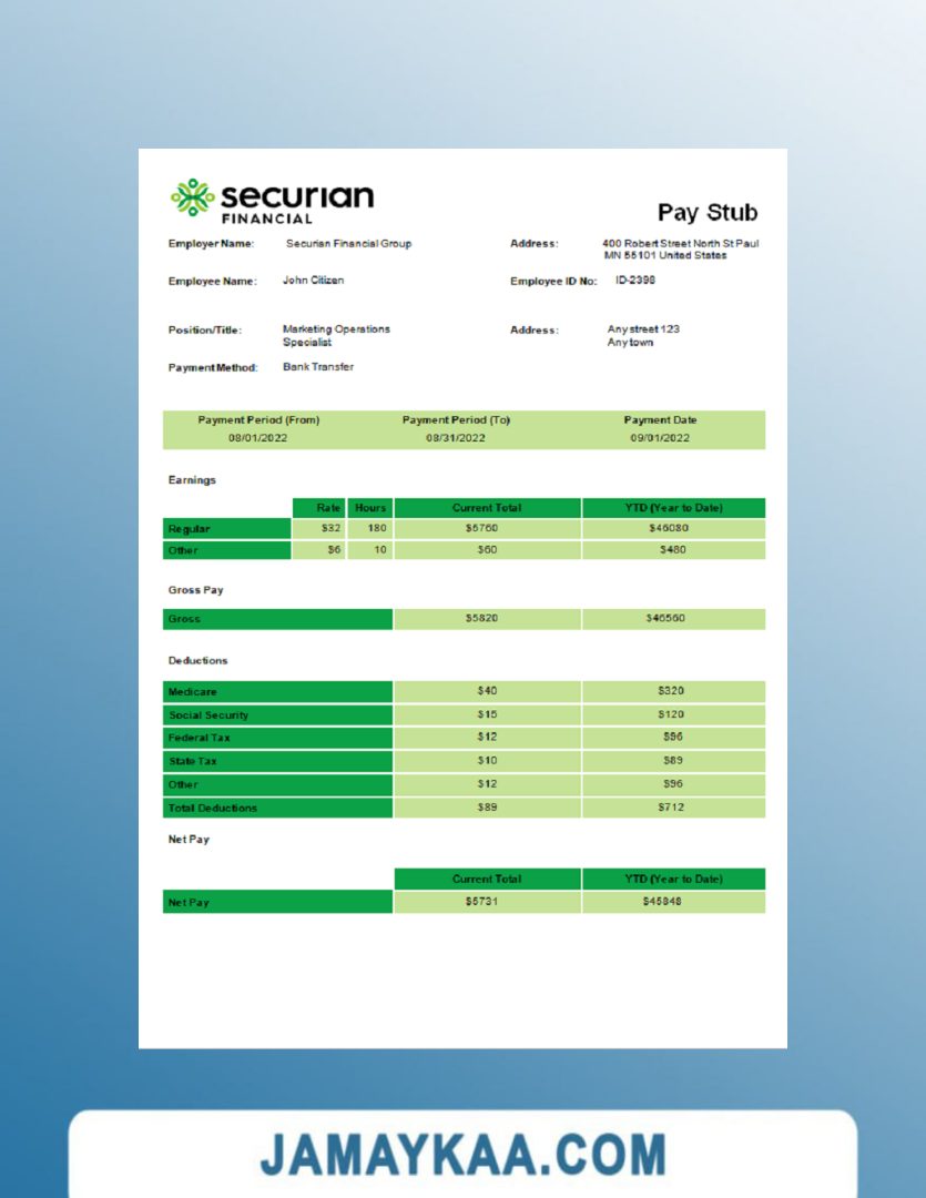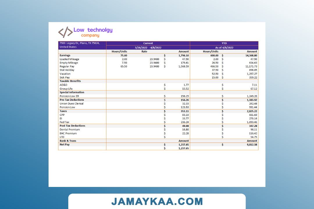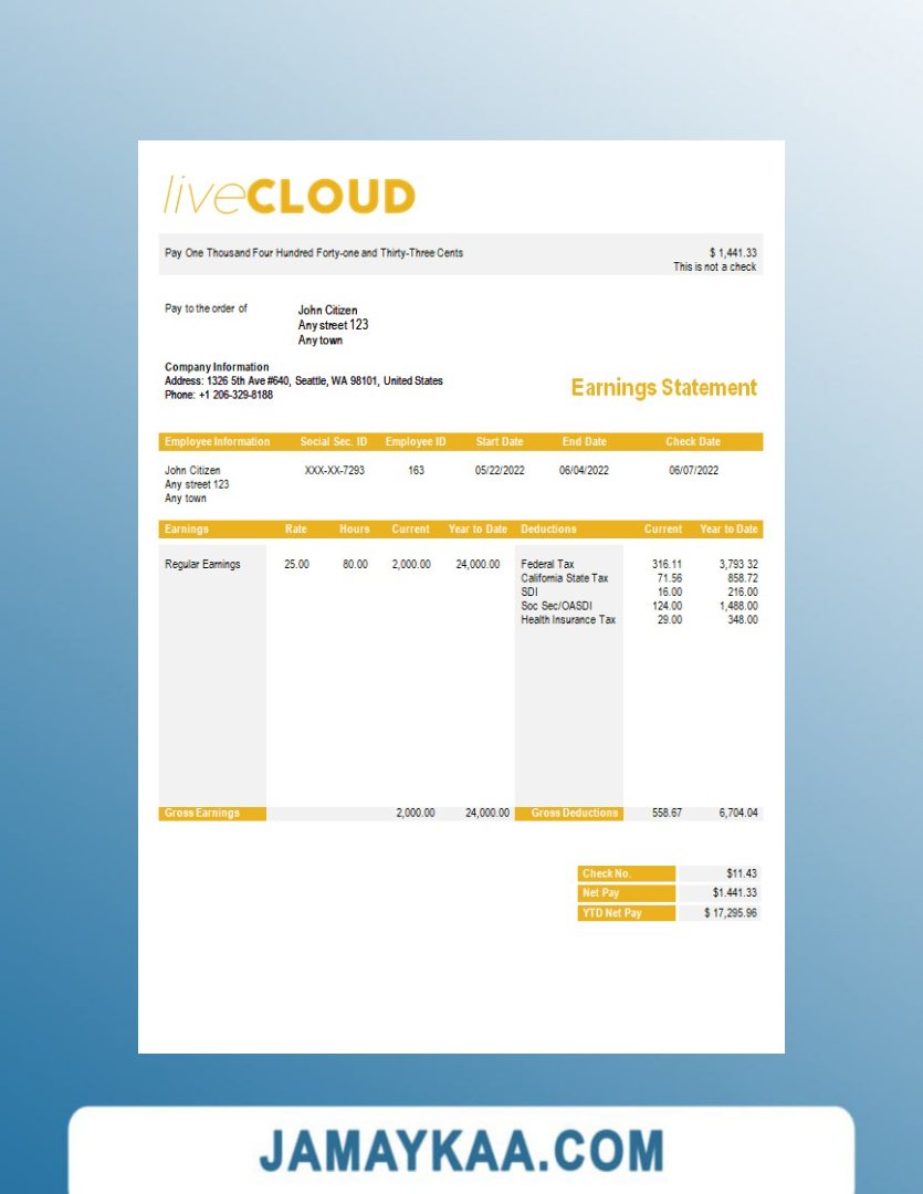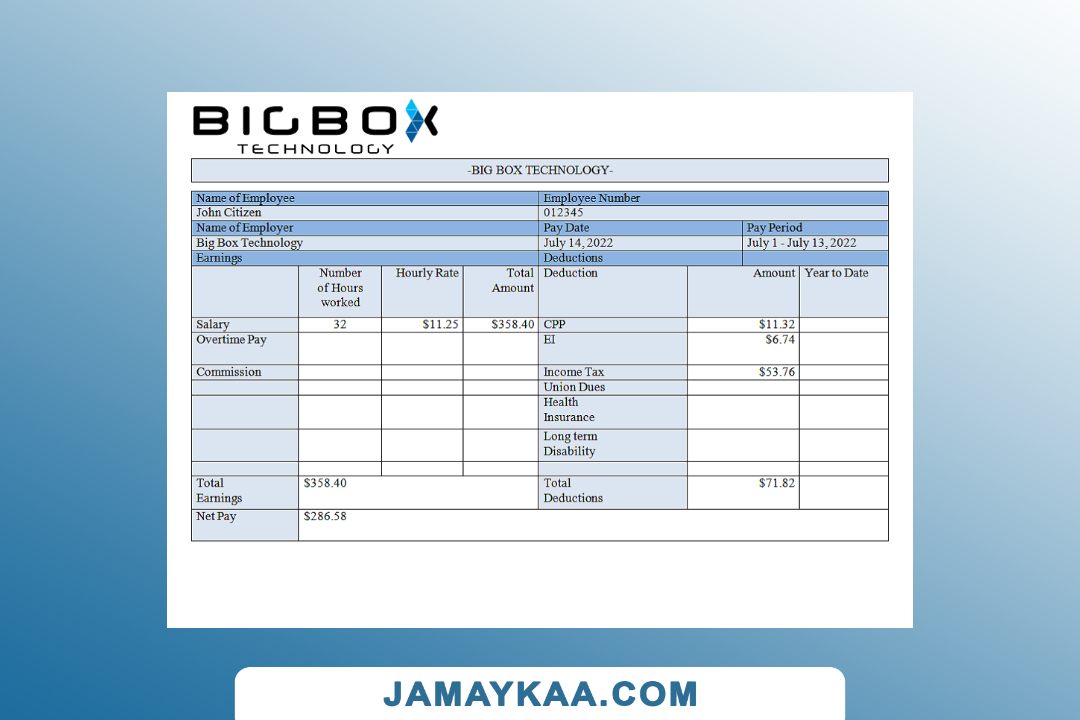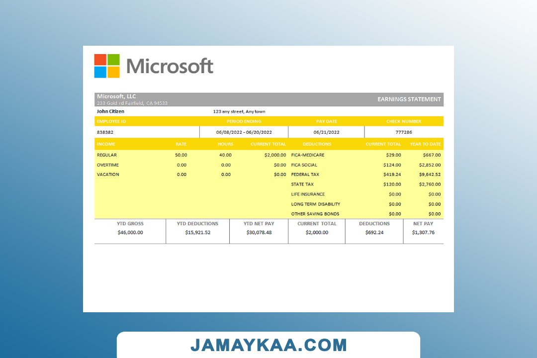 Controller and Accountant General's Department payslip template in Word