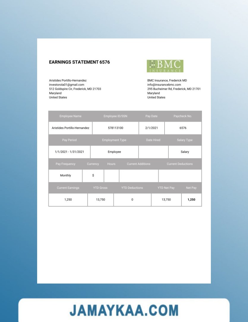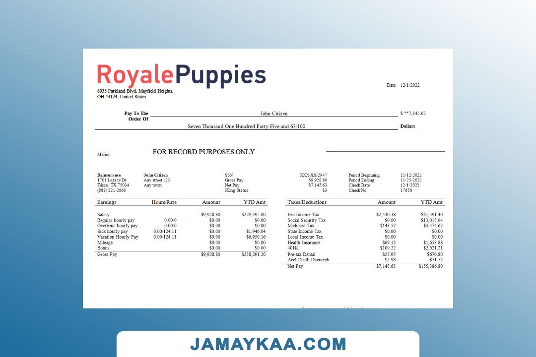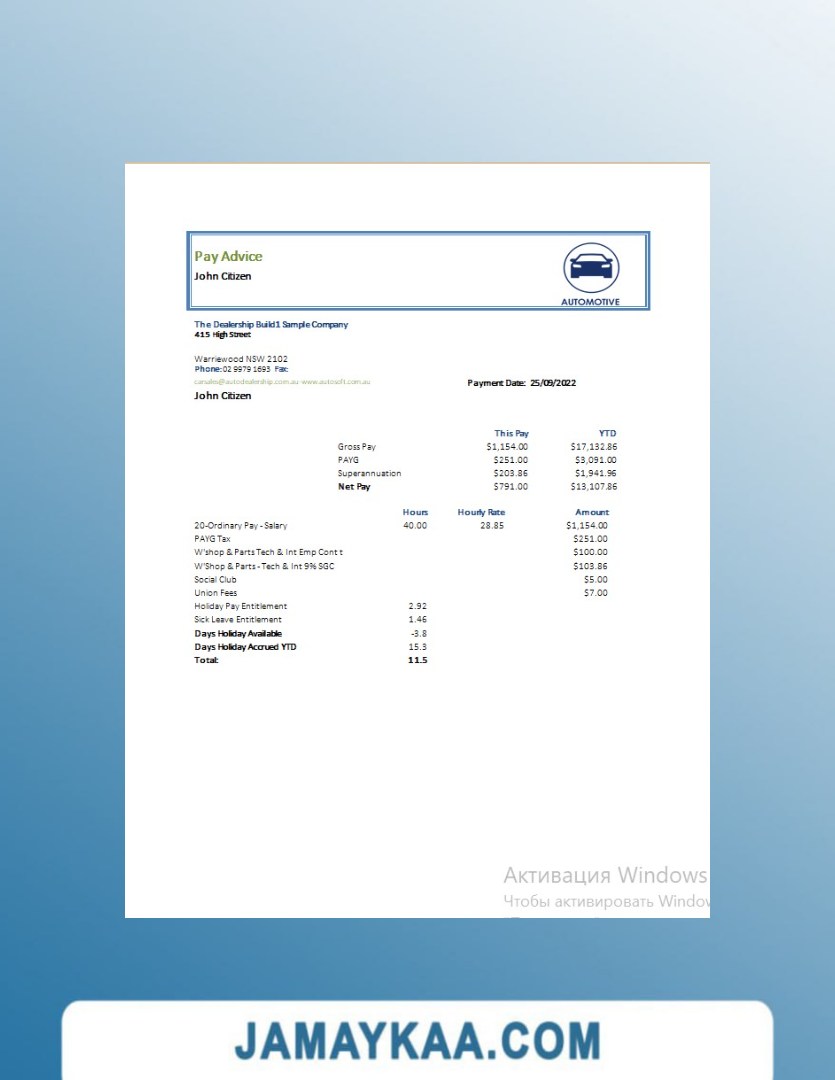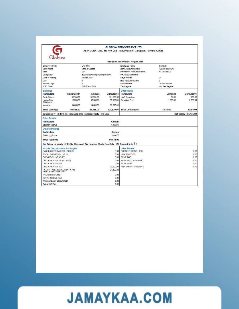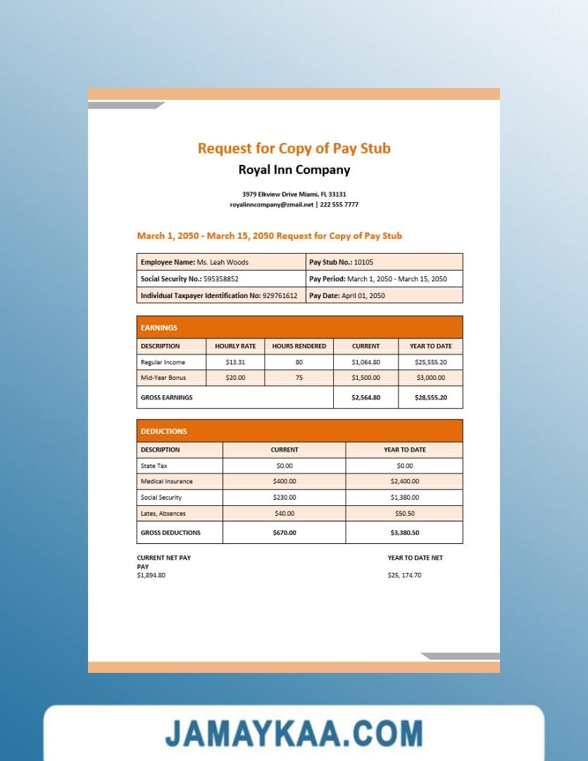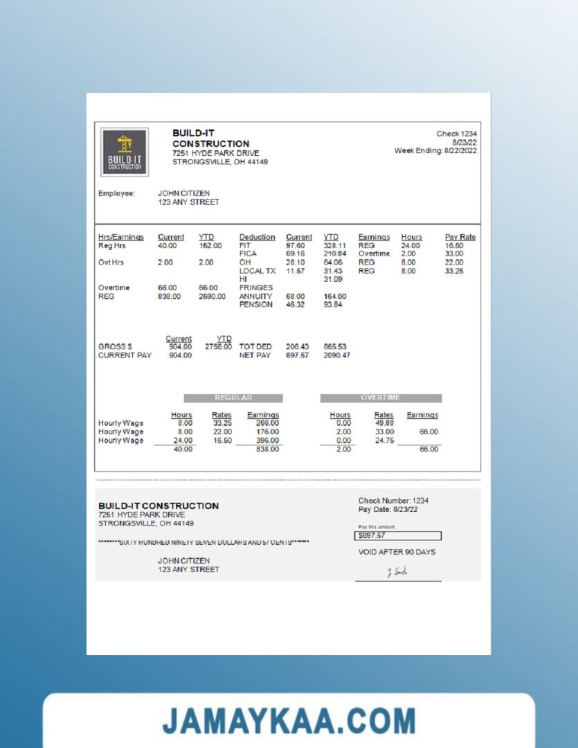 Controller and Accountant General's Department payslip template in Word