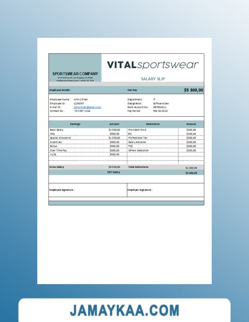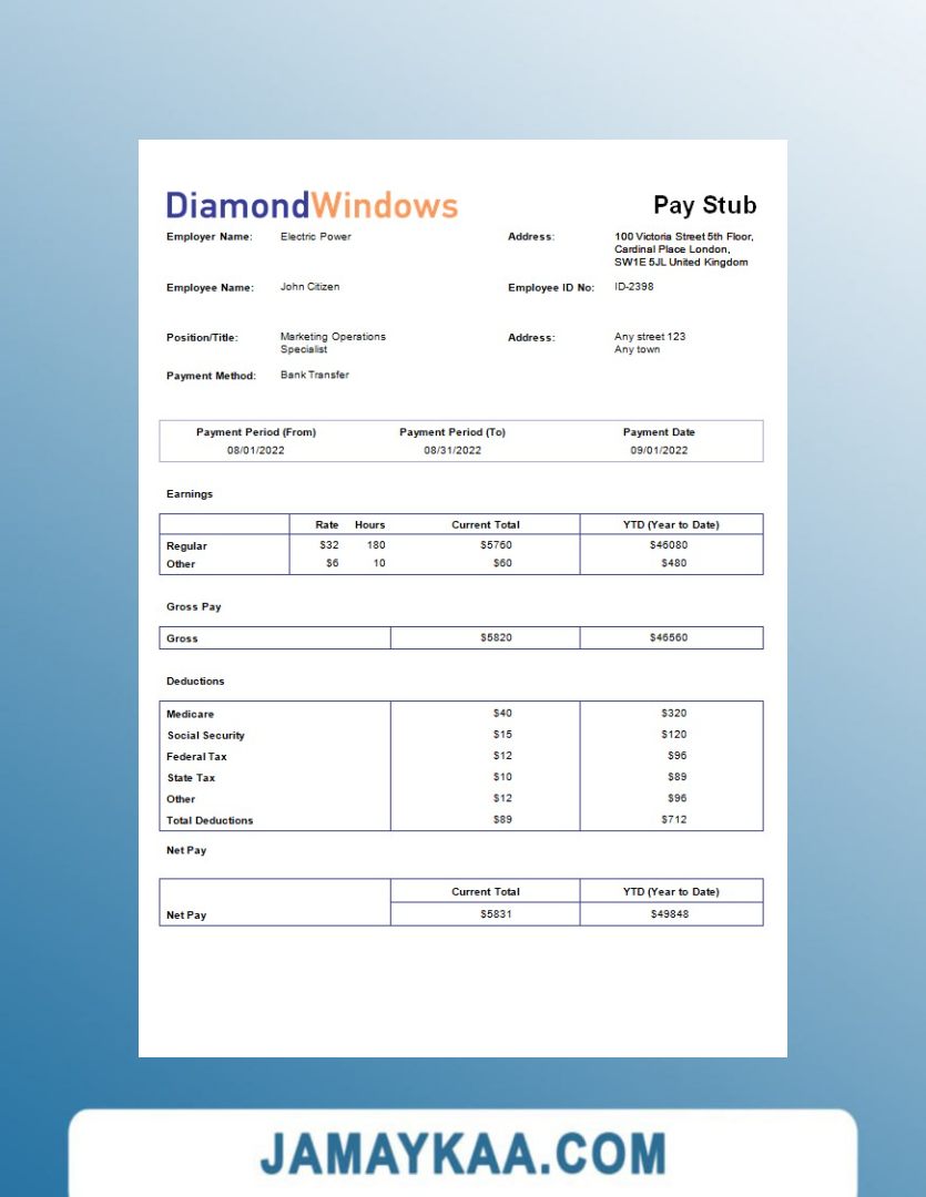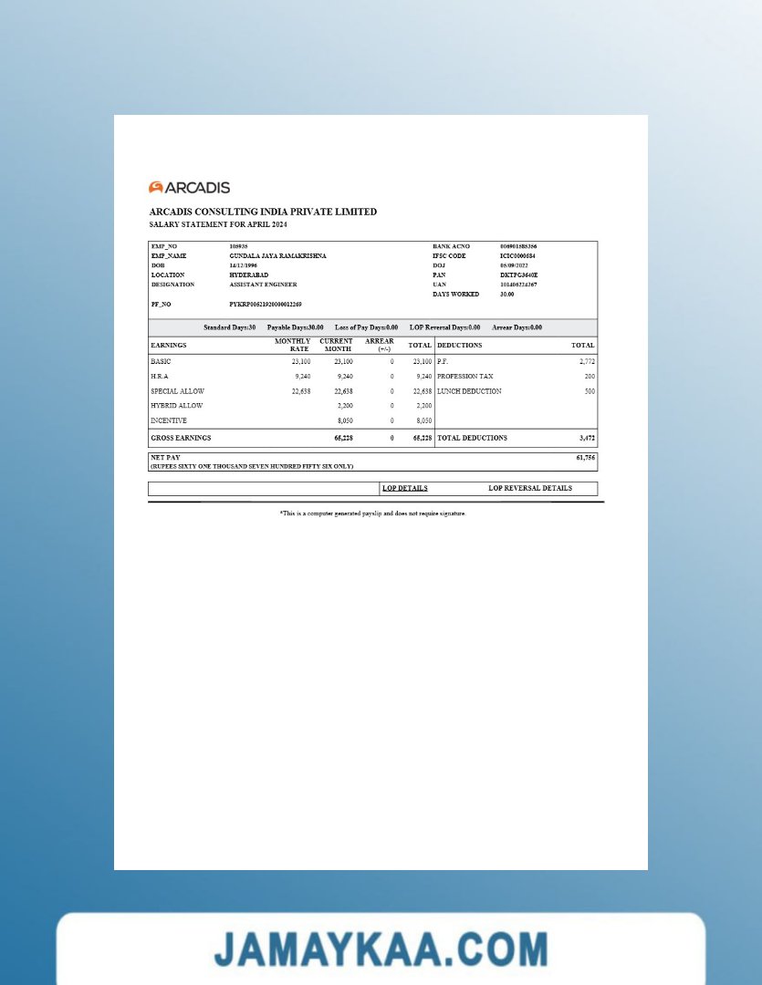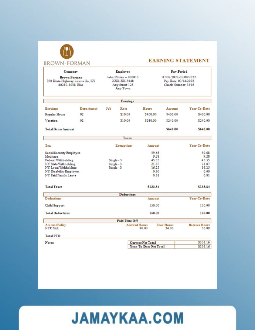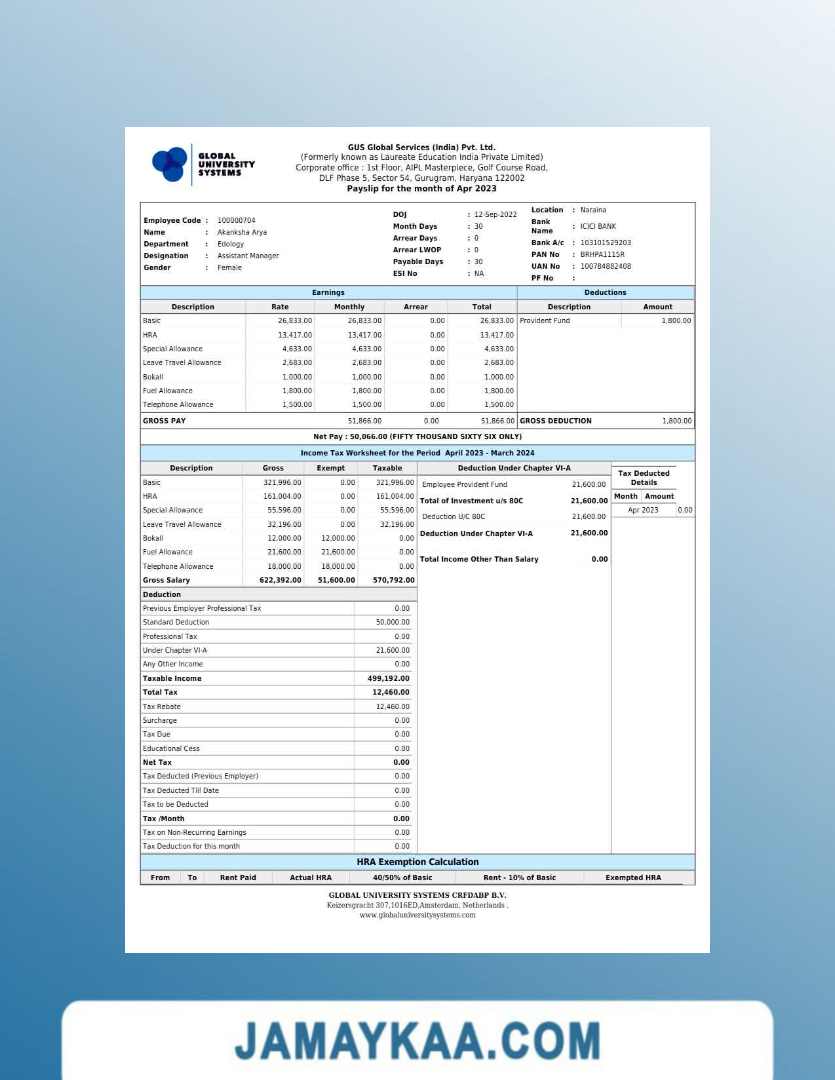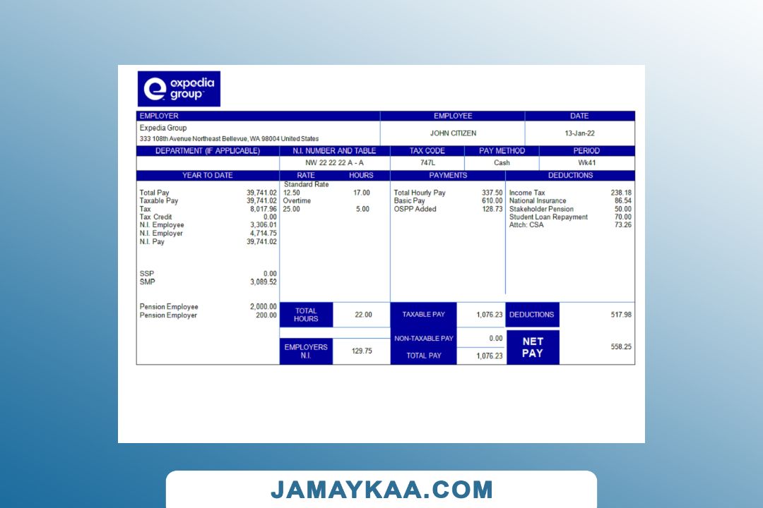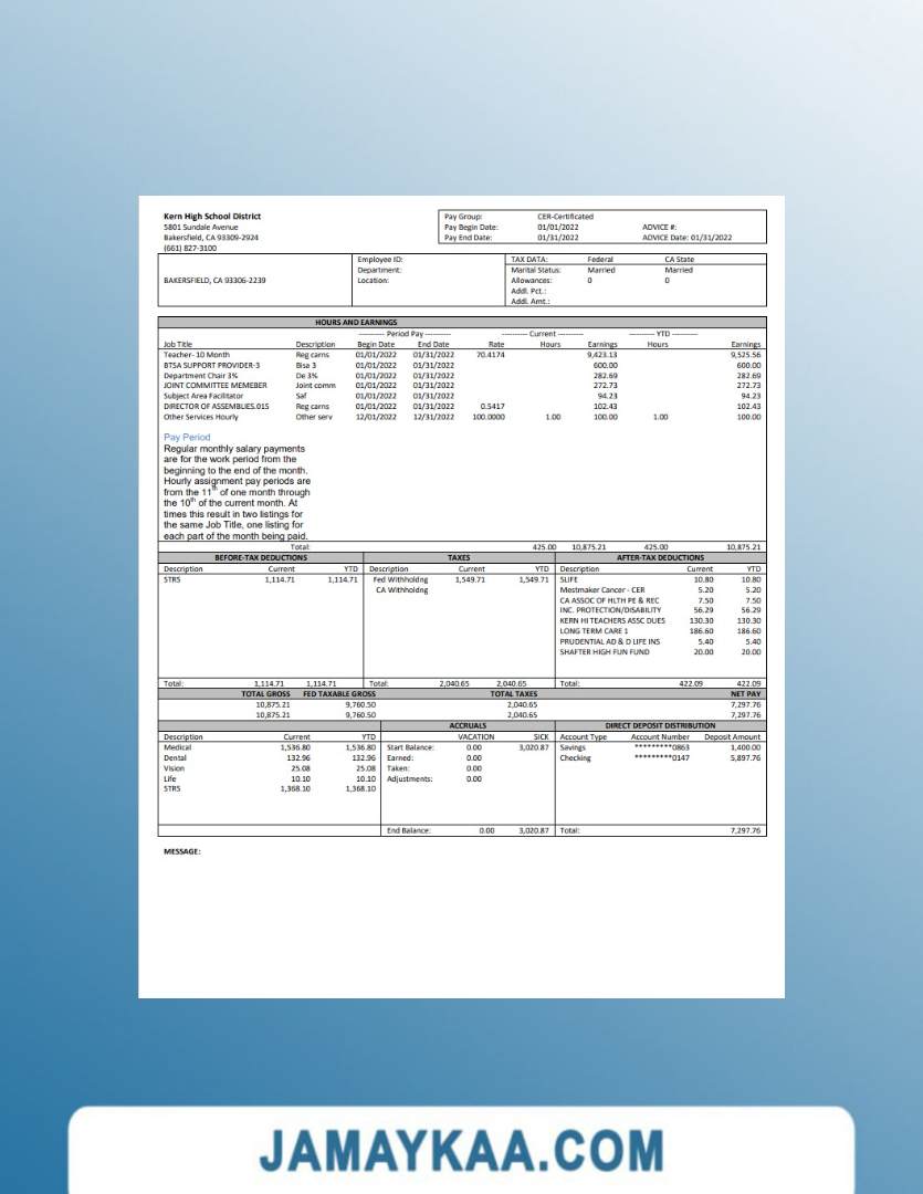 Controller and Accountant General's Department payslip template in Word