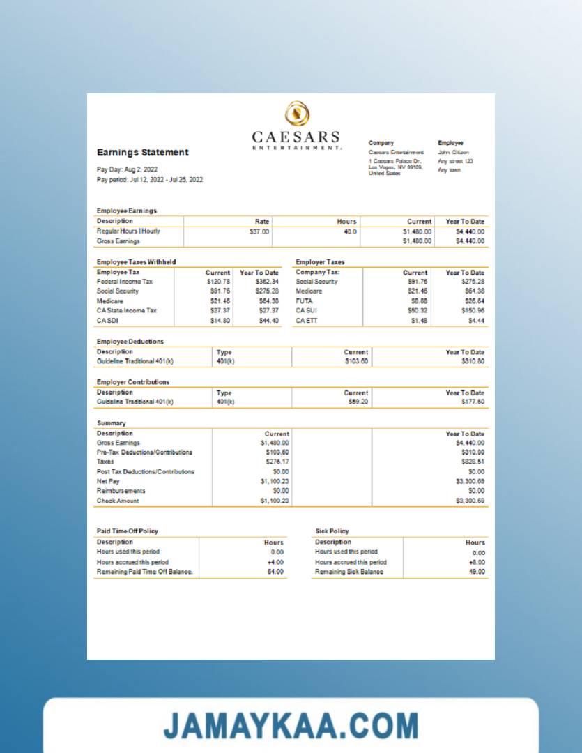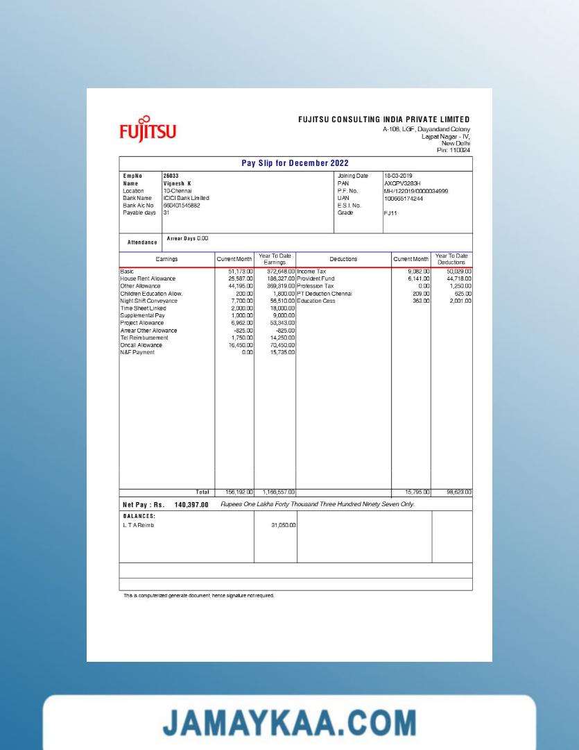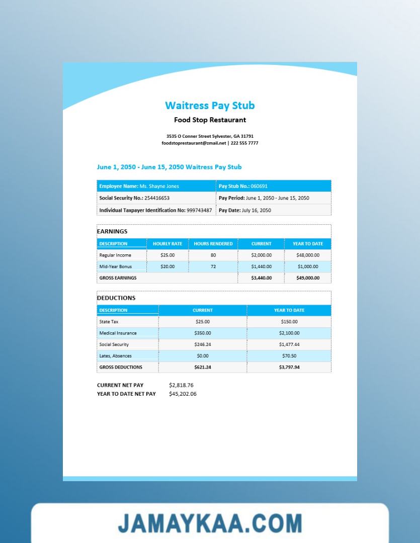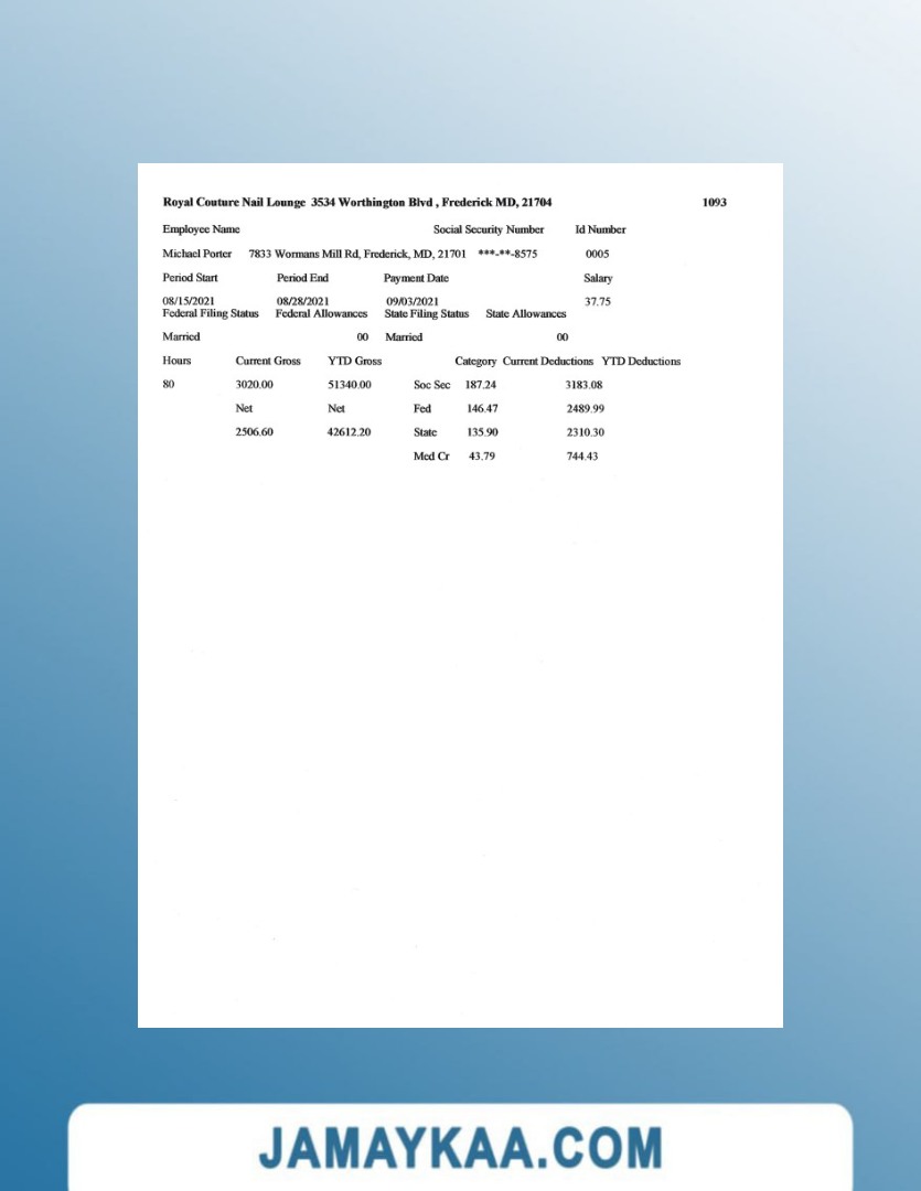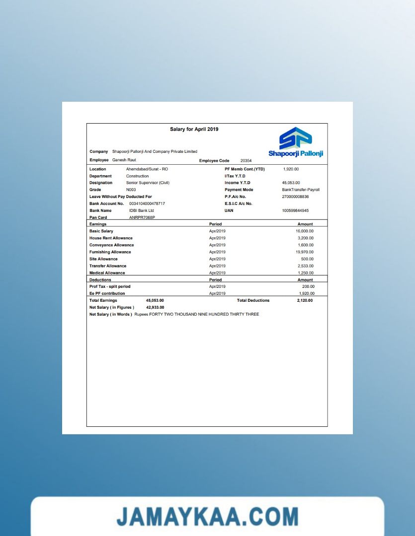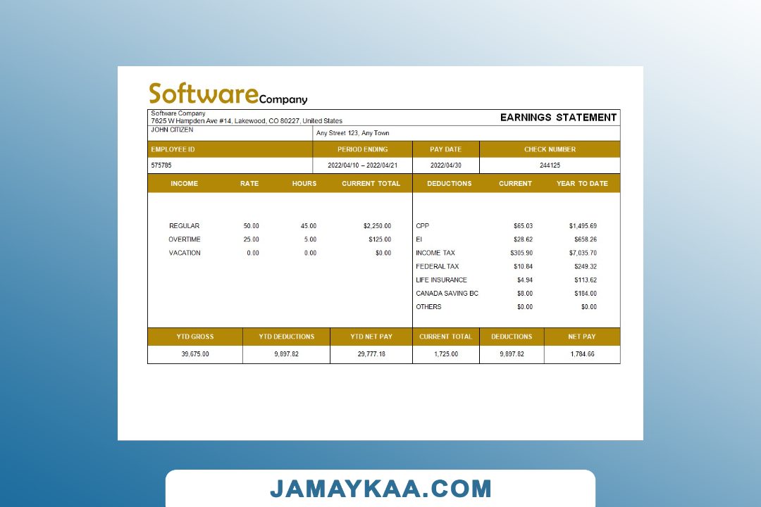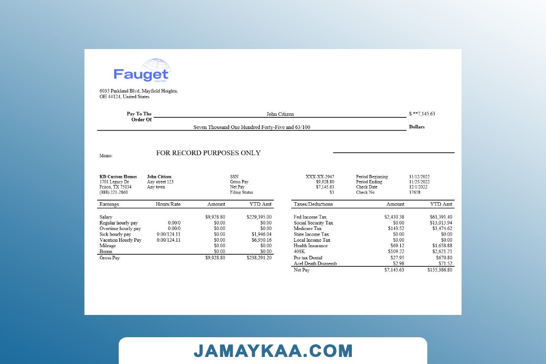 Controller and Accountant General's Department payslip template in Word