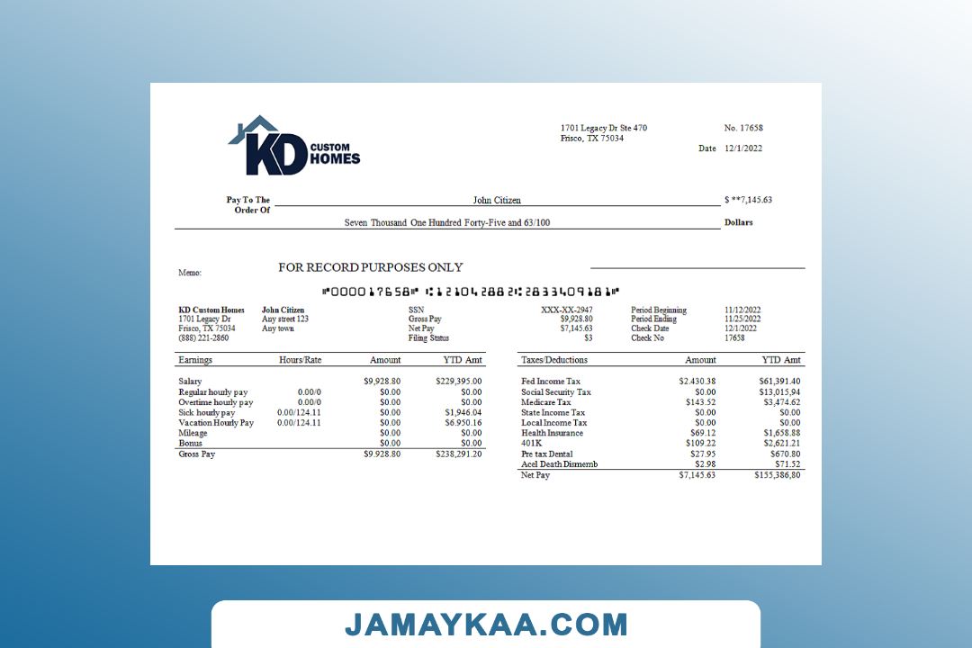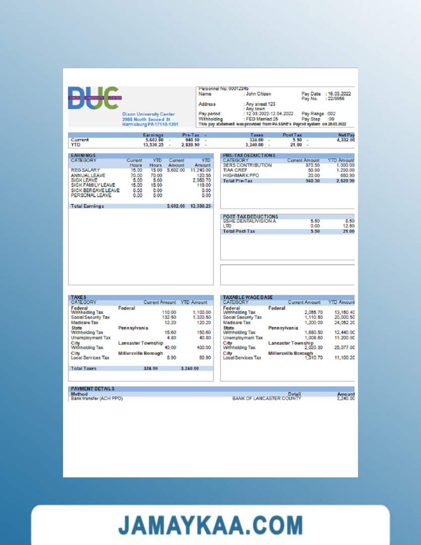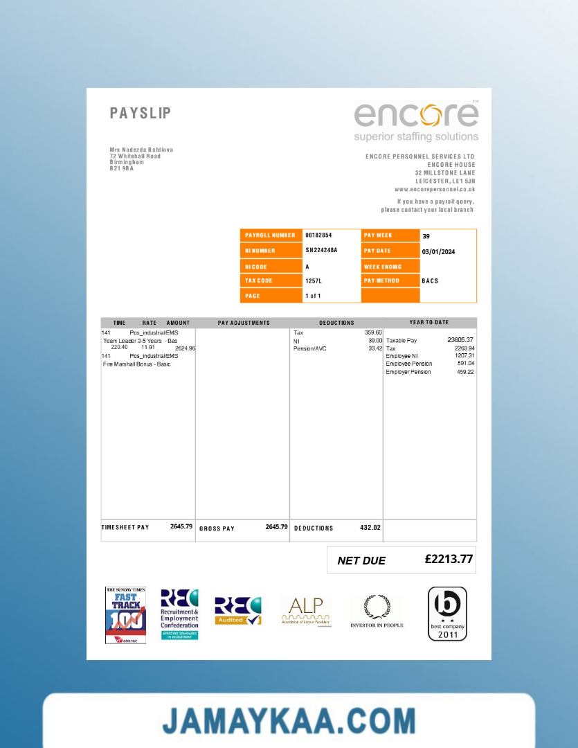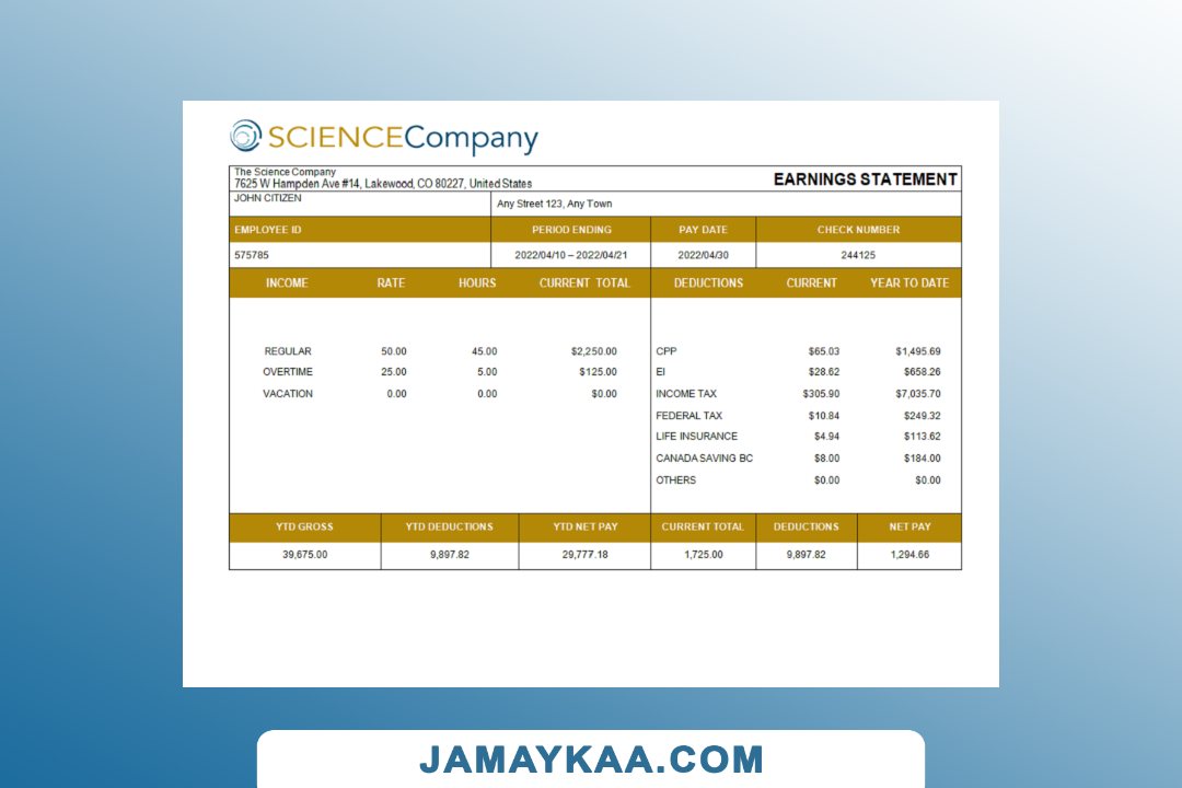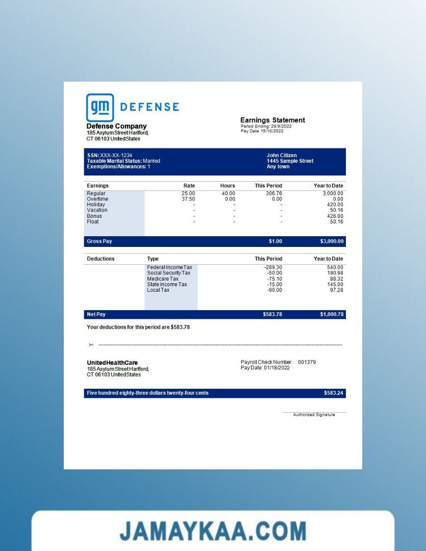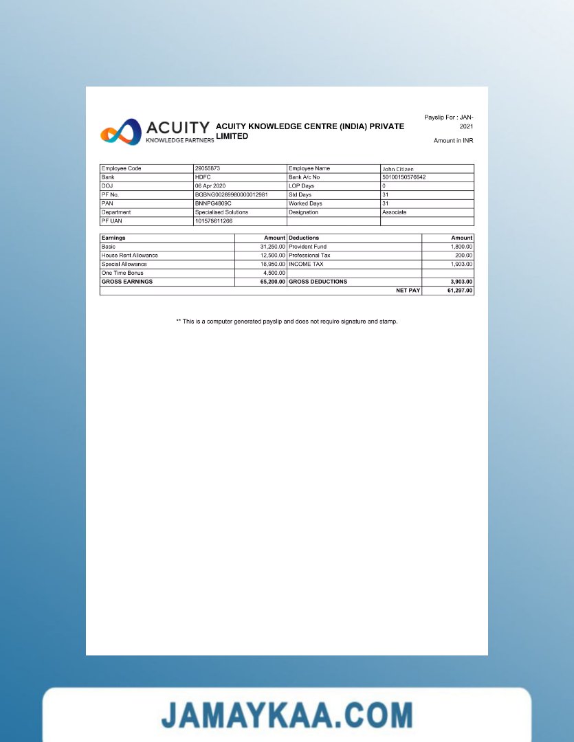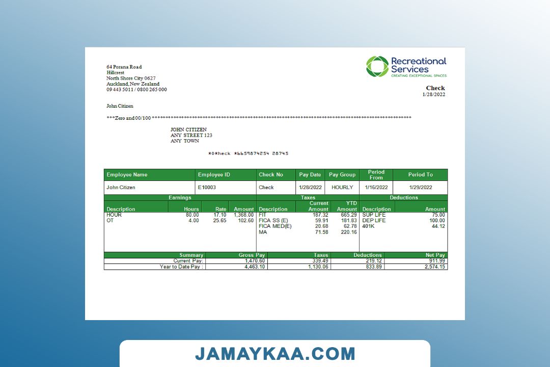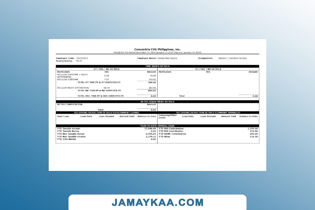 Controller and Accountant General's Department payslip template in Word