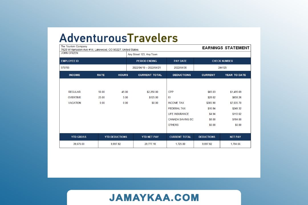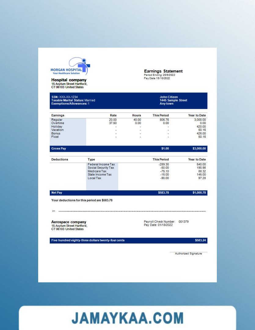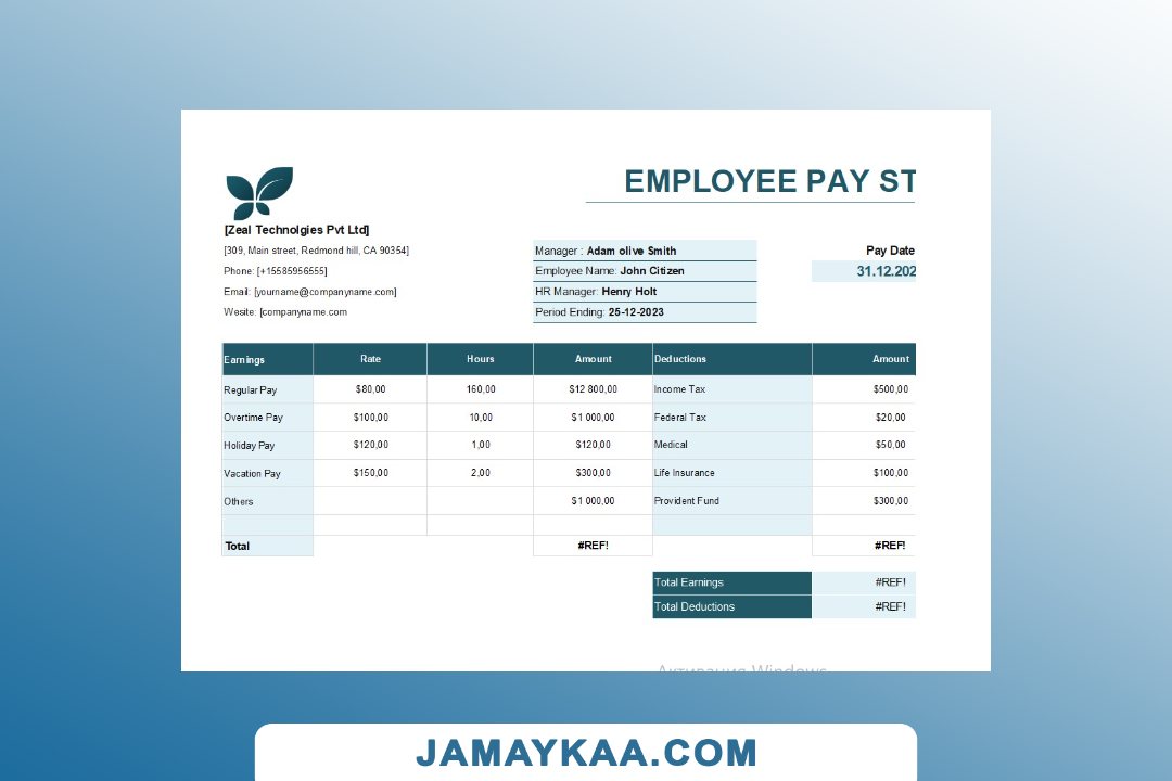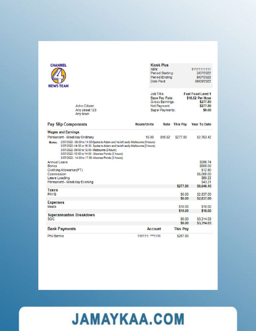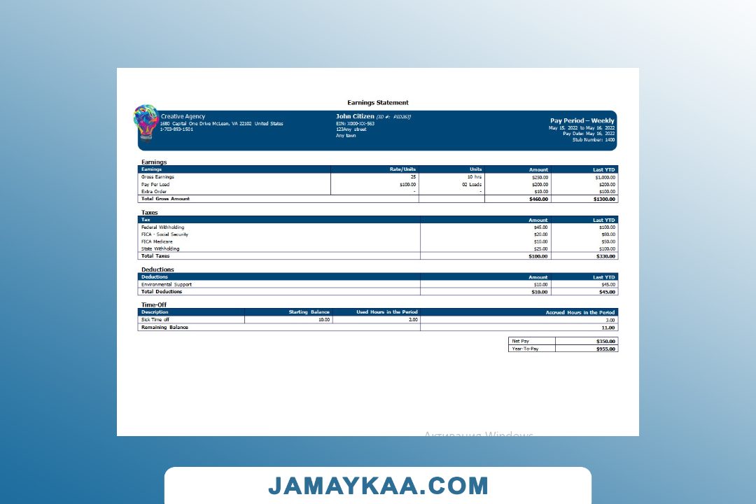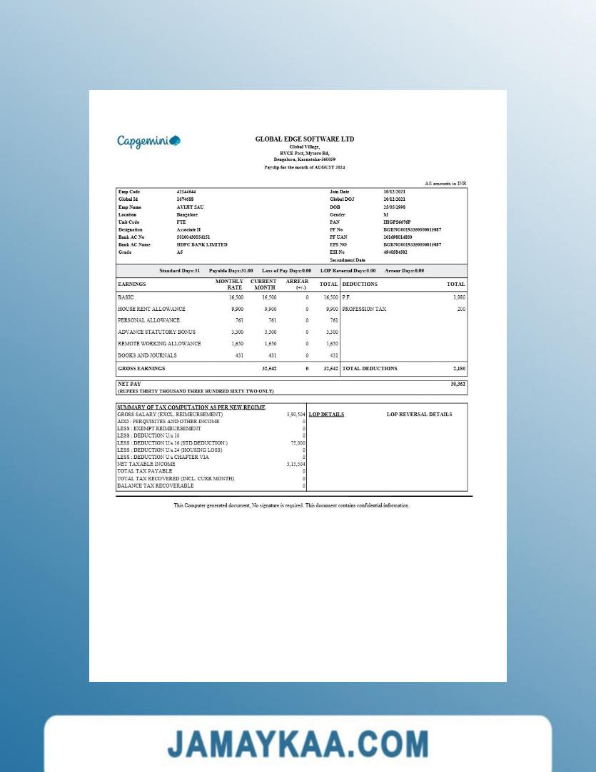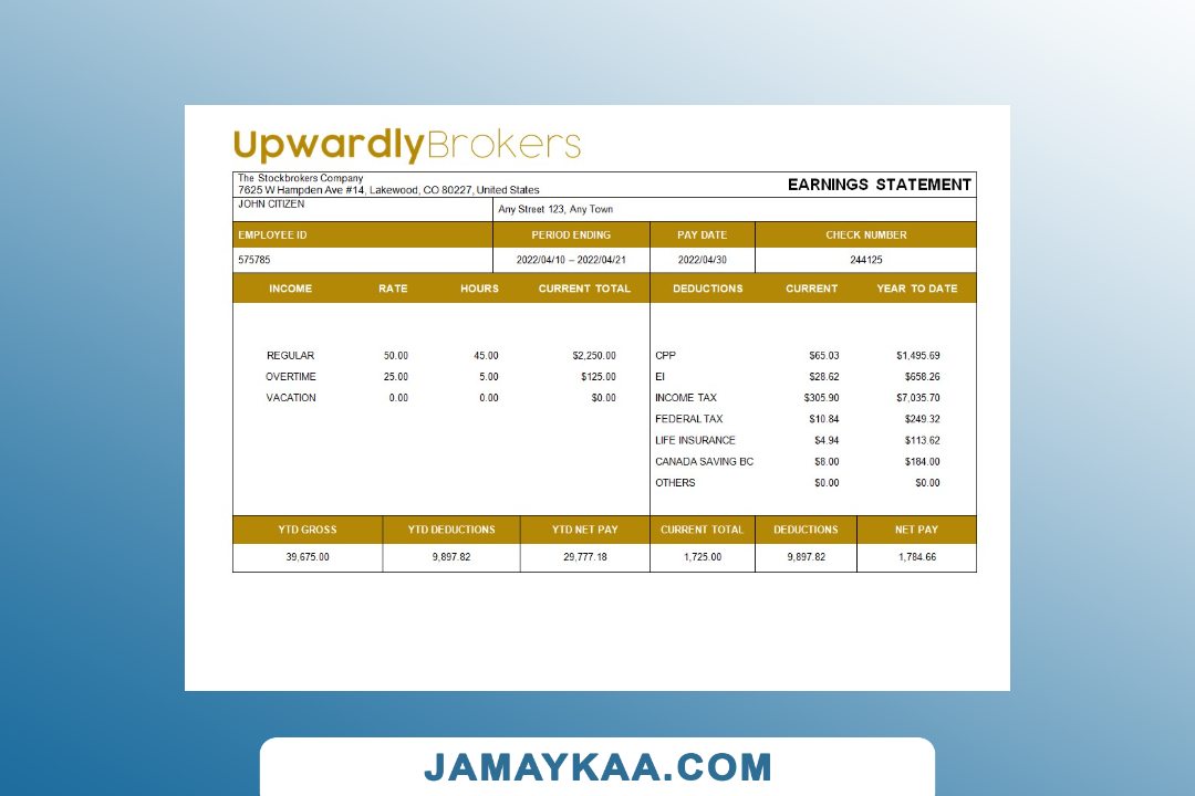 Controller and Accountant General's Department payslip template in Word