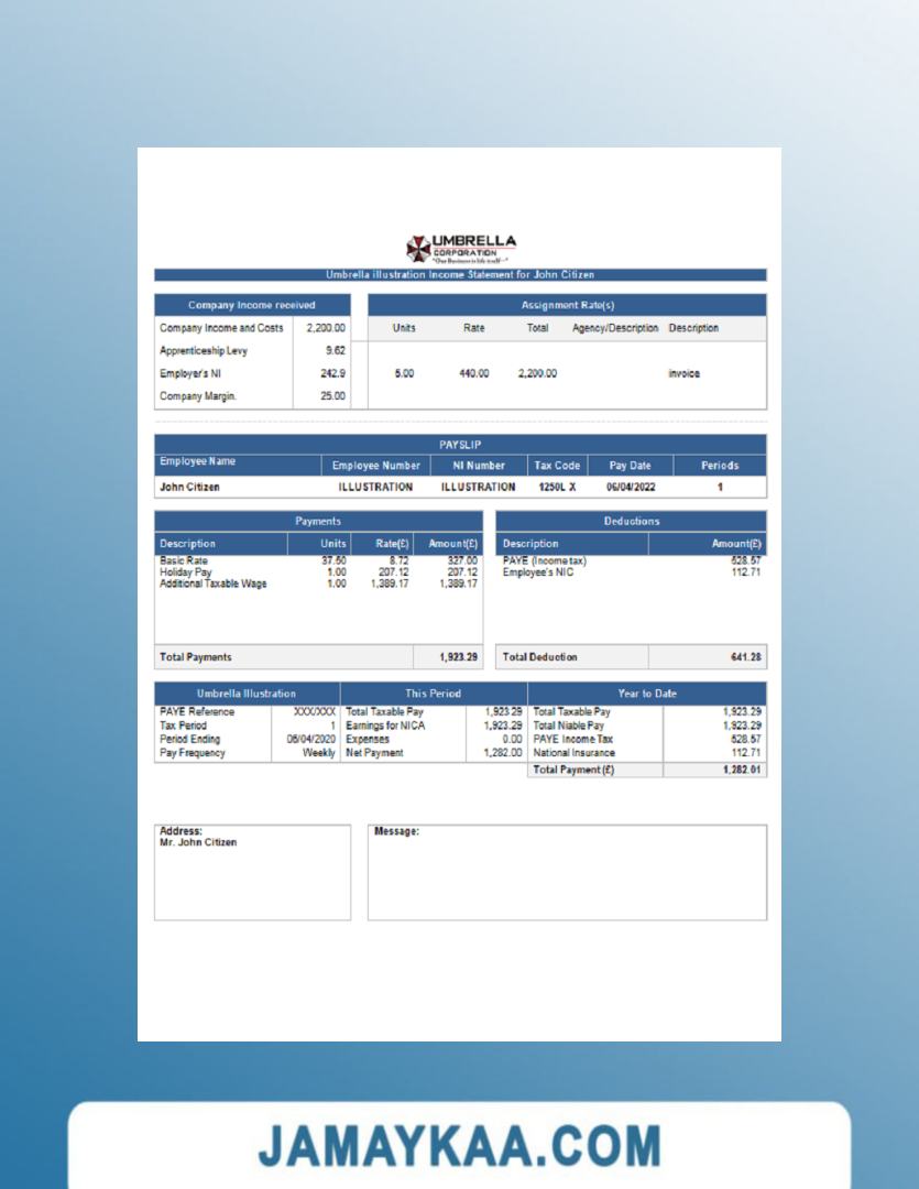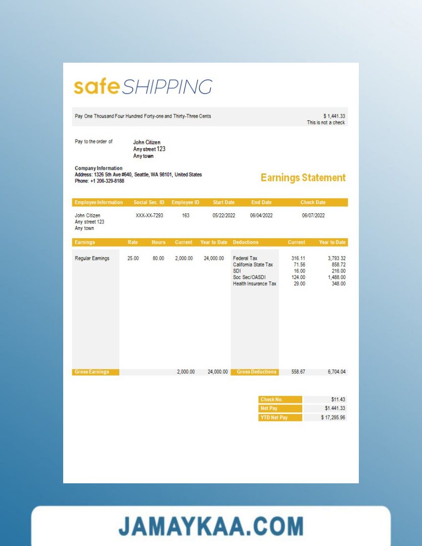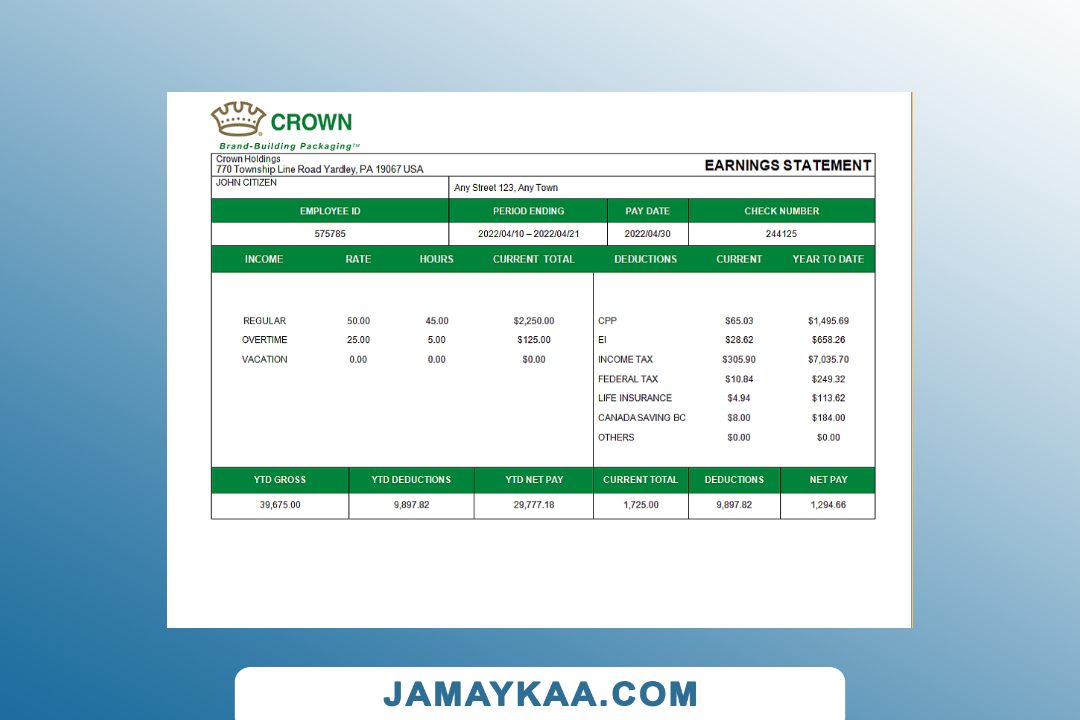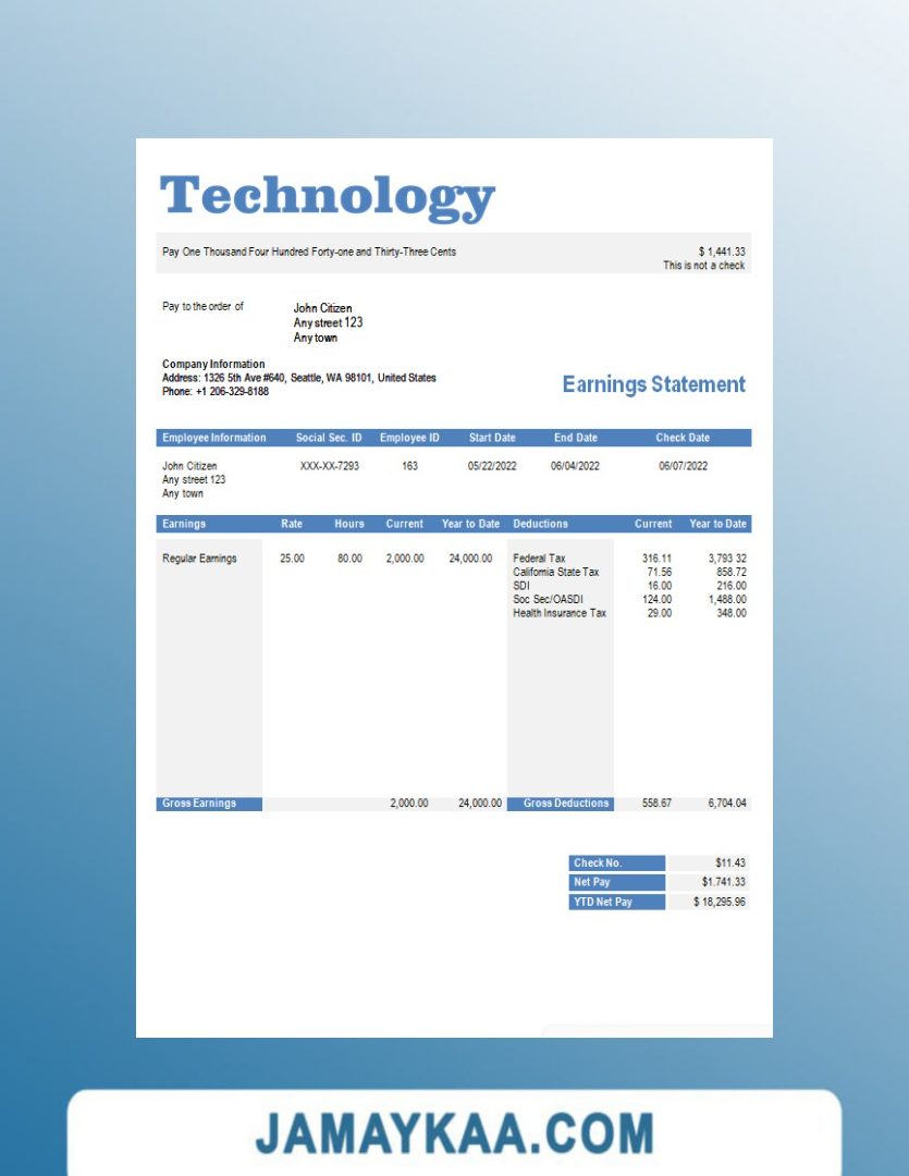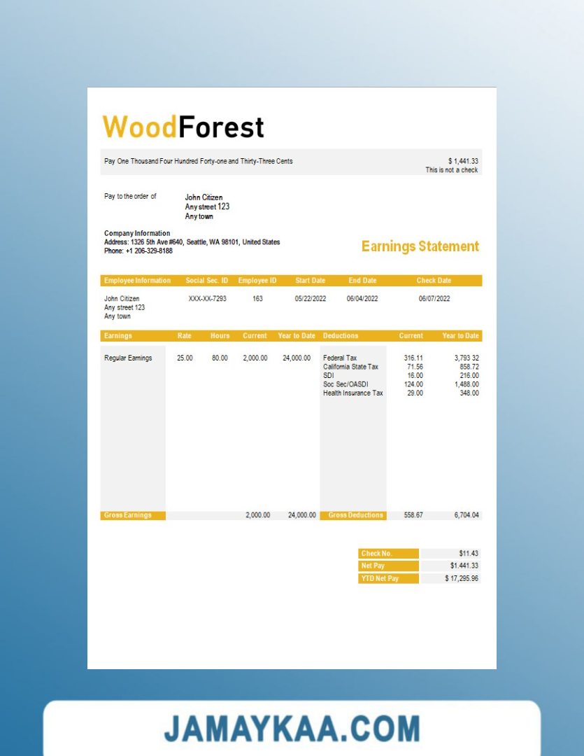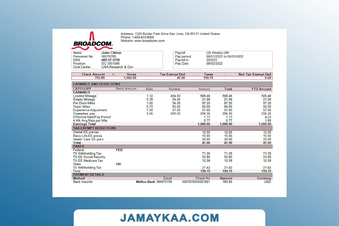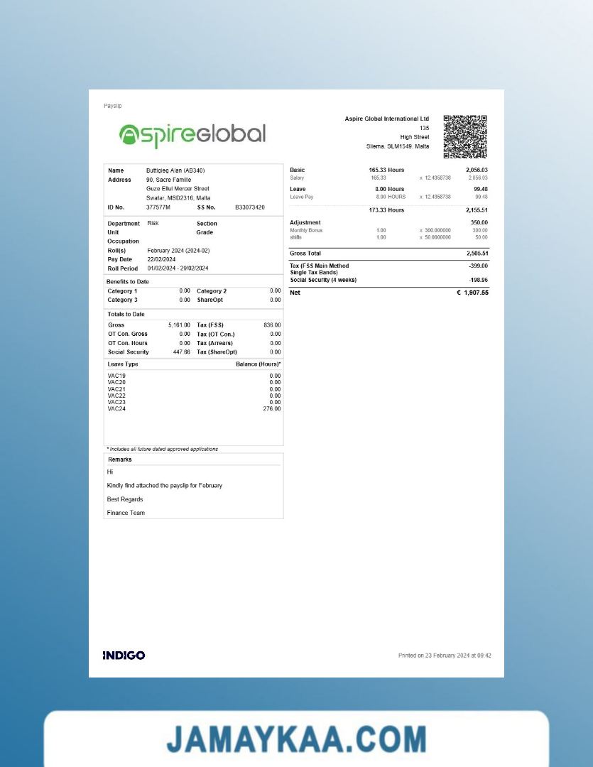 Controller and Accountant General's Department payslip template in Word