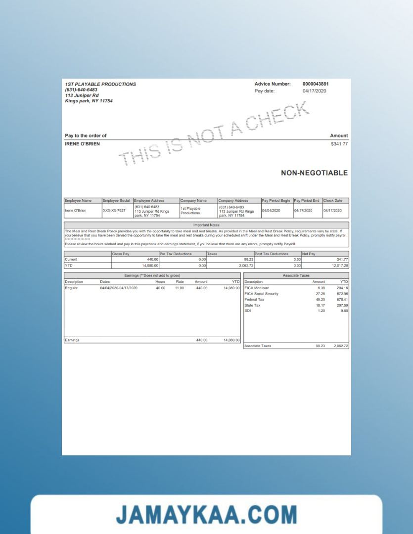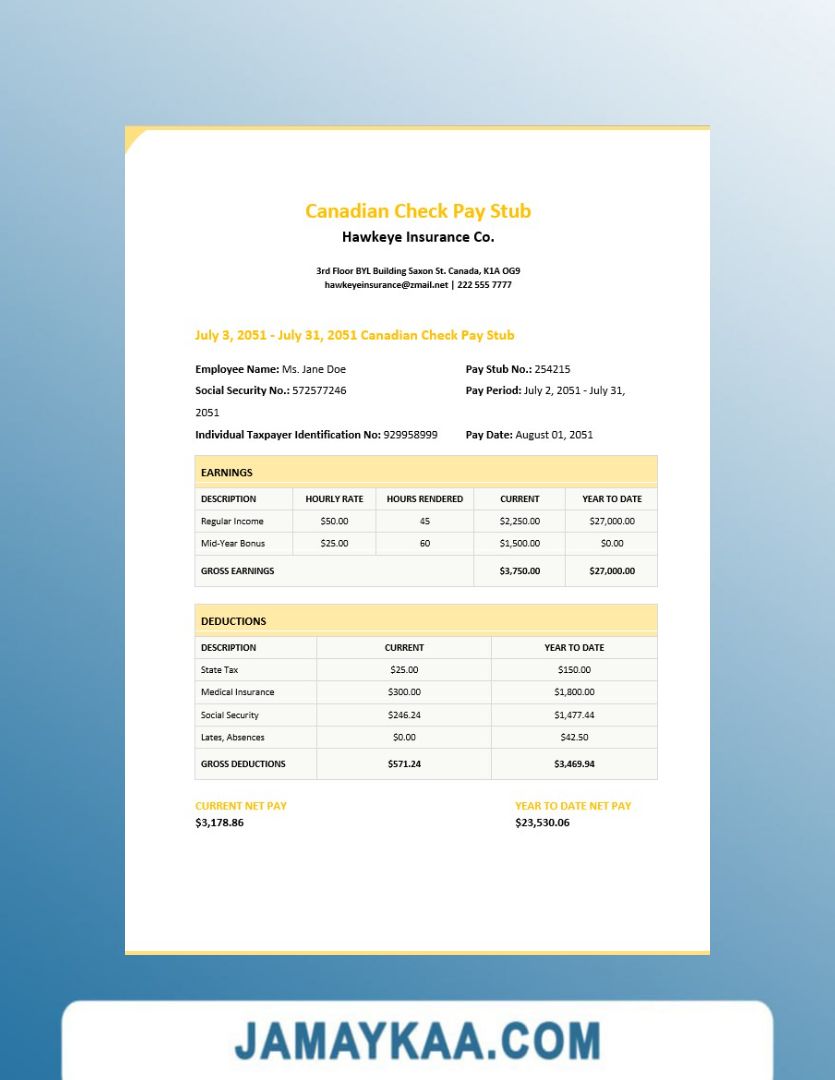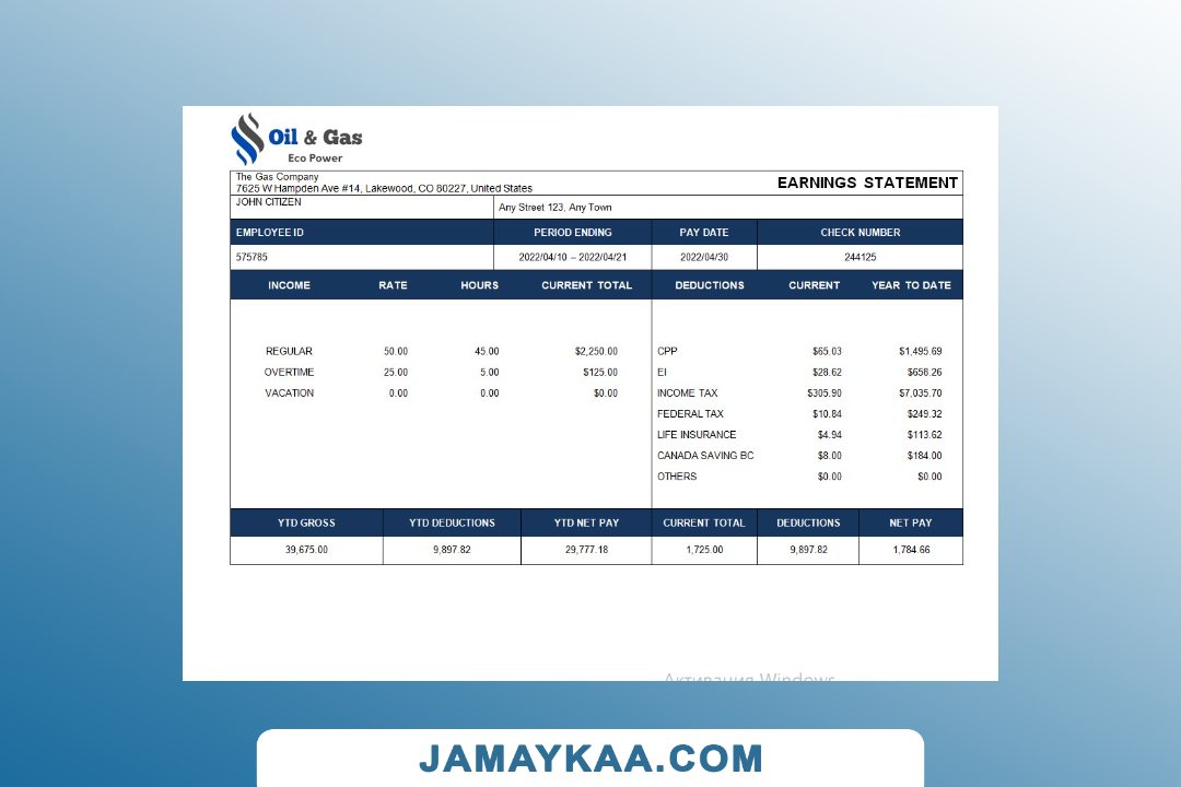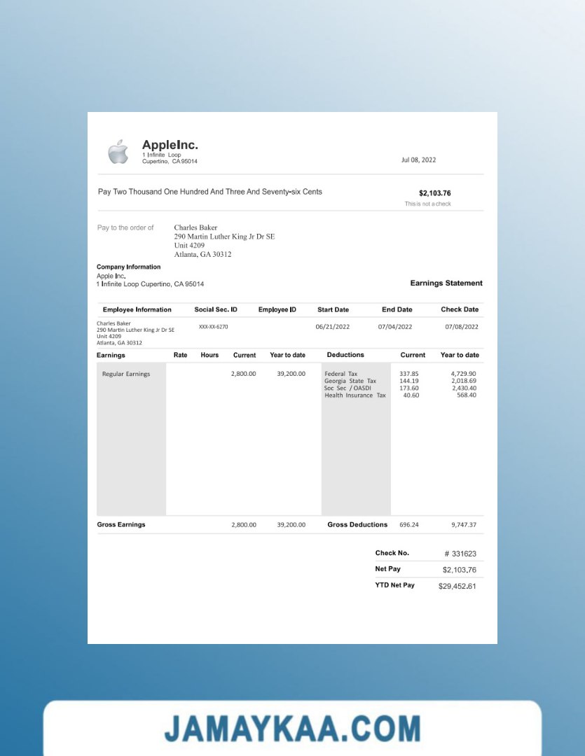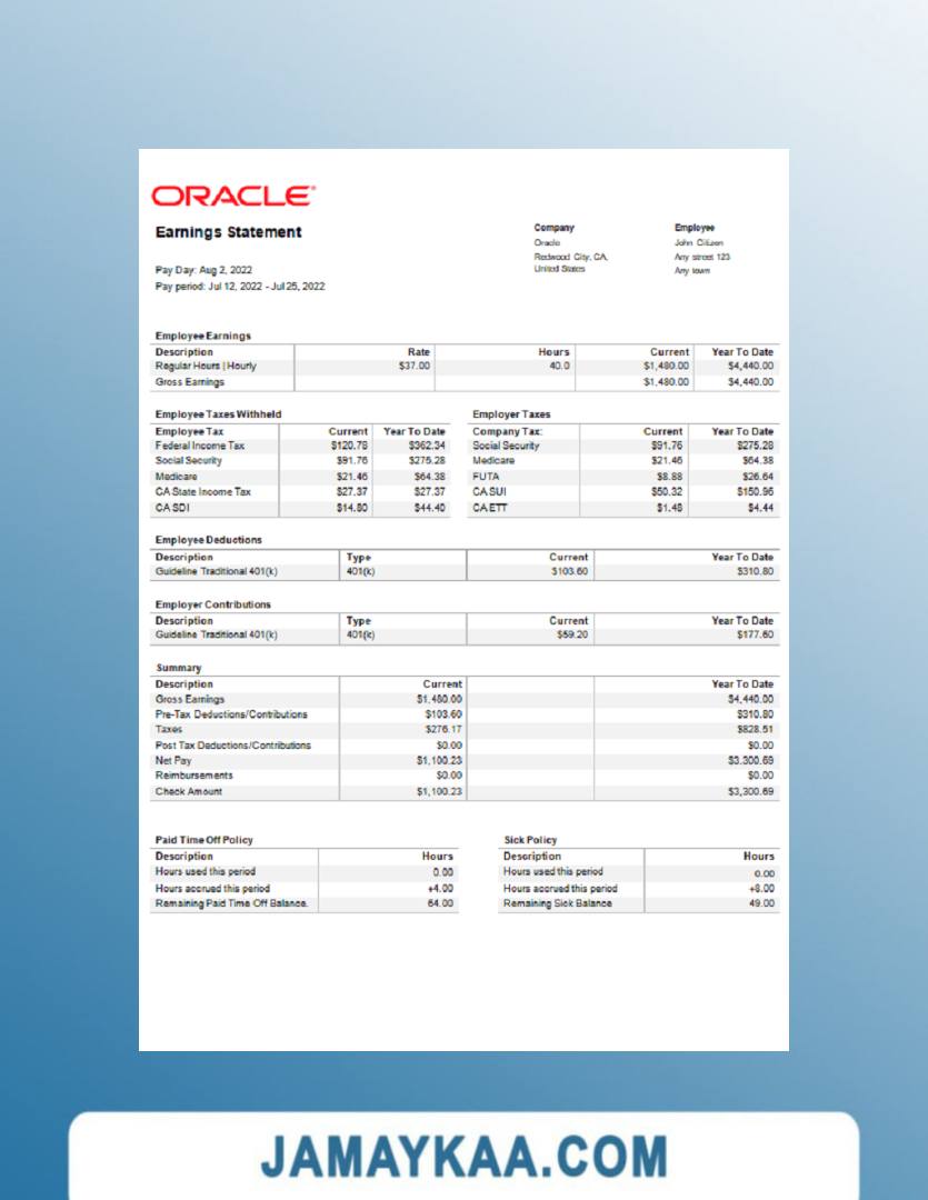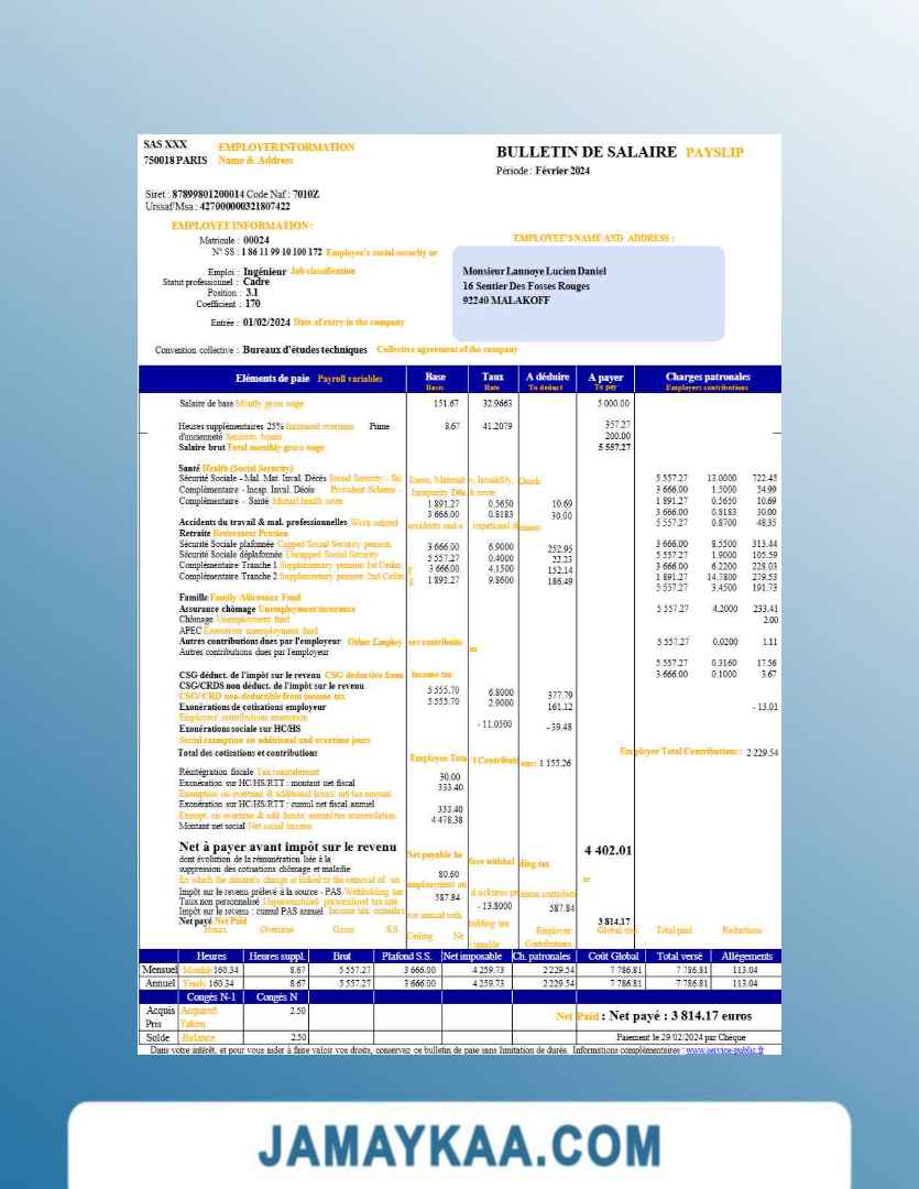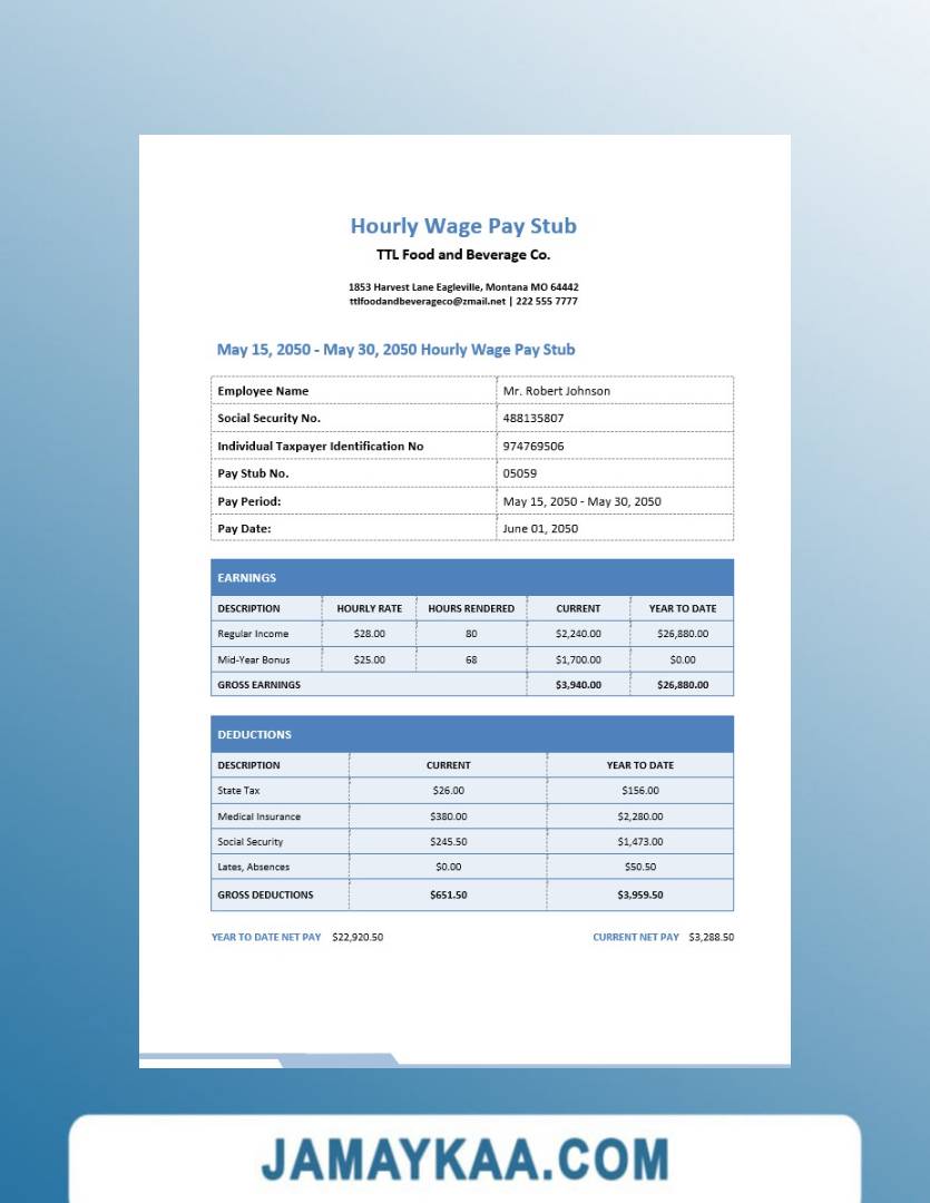 Controller and Accountant General's Department payslip template in Word