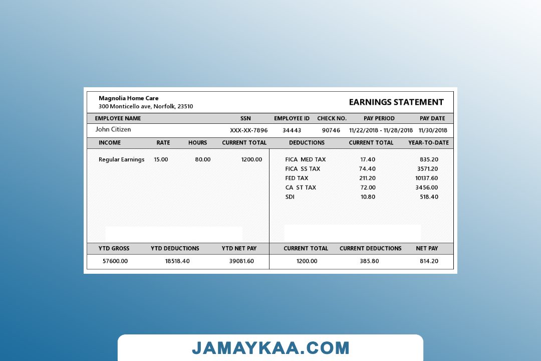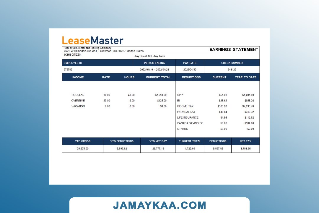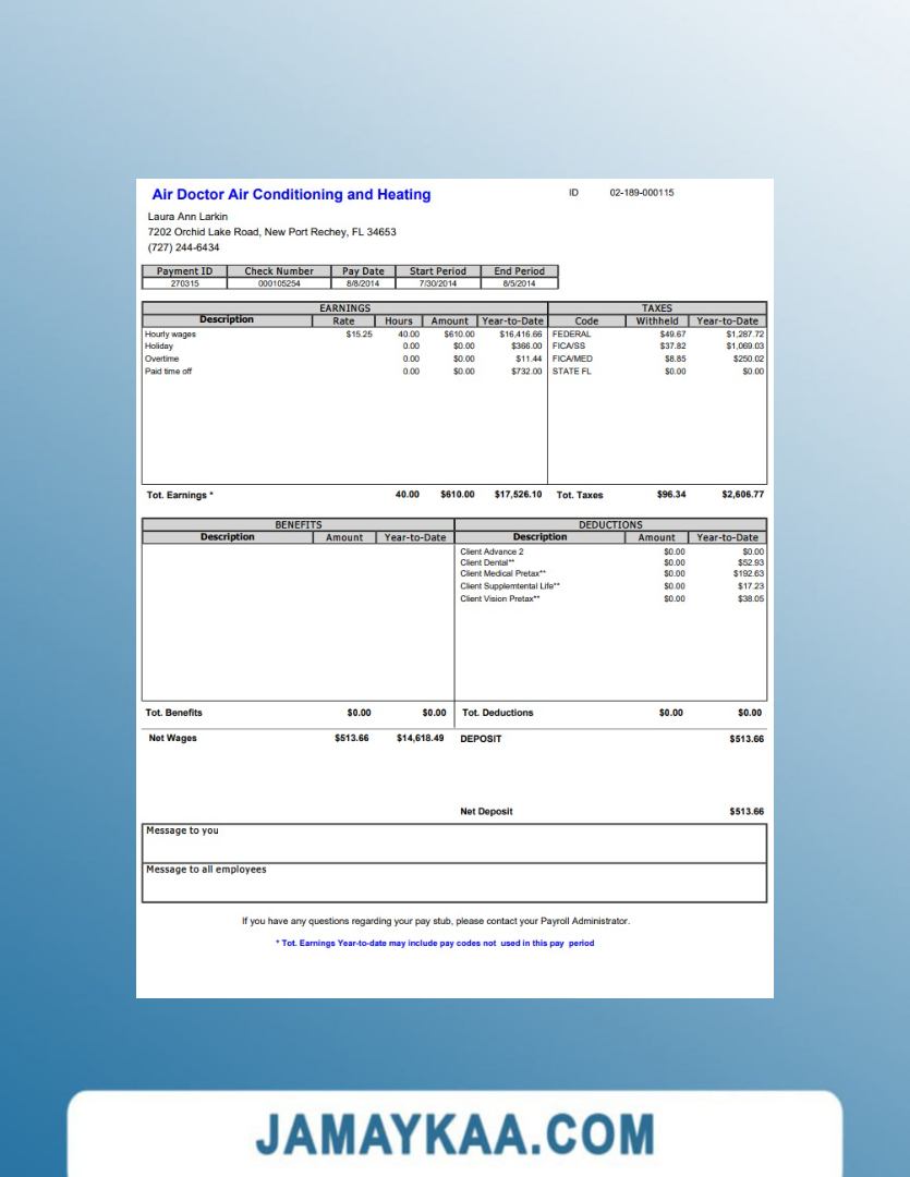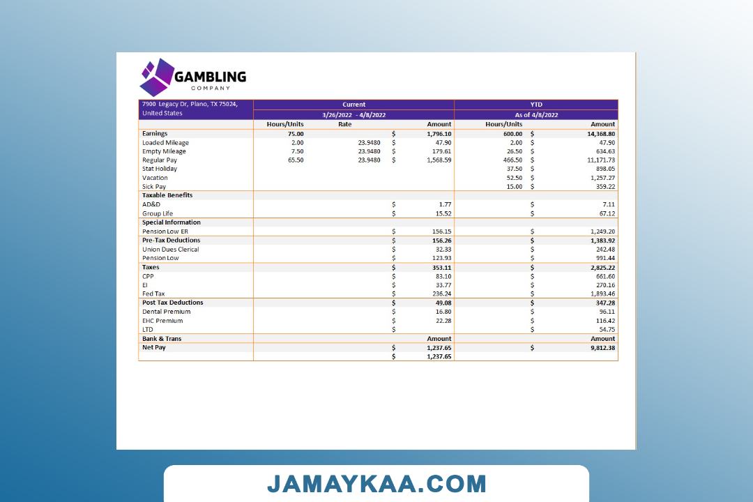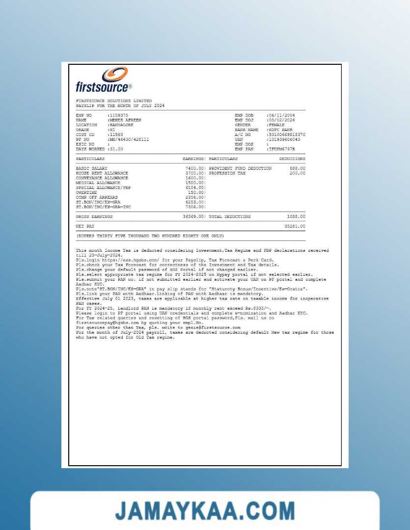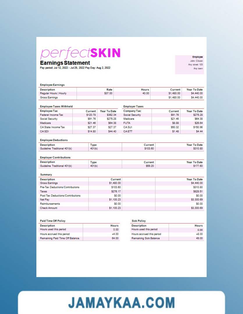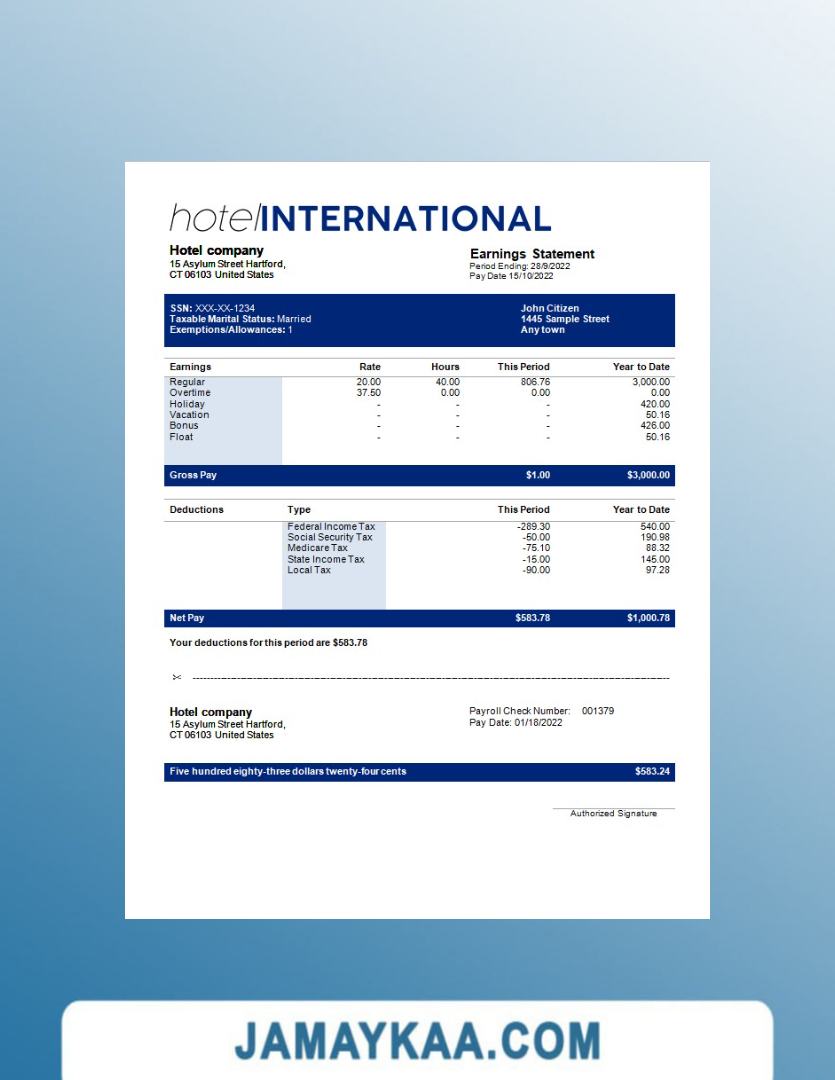 Controller and Accountant General's Department payslip template in Word