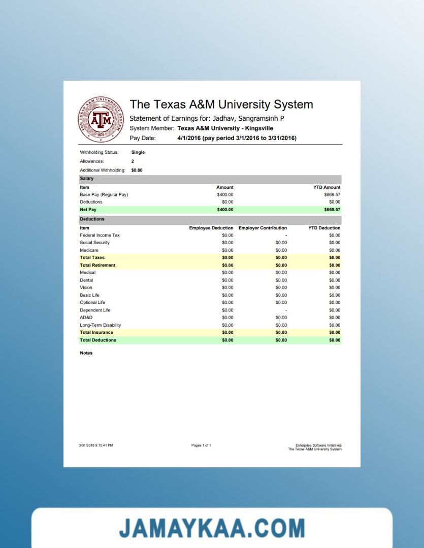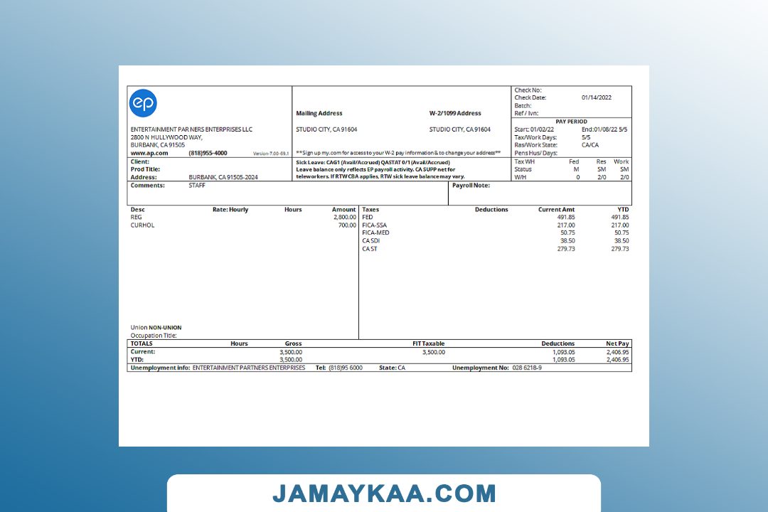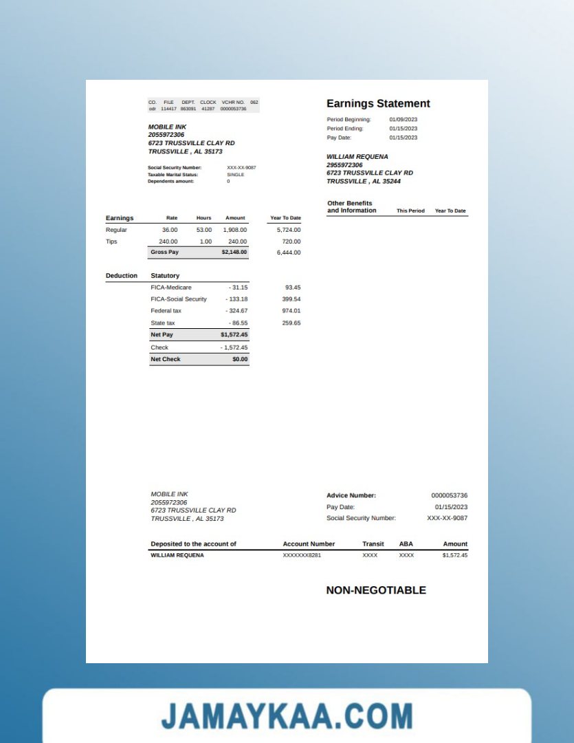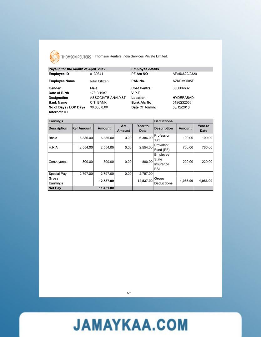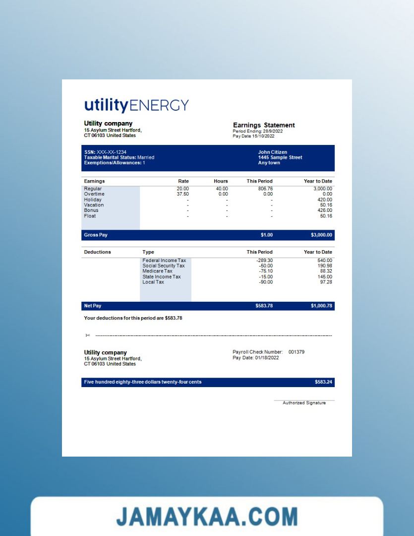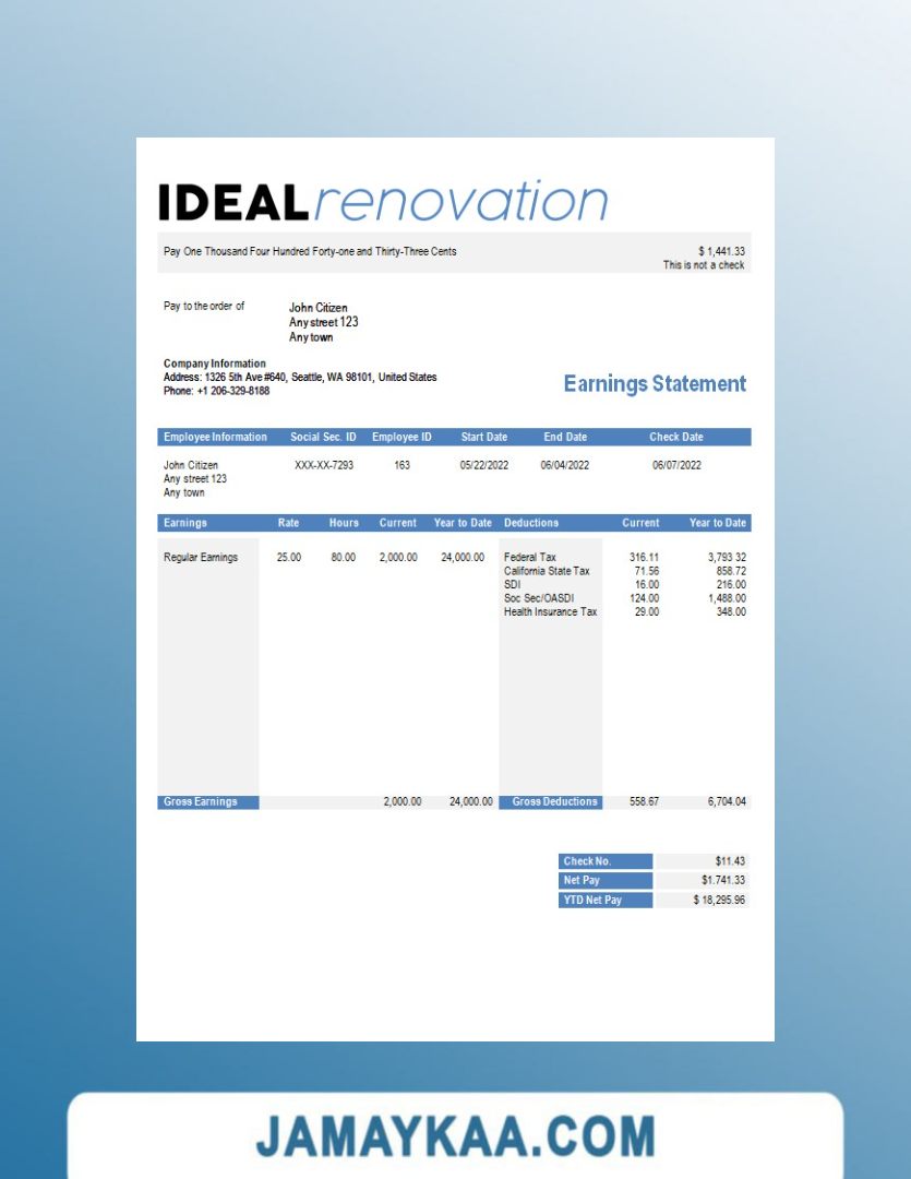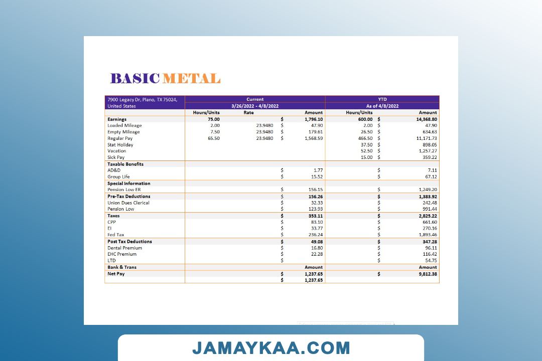 Controller and Accountant General's Department payslip template in Word