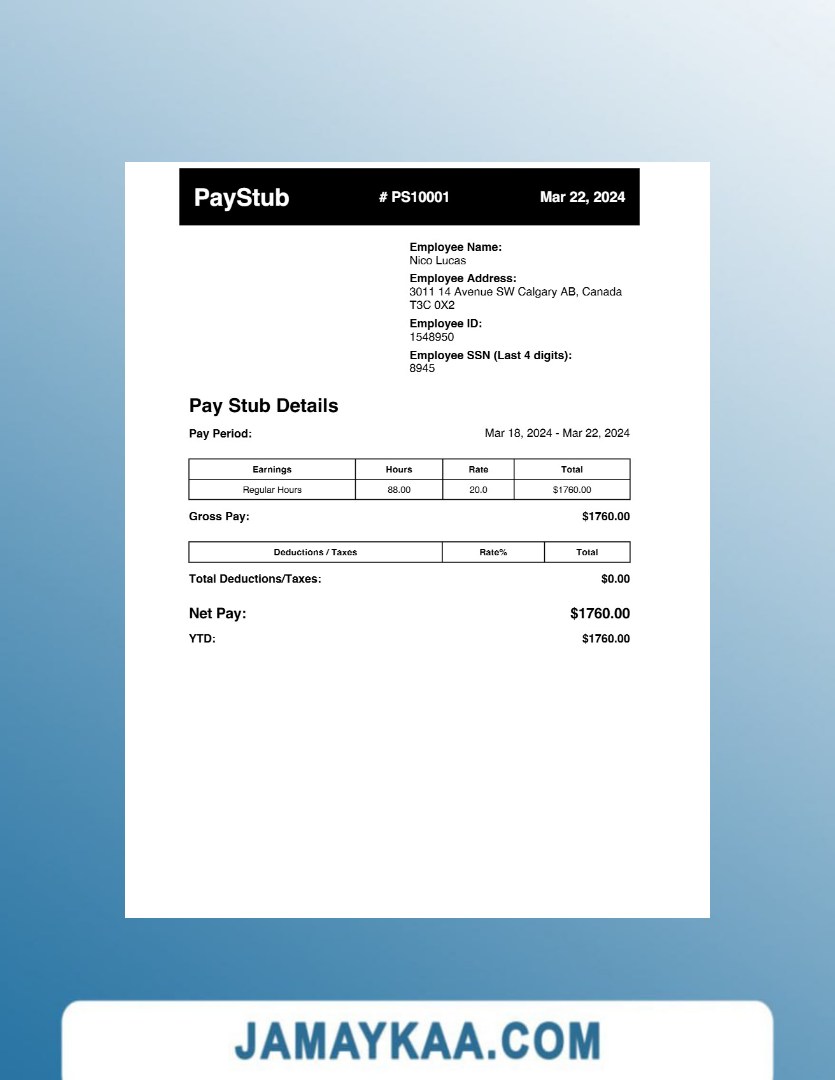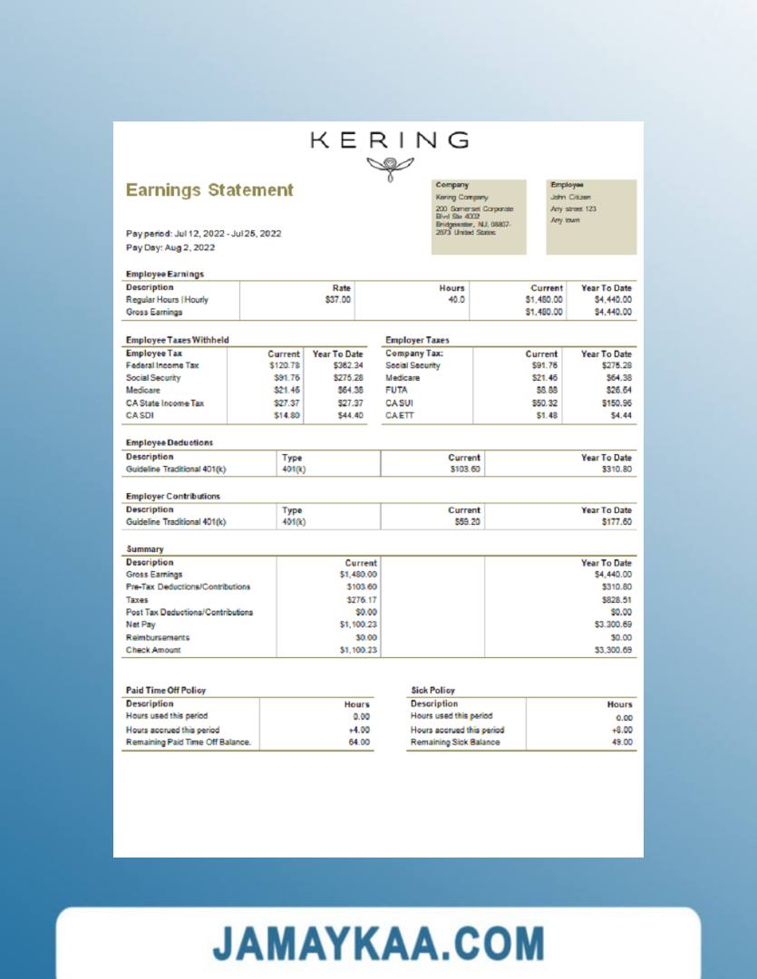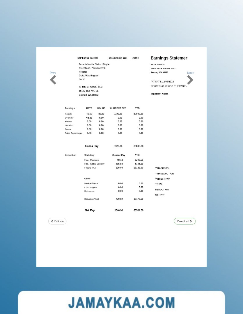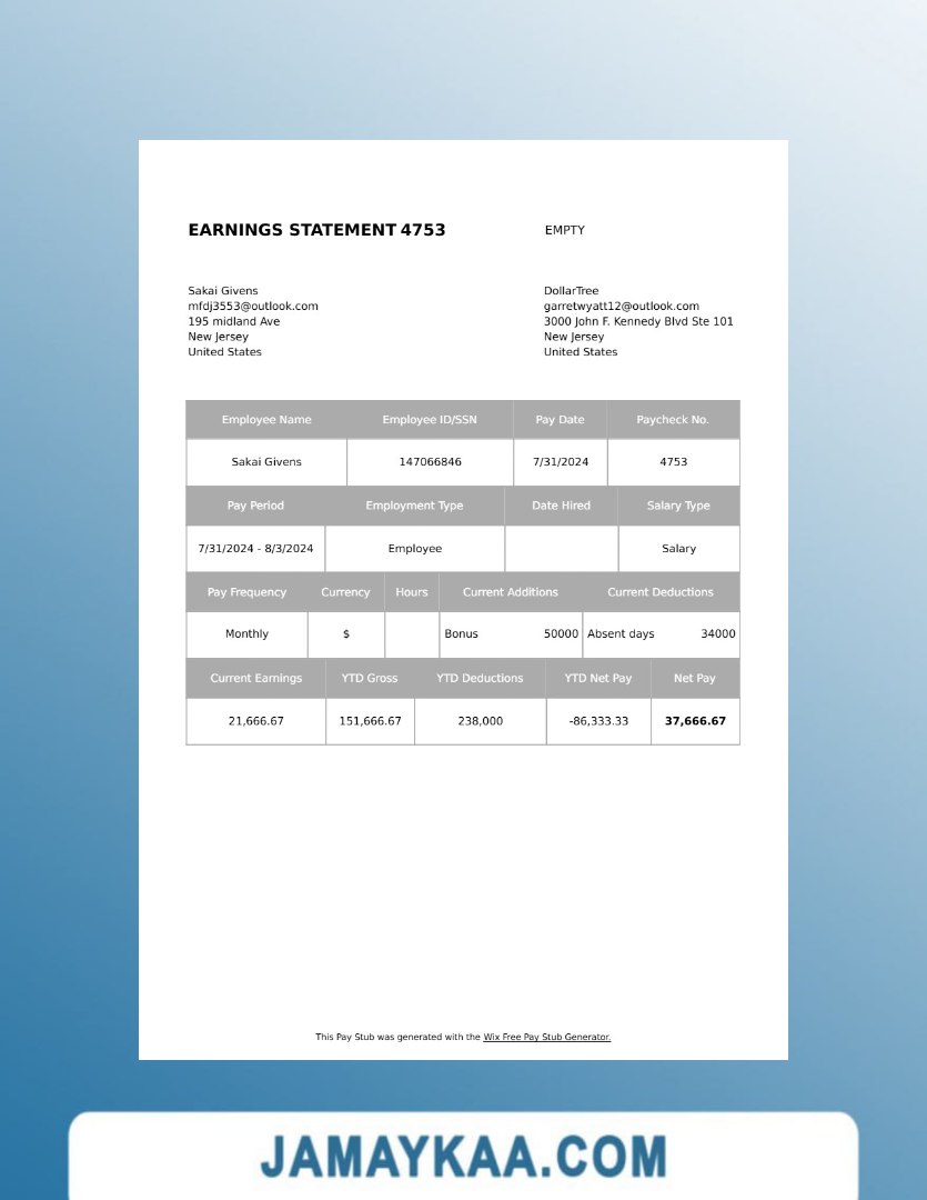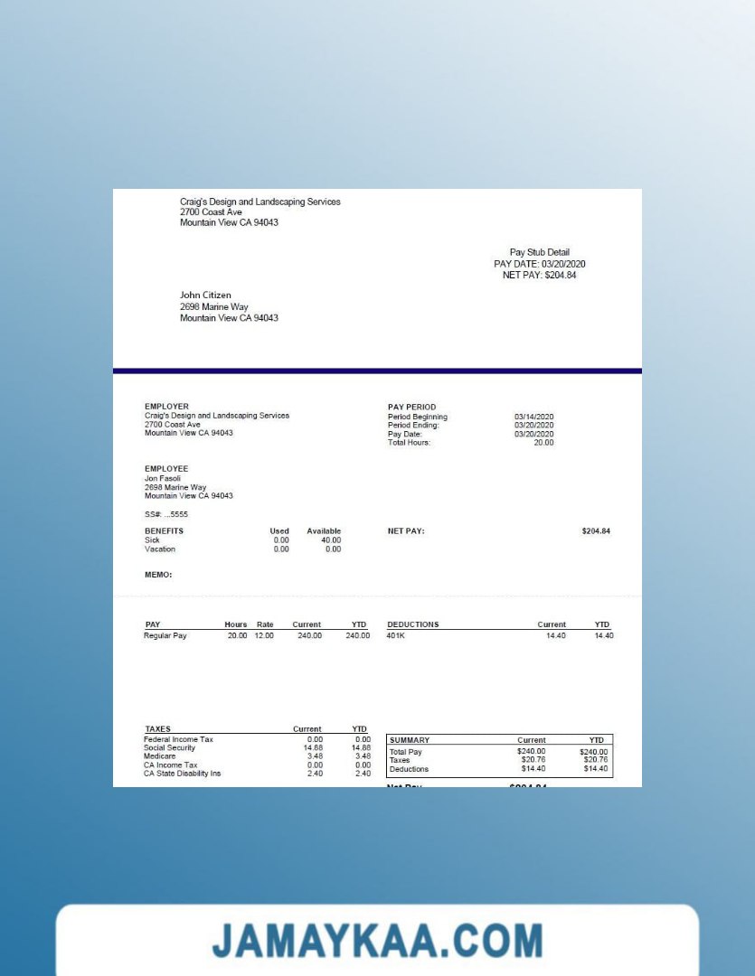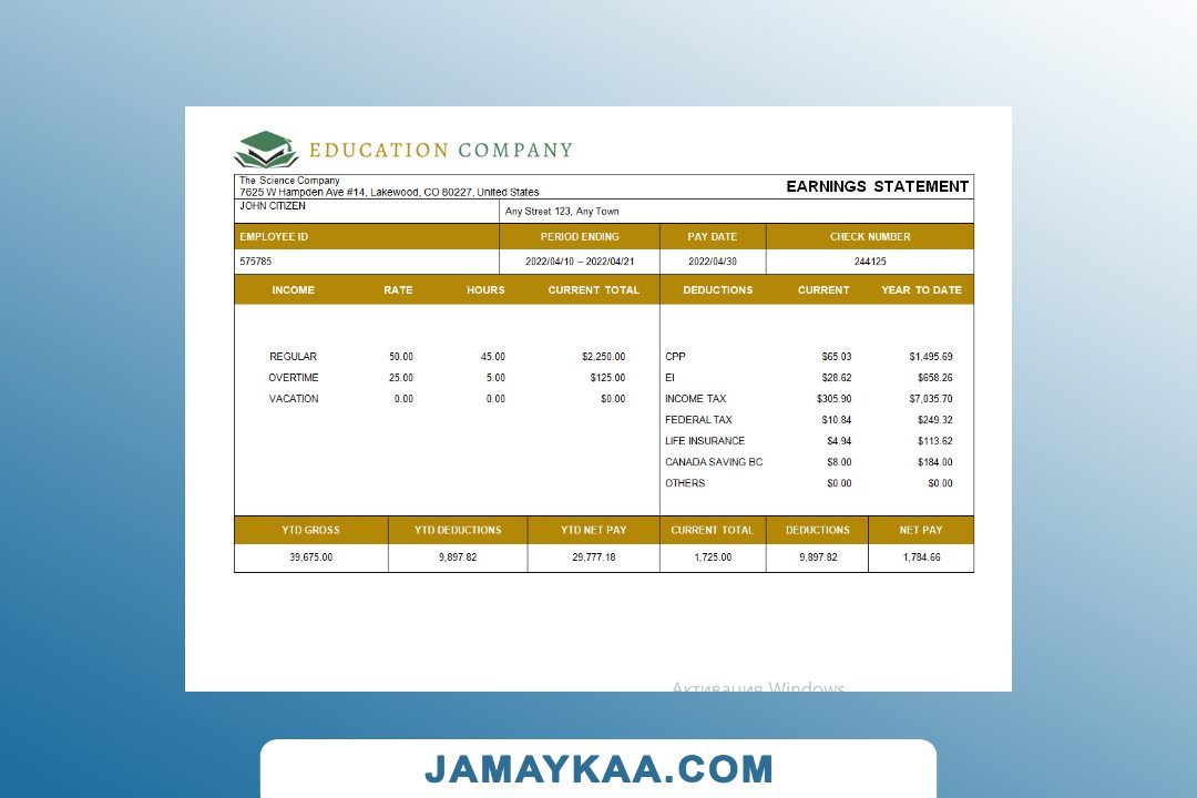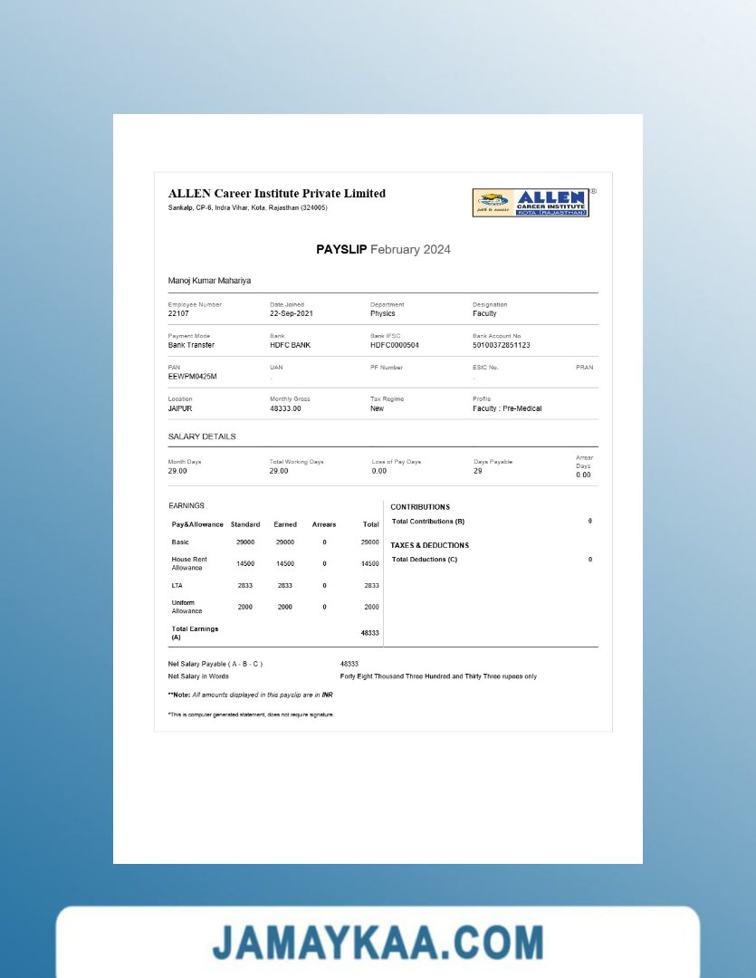 Controller and Accountant General's Department payslip template in Word